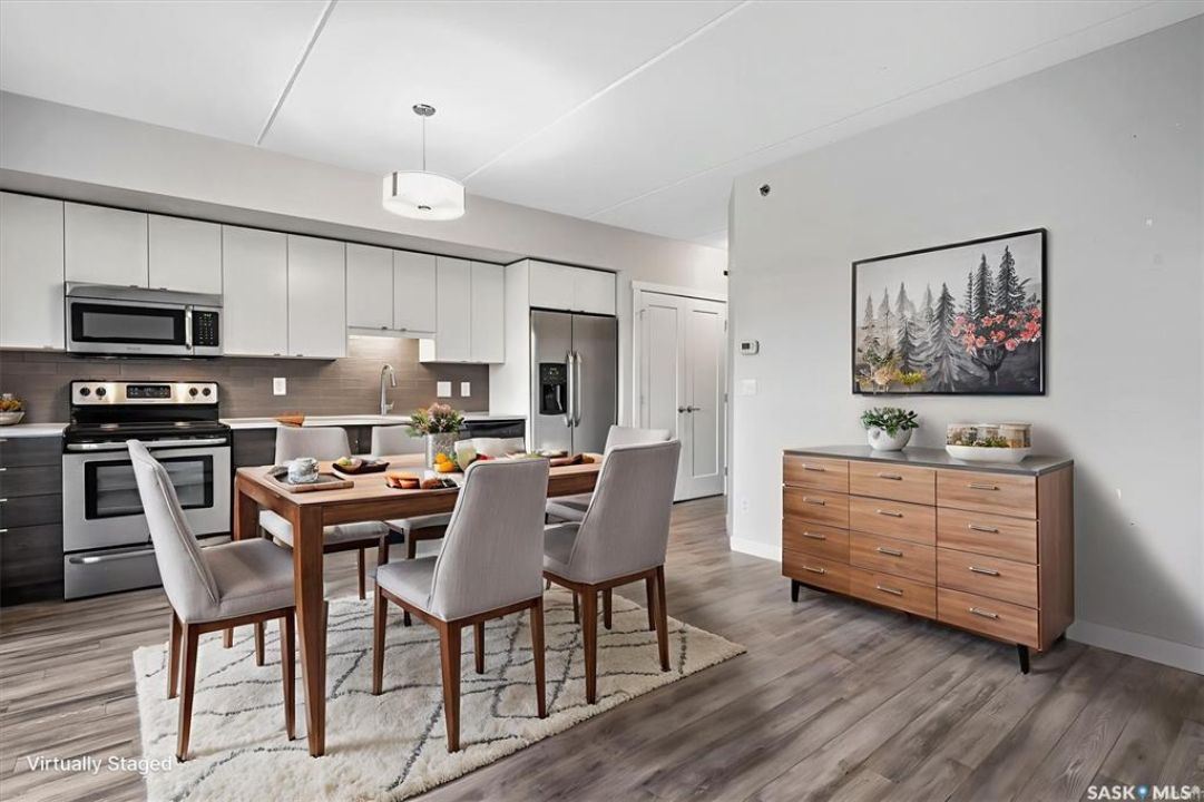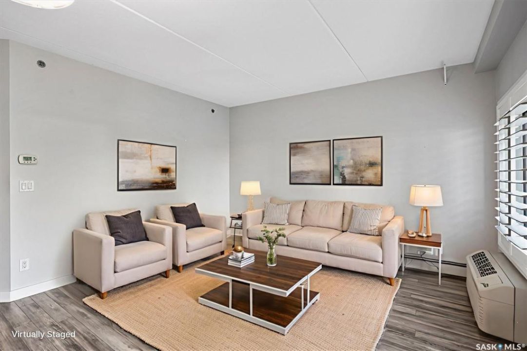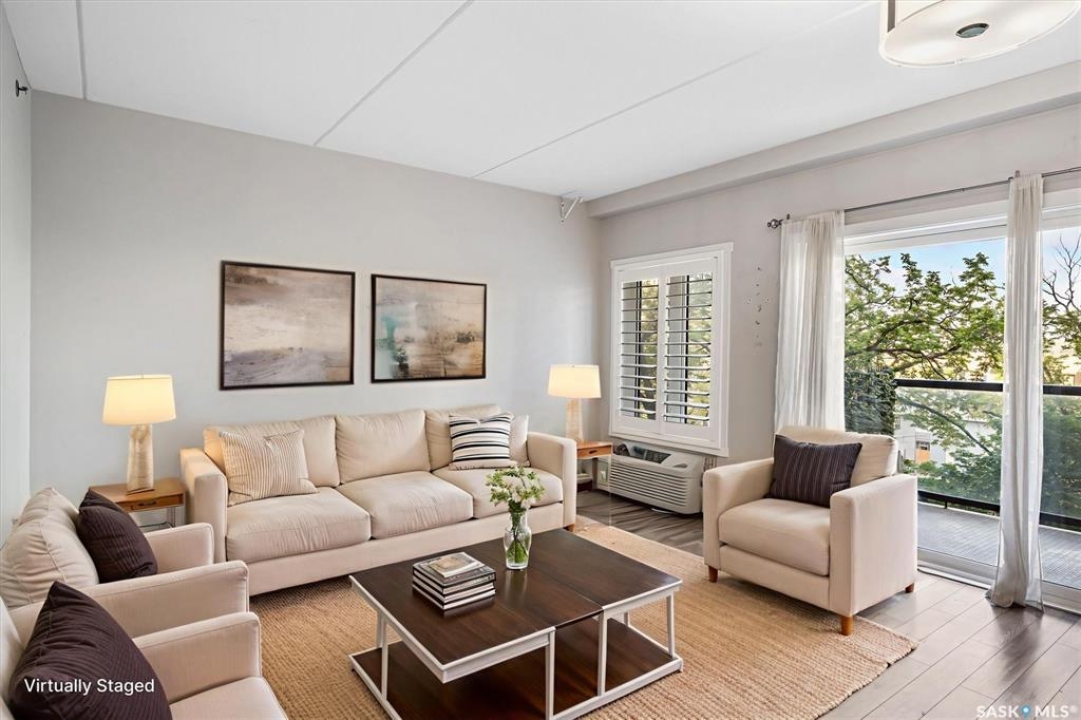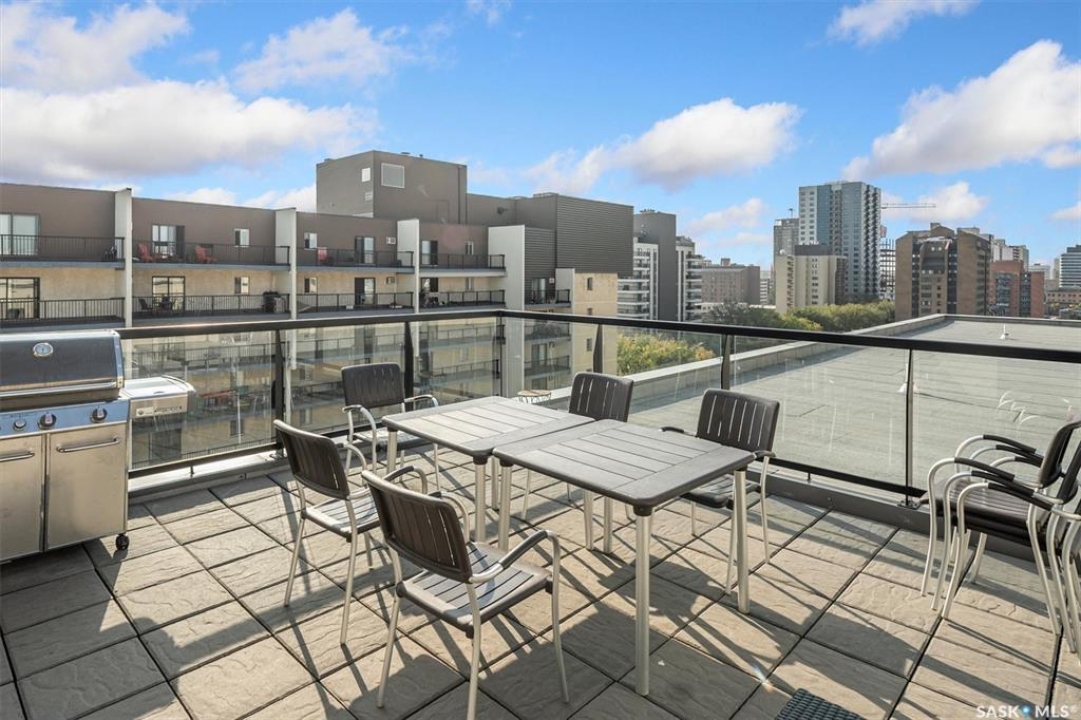 Welcome to The Shangri-La on 4th Ave. This stylish 1 bedroom, 1 bathroom condo is perfectly situated in the heart of Saskatoon. The bright impeccably maintained unit features a functional open concept layout. Enjoy the convenience of a built-in computer workspace, modern kitchen, quartz countertops and tile back splash - ideal for both everyday living and entertaining. You are close to City Hospital, University of Saskatchewan, Royal University Hospital, downtown shops, restaurants and city transit. What a great location offering the best of urban living with easy access to nature. Set in a soundly constructed concrete building, residents can enjoy premium amenities including a rooftop patio with BBQ area, an amenities room with fitness equipment, and the added convenience of one underground parking stall. Don't miss this incredible opportunity to own in one of Saskatoon's most sought after locations. Book your showing today with your favorite Realtor!
