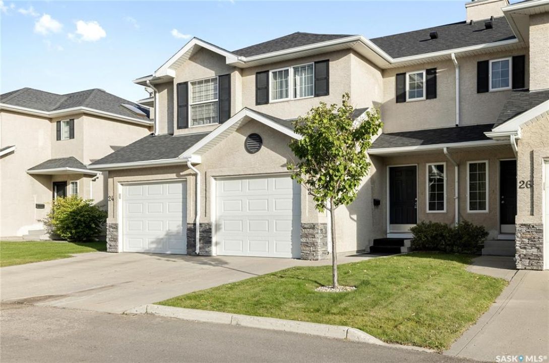 Welcome to 25-2400 Tell Place, a freshly renovated townhouse condo that truly has it all. Backing onto the lake in one of Regina's most desirable east end neighbourhoods, this 2-storey home offers the perfect blend of modern updates, comfort, and location. With 1,181 sq ft of living space, it features three bedrooms, three bathrooms, a fully developed basement, and the convenience of an attached garage. Inside, every detail has been refreshed with brand new flooring, fresh paint throughout, and stunning stone countertops in the kitchen. The bright and open main floor flows seamlessly from the living room to the dining space and modernized kitchen, creating a welcoming space that's perfect for both everyday living and entertaining. Upstairs, you'll find three spacious bedrooms, including a comfortable primary suite, along with a beautifully updated four-piece bathroom. The basement is fully finished, adding a cozy family room, an additional bathroom, and extra storage to meet all your needs. What makes this home truly special is the backyard setting—start your mornings with a pumpkin spice latte on the patio overlooking the peaceful lake, or wind down your evenings with a stroll along the walking paths just steps from your door. All of this comes with the convenience of being minutes away from schools, shopping, dining, and all the amenities that Regina's east end has to offer. Completely move-in ready, with a low-maintenance lifestyle and all the modern upgrades you could want, this home is an absolute must-see.