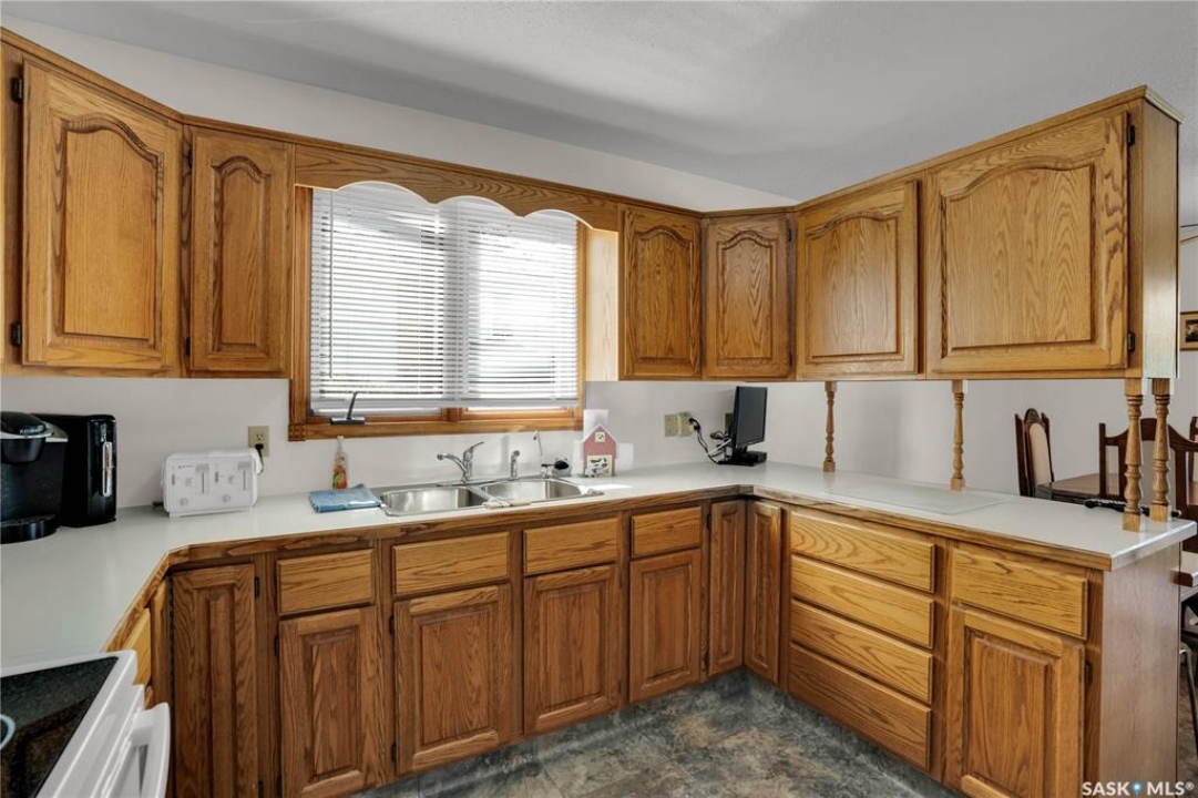 Are you looking for your next home? You won't want to miss this one - pride of ownership shines here! This immaculately maintained bi-level home was built in 1991 and boasts over 1,100 sq.ft. with a double attached garage. This 4 bed / 2 bath home provides excellent space for a family. Excellent curb appeal as you pull up. Heading inside you are greeted by a spacious foyer with access to your attached garage. Heading upstairs we are greeted by a good sized living room. Heading back we find a spacious formal dining room with access to your huge tiered deck - perfect for entertaining or your morning coffee. Off the dining room we find a large U-shaped kitchen boasting lots of cabinets and counter space - with an eat-up bar. This is sure to be the heart of this home. Down the hall we find 2 large bedrooms! Finishing off the main floor we find main floor laundry and a 4 piece bathroom. Heading downstairs we have a large family room - the perfect place for the kids to play. There is a second 4 piece bath, 2 more large bedrooms, a den/office and storage spaces! Outside we find a large 50' x 150' lot with lots of privacy from the hedges. Lots of grass and a large garden area as well. This home provides great value for any buyer - excellent family home! Located in the bustling town of Gravelbourg - just minutes from Thomson Lake! Reach out today to book your showing!