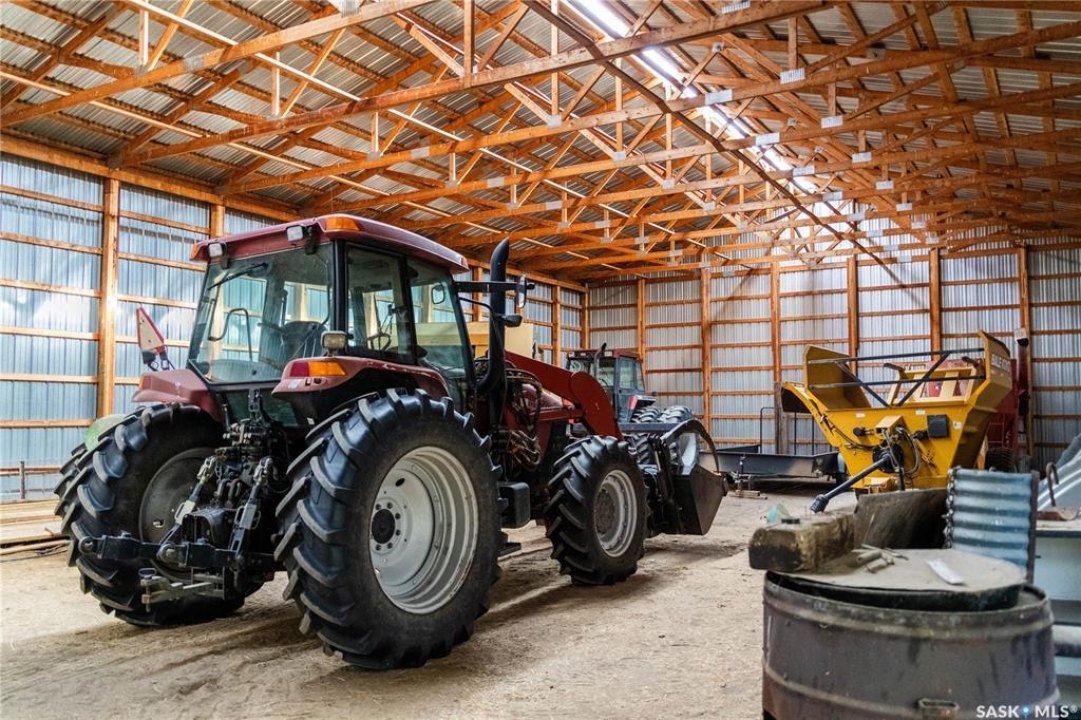 Opportunity knocks in the Holdfast, SK area — a nicely configured ranching yard site on one quarter section of mixed-use land in RM of Sarnia #221. Ideal for expanding your cattle operation or starting a hobby ranch, this property combines infrastructure, reliable water, and prairie charm. Located on the west side of Last Mountain Lake, it also offers great nearby recreation. SAMA field sheets report 125 cultivated acres, currently in tame hay but suitable for crop production. The land is partially fenced with 4-strand barbed wire in excellent condition; about 57 acres are not yet fenced and could add grazing capacity. Water is key, and this property is well supplied with an artesian well, another water well, and two spring-fed dugouts. The 1,800 sq ft home, built in 1915, has been very well cared for and offers 4 bedrooms, 2 bathrooms, a spacious living room, south-facing rec room, and a private primary bedroom tucked away from the main living area. The yard is sheltered by mature trees and well arranged for mixed farming. Outbuildings include: 40x56 quonset with power, 78x42 pole shed, 36x58 barn, butcher house with power & heat, 3-car detached garage, smoking shed, well house, and 3 sheds. The artesian well feeds a 400-gallon trough for livestock. Wooden corrals with gates/panels (some included) provide livestock handling. Carrying capacity for fenced land is ~15 head, with potential to increase by fencing ~57 additional acres. If you're looking for more land, two extra quarters are available separately just southwest (SK019387). With infrastructure, water, and proximity to recreation, this is an affordable opportunity to farm and ranch in a productive area.