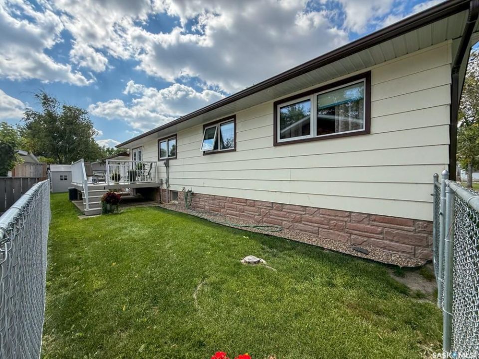 Welcome to 568 Poplar Crescent in the vibrant community of Shaunavon! This 1,328 sqft bungalow offers a welcoming layout and fantastic entertaining spaces. Step onto the covered front porch — the perfect spot for a peaceful morning coffee. Straight through the front door, you'll find 3 of the 4 main-floor bedrooms, all well-sized and conveniently located next to the updated 4-piece bathroom. To the left of the entry is the sunny living room with large windows that bring in an abundance of natural light, while to the right is the dining area and kitchen, where you'll appreciate the functional layout and easy flow of space. Just off the kitchen is the 4th bedroom or home office — featuring its own 2-piece ensuite and garden doors that lead to a backyard deck ideal for summer BBQs or evening drinks. Downstairs, the fully developed basement is ready for entertaining, offering a spacious rec room with a show-stopping wet bar at one end and a cozy wood-burning fireplace at the other. One additional bedroom, a 3-piece bathroom, a den/storage room, laundry/utility room round out the lower level. The backyard is fully fenced and thoughtfully designed with a deck, 8x8 shed, garden area, and underground sprinklers in the front and side yard. The home also includes a single attached garage, a well-maintained furnace with regular servicing, a 100-amp panel, and a water heater from 2019. Located in a friendly, welcoming town with schools, parks, shops, and recreation close by, Shaunavon offers small-town charm with all the essentials. Whether you're starting out, growing your family, or looking for a move-in ready place with room to breathe — this is a home that delivers.