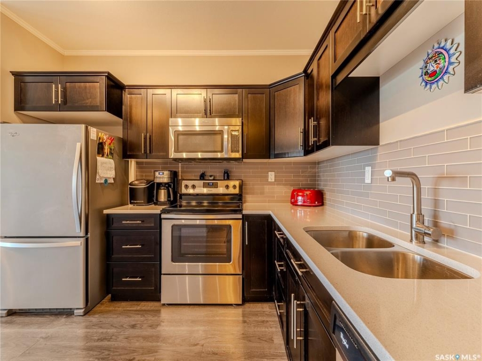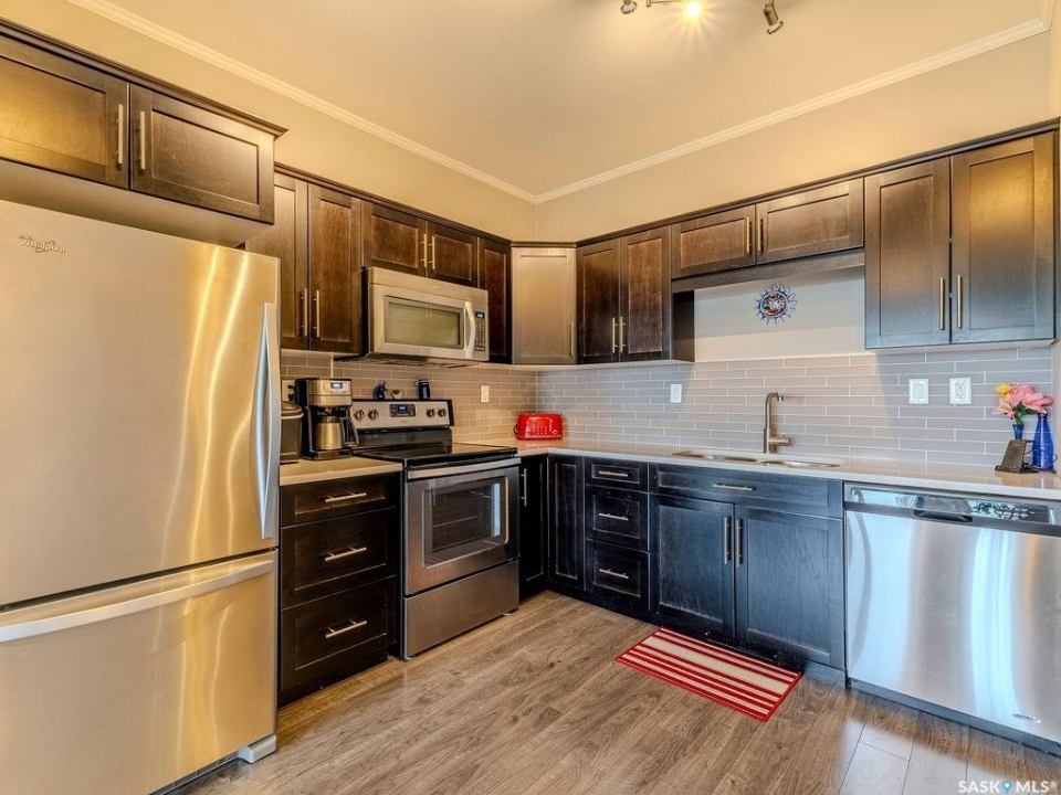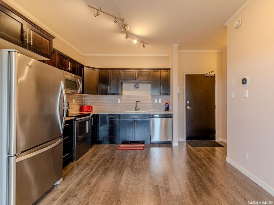 Top floor corner unit with 2 bedrooms, 2 bathrooms, 2 parking stalls and pet friendly living at #302 720 Baltzan Boulevard in Evergreen. This bright and modern condo offers over 850 sq ft with a functional open layout, quartz countertops, fresh paint, and an upgraded Ecobee smart thermostat. The primary suite includes a walk in closet and ensuite, while the second bedroom is served by a nearby full bathroom. Step out onto your private balcony and enjoy a great view over the green space — perfect for your morning coffee or winding down after the day. With one heated underground stall and one surface stall, plus a well managed pet friendly building close to schools, shopping, and amenities, this home blends comfort, convenience, and lifestyle in one great package.