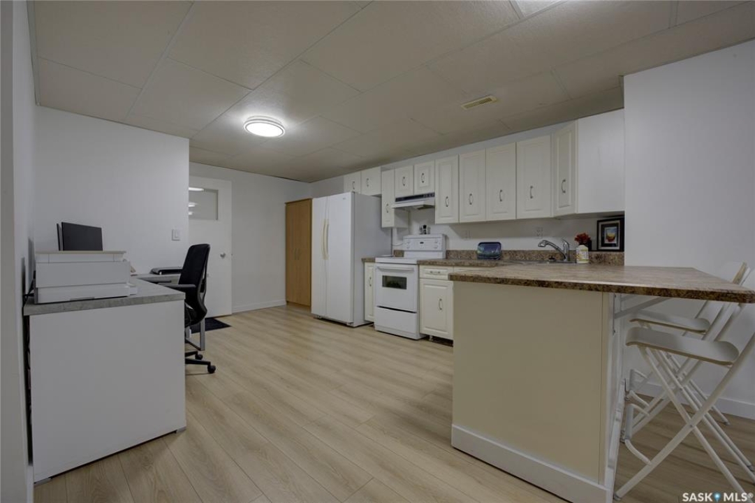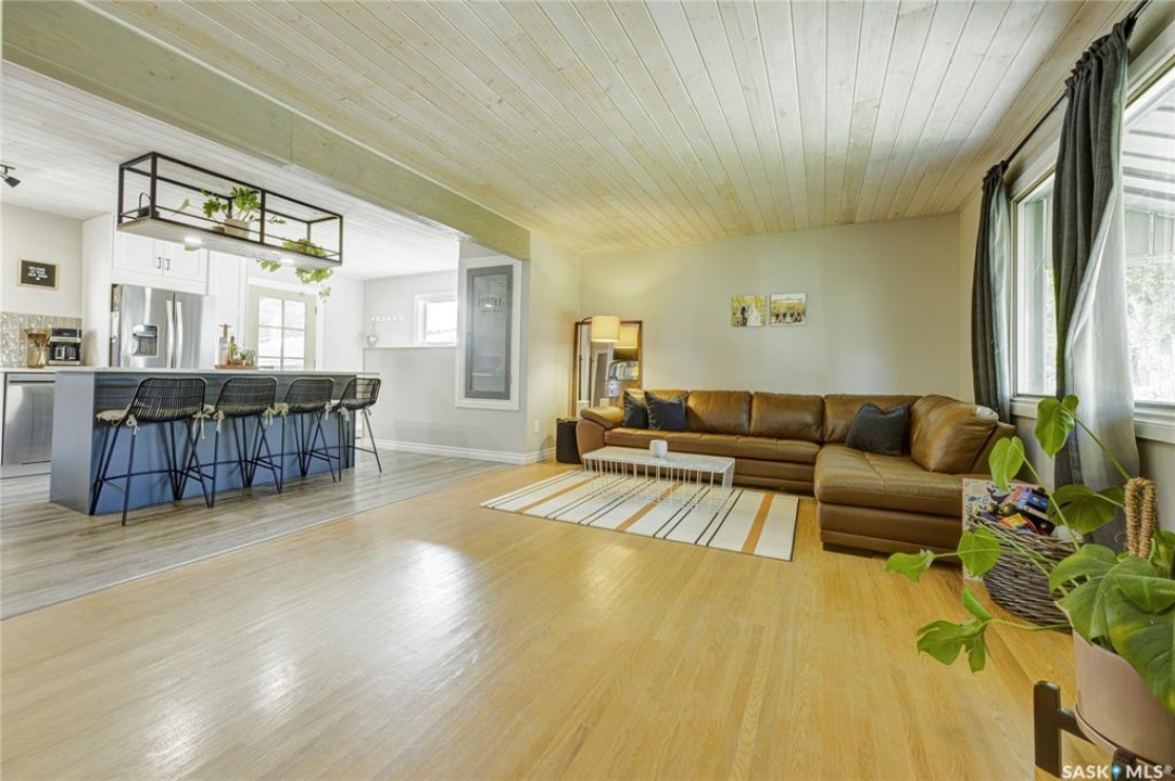 Beautifully Updated Bungalow in Richmond Heights! Nestled in the desirable, tree-lined community of Richmond Heights, this fully updated bungalow offers the perfect blend of modern comfort and convenience. Ideally located close to the river, downtown, the University of Saskatchewan, SaskPolytech, and with quick access to Circle Drive, this home is a rare find. Featuring 4 bedrooms and 2 bathrooms, the property includes a non-conforming 1-bedroom basement suite with its own laundry—ideal as a mortgage helper or for extended family. One of the upstairs bedrooms has been converted into a convenient laundry room, adding flexibility to the layout. The main floor boasts a stunning kitchen with quartz countertops, stainless steel appliances, and a stylish open feel accented by pine tongue-and-groove ceilings that flow through the living room, kitchen, and primary bedroom. The living room and primary Bedroom are finished with original hardwood floors, creating a warm and inviting space. Outside, you'll find plenty of parking with a driveway that accommodates 3 vehicles, plus a double detached garage featuring a floor drain, a work bench and built-in exhaust fan—perfect for hobbyists or those who appreciate a functional workspace. With every detail inside updated within the past five years, this home is move-in ready and located in one of Saskatoon's most sought-after areas.