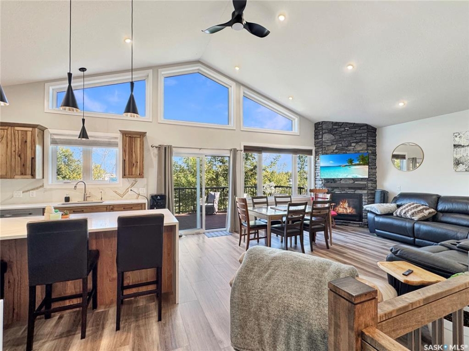 1358 Sq Ft 4-Season Bungalow – Iroquois Lake Just over an hour from Saskatoon and Prince Albert, this 1358 sq ft raised bungalow is a year-round retreat at beautiful Iroquois Lake. Known for its crystal-clear water, great fishing, and water sports, this lake is the perfect four-season destination—whether you're paddleboarding in the summer or ice fishing in the winter. The home features 5 bedrooms and 3 bathrooms, with an open-concept main floor boasting vaulted ceilings, large windows that fill the space with natural light, a stone natural gas fireplace, and a well-appointed kitchen with a large pantry. The primary suite includes a walk-in closet, fireplace, and ensuite, while two additional bedrooms complete the main level. The fully developed ICF basement offers 9' ceilings, 2 more bedrooms, a games room, and plenty of space for extra company. Utility features include a well, 300-gallon holding tank, 1500-gallon septic, reverse osmosis system, Starlink internet, and video monitoring. The attached garage provides 12' ceilings for storage. Outdoor living shines with two large decks—perfect for morning coffee or evening wine. An adjoining lot is also included, ideally suited for a future cabin, a large shop for all your lake toys, or as an investment to resell. Located just steps from the lake and public beach, this property is an excellent opportunity to enjoy lake life in comfort and style. This could be your happy place.