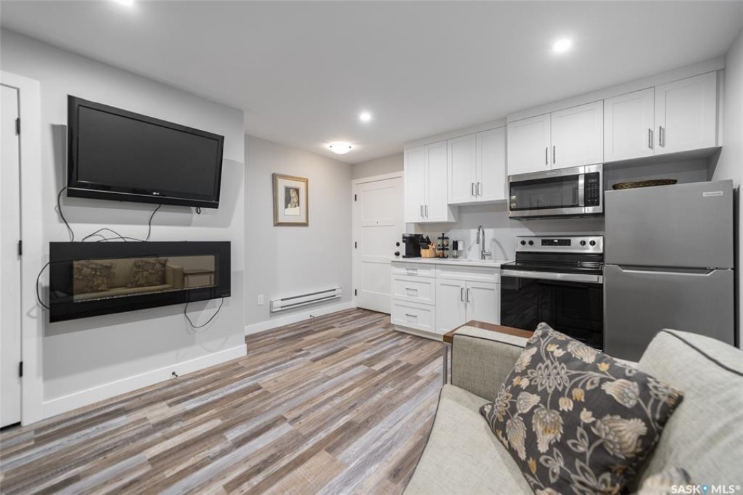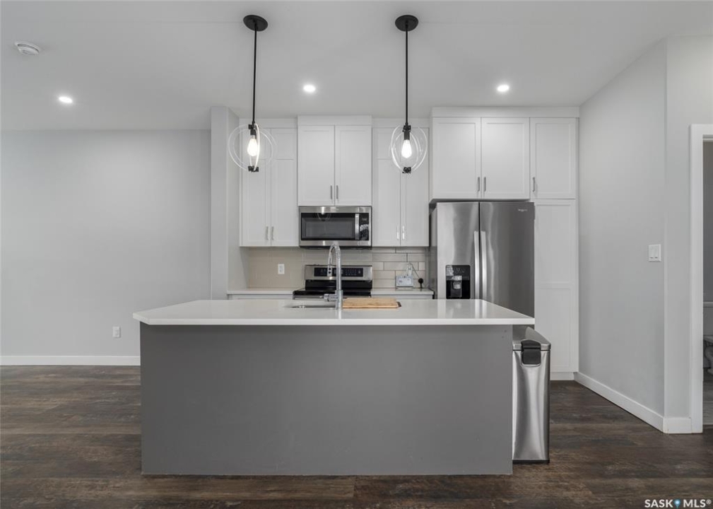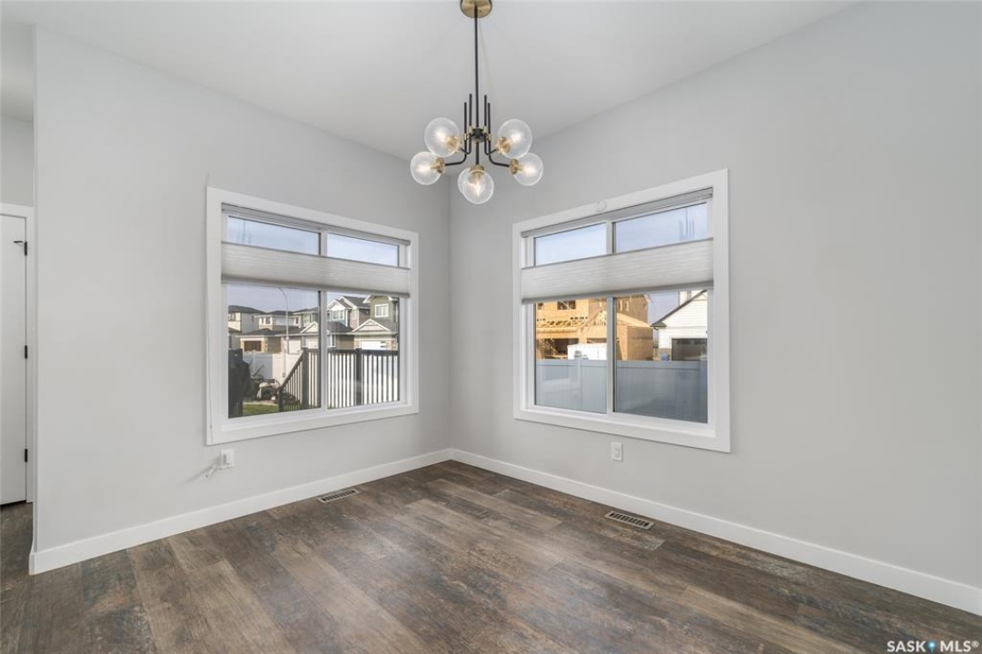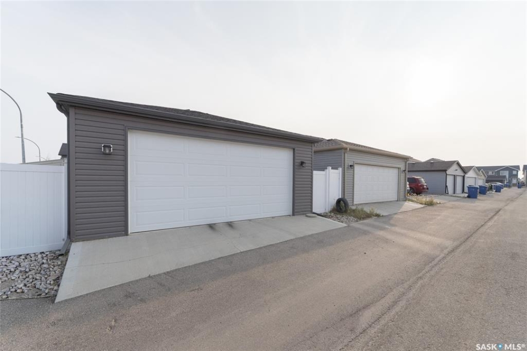 Welcome to 5140 E Simard Ave, located in The Towns in East Regina. This thoughtfully designed property offers the perfect blend of modern living and investment potential, featuring a regulation 1 bedroom suite with separate sidewalk and side entry, a great opportunity to live in style and convenience while generating additional rental income. As you step inside, you are greeted with 9ft ceilings, large windows with top-down bottom-up blinds that allow the natural light to flood in without sacrificing privacy as well as durable luxury vinyl plank flooring that flows through the entire home. The kitchen boasts white cabinetry, quartz countertops, tiles backsplash and stainless steel appliances with induction stove. A 2 piece bath with vanity and a generous size closet for additional storage finish off the main level. Upstairs, the vinyl plank flooring and natural light continue to flow into the primary bedroom with walk-in closet and ensuite that consist of a large double vanity and walk-in showing. 2 more bedroom, a 4 piece bath and laundry room with additional cabinetry and quartz countertops. All bedrooms upstairs come with black out blinds and ceiling fans with remotes. The quartz countertops, white cabinetry and luxury vinyl plank flooring continue to the lower level suite with galley style kitchen, in-suite laundry and air exchanger. The exterior and mechanical upgrades make life easy. Front and back underground sprinklers controlled by Rachio app, Eco bee thermostat. The detached heated and insulated garage, Wi-Fi enabled garage remotes, 100amp panel, 240v, and wired internet. The corner lot not only gives added yard space, but also allows for additional street parking along the side. This neighborhood is known for its abundance of playgrounds, walking paths and green space, close proximity to shopping, groceries, gas and restaurants as well as medical clinics and pharmacies, with everyday convenience just minutes away at Acre 21 and Victoria East amenities.