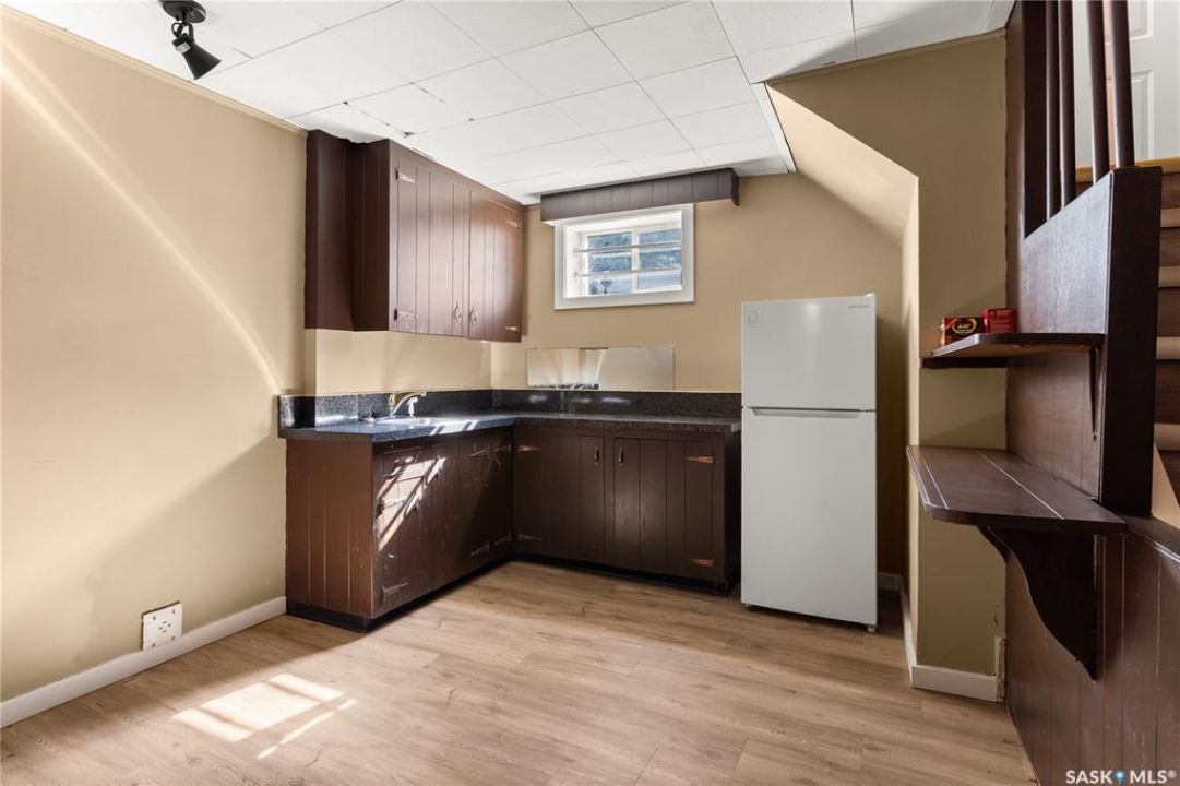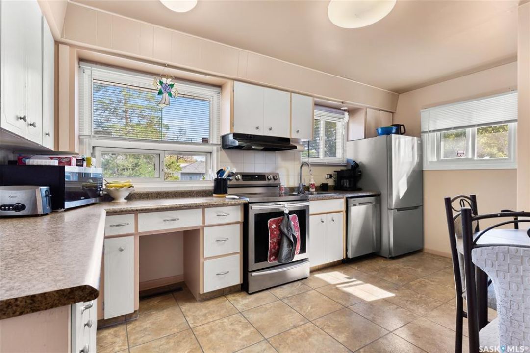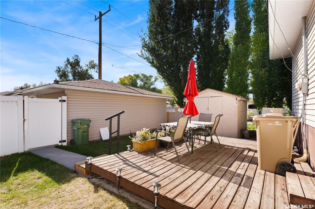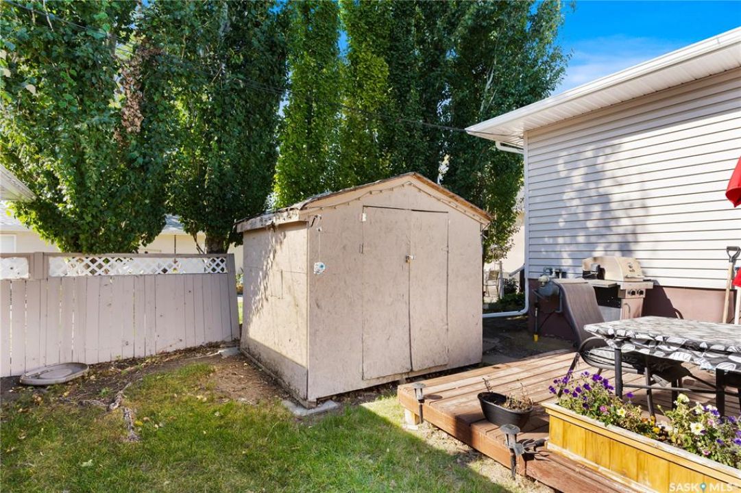 This 1100+ Square foot bungalow is located in Regina Rosemont area and is close to high schools and elementary schools and all i of the important amenities. This is a lovely home that has been well taken care of by its owner for 30 years. When you walk in, you immediately noticed the spacious living area with its beautiful hardwood floors and huge picture window! On the other side, is the kitchen and eating area that has had countertop replacement and freshly painted walls. All three bedrooms on the main floor are spacious and the beautiful hardwood floors flow throughout each one of these rooms and most of the main level. The four piece bathroom finishes this level. As you go downstairs you're greeted by more spacious rooms. The basement could easily be converted to accommodate a suite as it does have separate entry from the back door, and there is a kitchenette that has the wiring set up for a stove. There is one large bedroom, a huge family room, a three piece bathroom and of course, tons of storage as well as the utility and laundry room area! The backyard is lovely And a great place to decompress after a long day there is a large shed Garden beds as well as a fire pit area for cooler evenings. The house also has a single detached garage that has a carport alongside. This home must be seen To be appreciated. Extra Value items include all appliances, window treatments. Updates include, Newer windows, newer flooring throughout basement family area and bedroom and laundry area. Newer concrete walk from back door to garage .