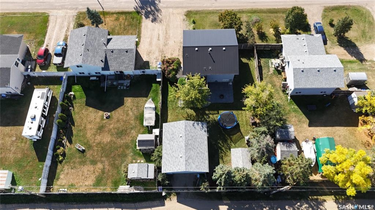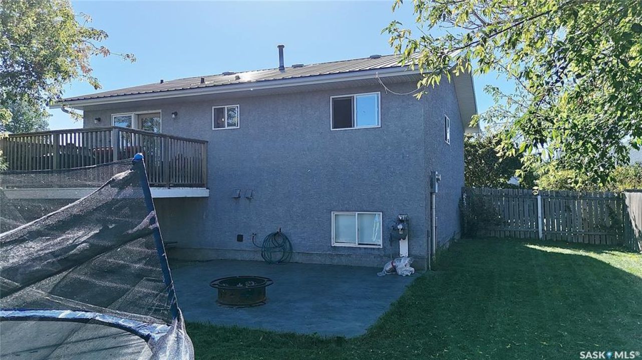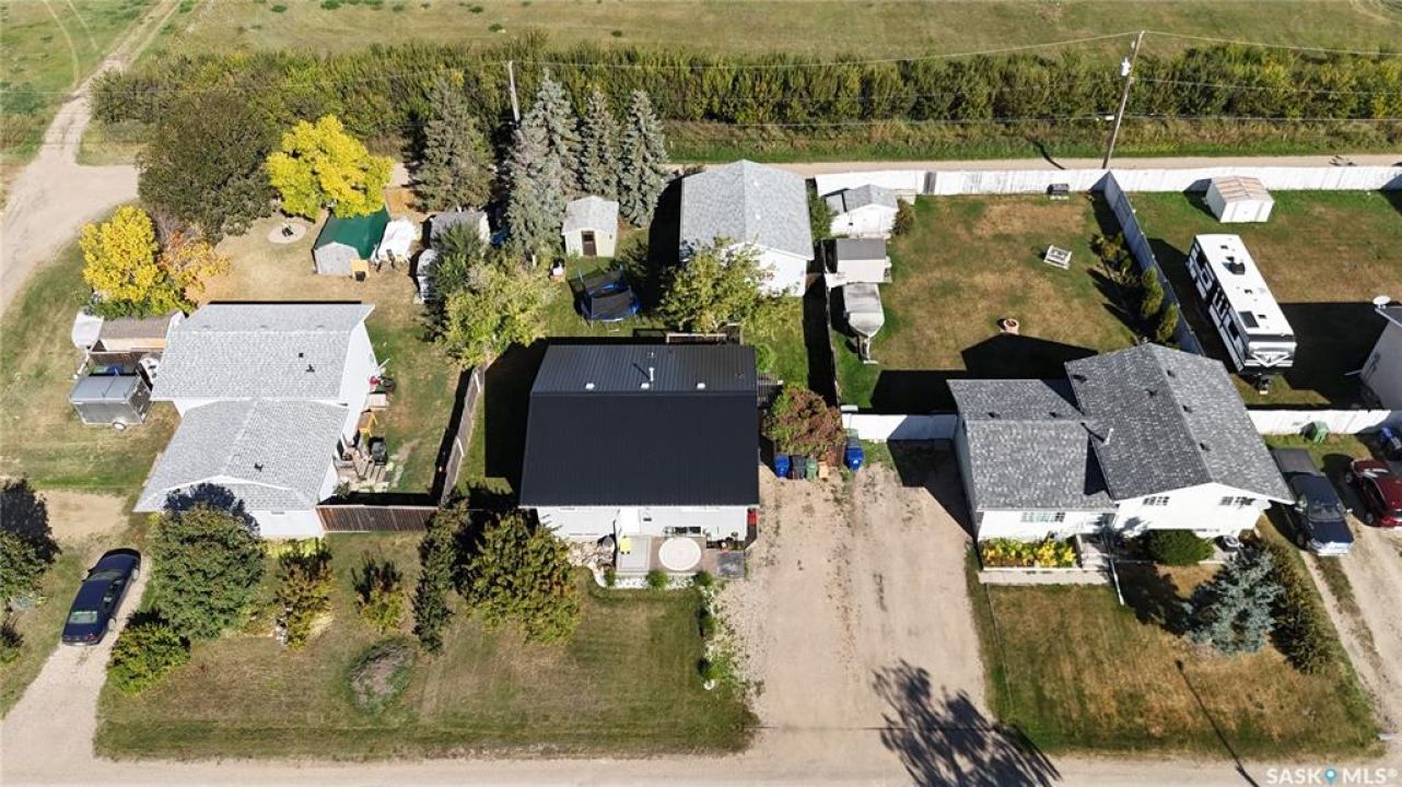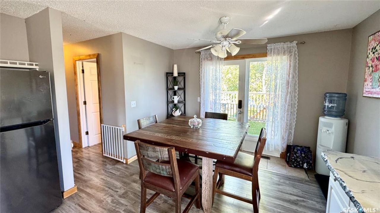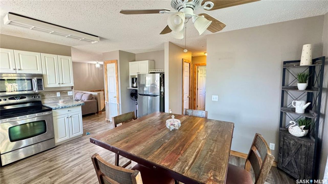 Welcome to 303 4th Street in Dundurn, Saskatchewan. This spacious 984 sq ft bi-level home is located just 30 minutes south of Saskatoon and only five minutes from Blackstrap Provincial Park. Perfect for families, first-time buyers, or anyone looking for more space, this 5-bedroom, 2-bathroom property offers excellent value with room to add instant equity. Set on a 66' x 126' lot, the yard features MATURE TREES, STUCCO SIDING, a METAL ROOF on the house (garage has asphalt shingles), and an OVERSIZED 28' x 24' fully insulated double detached garage. Inside, the bright, functional layout includes a welcoming living room with large SOUTH FACING windows, a kitchen with concrete countertops, white cabinetry, pantry, and stainless steel appliances. The adjacent dining nook opens to the back deck, creating an easy indoor-outdoor flow. Durable laminate flooring is found throughout the home for a clean, modern look. The main floor offers three bedrooms and a full 4-piece bathroom. The fully finished basement adds two more spacious bedrooms, a family room, a 3-piece bathroom, extra storage and laundry/utility space. Recent updates include a washer/dryer, laminate flooring, trim, bathroom fixtures, and the home is equipped with forced-air natural gas heating, an owned furnace, and a gas water heater. Appliances are included, making this home move-in ready. This Dundurn real estate listing backs onto open fields for peaceful prairie views while keeping you close to Saskatoon and Blackstrap Provincial Park. A rare opportunity to enjoy small-town living with modern convenience!