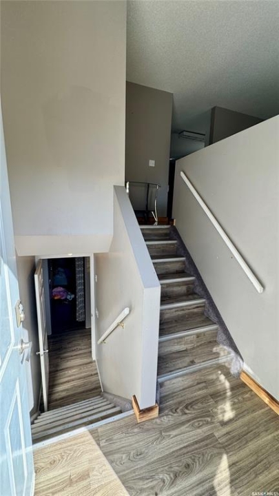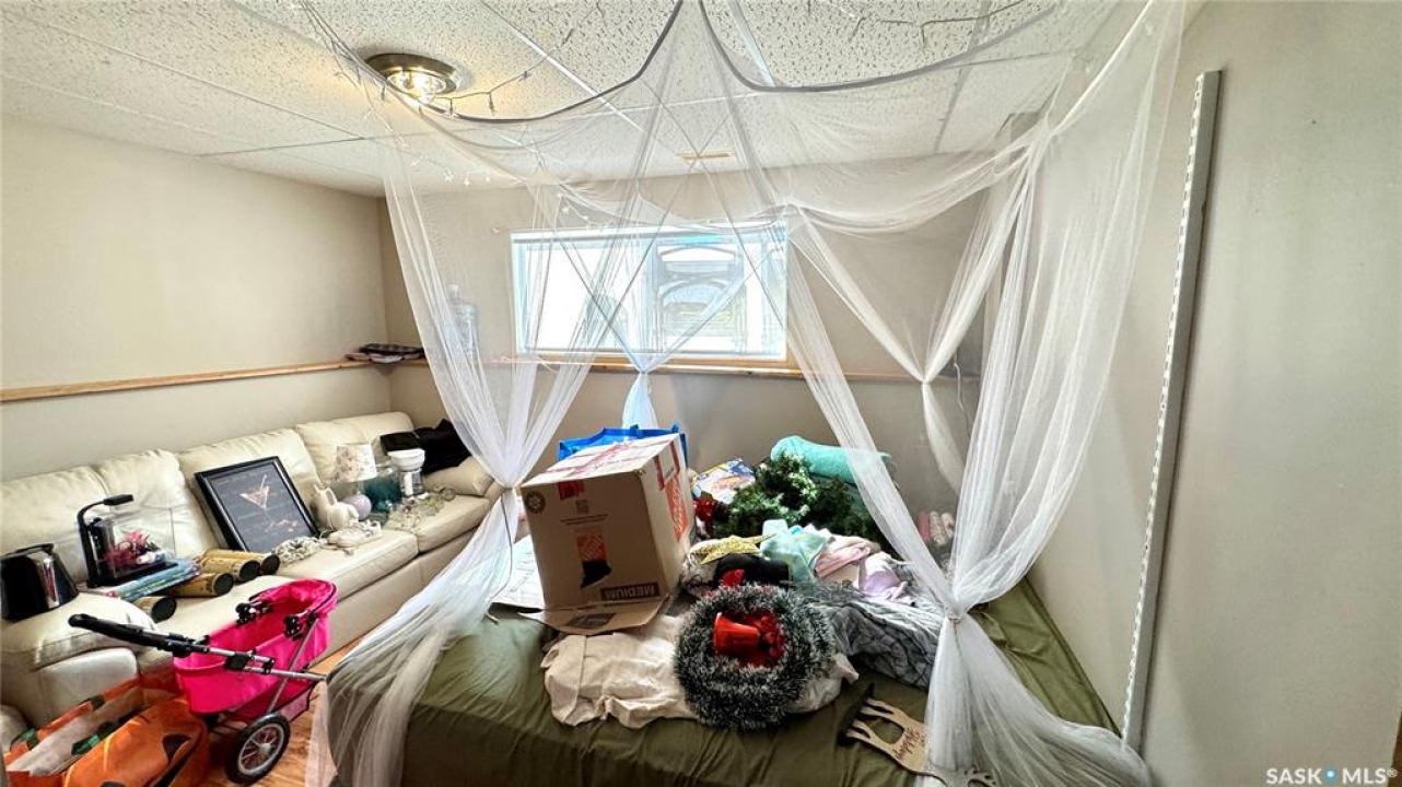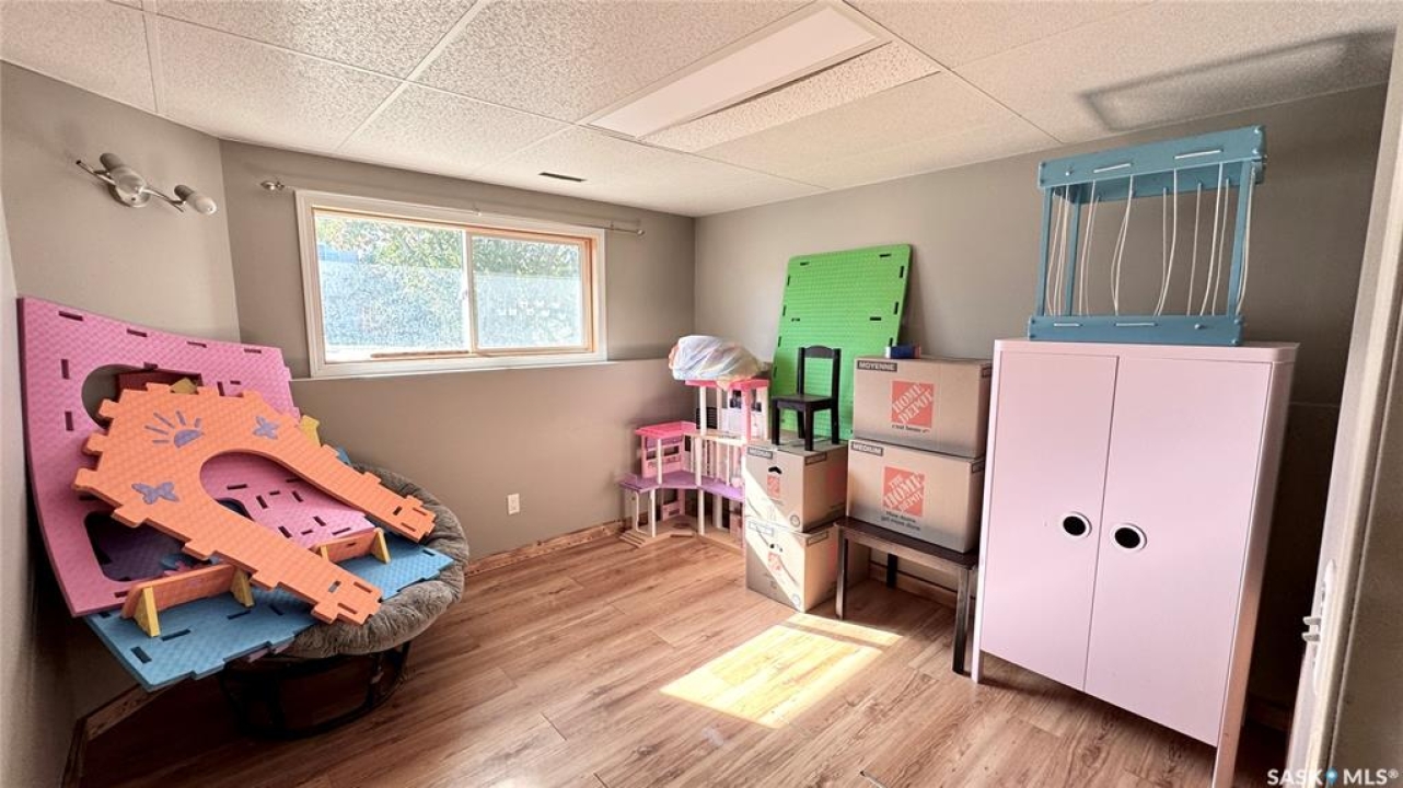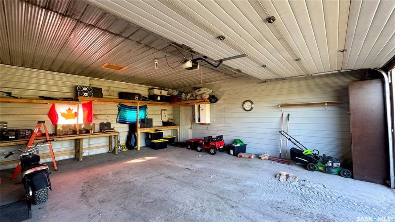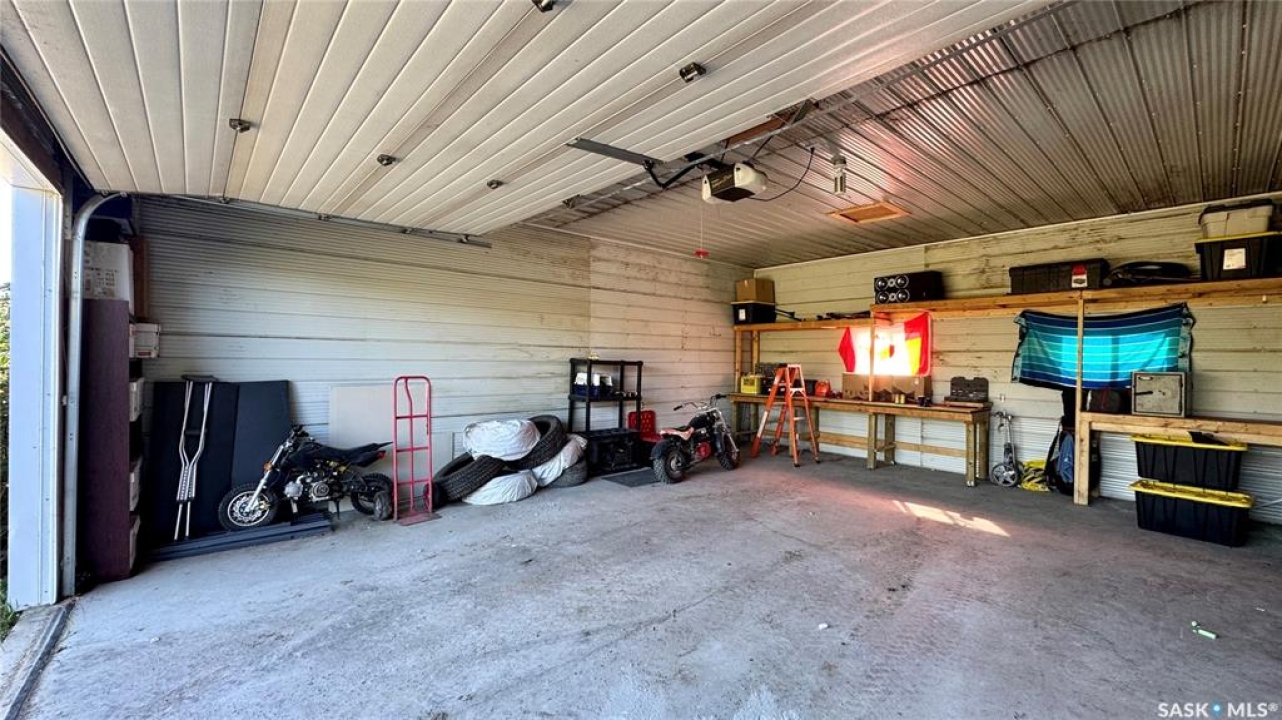 Welcome to 303 4th Street in Dundurn, Saskatchewan. This spacious 984 sq ft bi-level home is located just 30 minutes south of Saskatoon and only five minutes from Blackstrap Provincial Park. Perfect for families, first-time buyers, or anyone looking for more space, this 5-bedroom, 2-bathroom property offers excellent value with room to add instant equity. Set on a 66' x 126' lot, the yard features MATURE TREES, STUCCO SIDING, a METAL ROOF on the house (garage has asphalt shingles), and an OVERSIZED 28' x 24' fully insulated double detached garage. Inside, the bright, functional layout includes a welcoming living room with large SOUTH FACING windows, a kitchen with concrete countertops, white cabinetry, pantry, and stainless steel appliances. The adjacent dining nook opens to the back deck, creating an easy indoor-outdoor flow. Durable laminate flooring is found throughout the home for a clean, modern look. The main floor offers three bedrooms and a full 4-piece bathroom. The fully finished basement adds two more spacious bedrooms, a family room, a 3-piece bathroom, extra storage and laundry/utility space. Recent updates include a washer/dryer, laminate flooring, trim, bathroom fixtures, and the home is equipped with forced-air natural gas heating, an owned furnace, and a gas water heater. Appliances are included, making this home move-in ready. This Dundurn real estate listing backs onto open fields for peaceful prairie views while keeping you close to Saskatoon and Blackstrap Provincial Park. A rare opportunity to enjoy small-town living with modern convenience!
