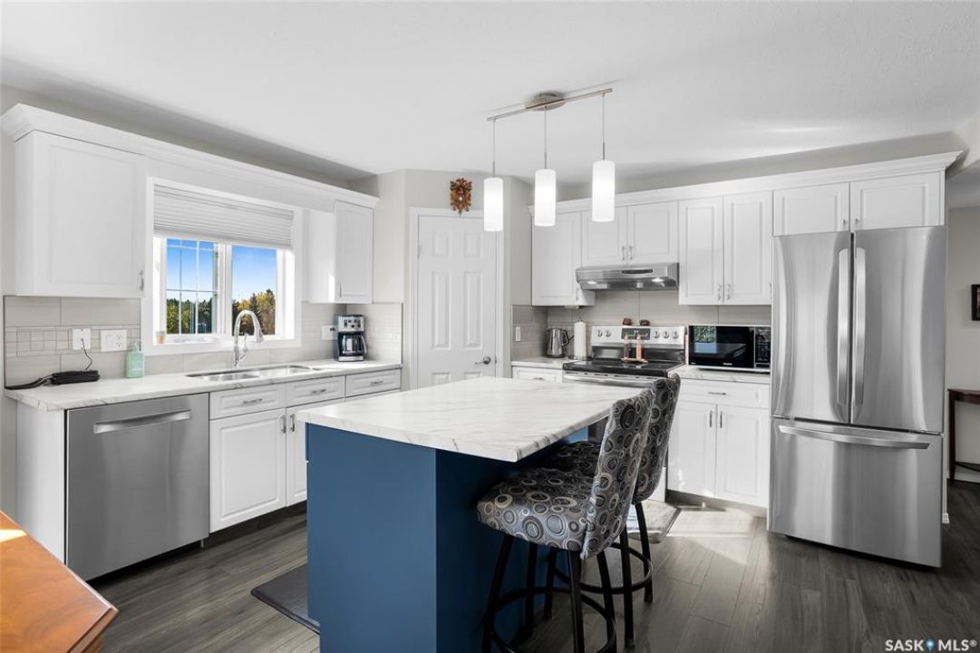 Welcome to 201-930 Heritage View in Heritage Pointe B. This beautifully updated 2-bedroom, 2-bathroom condo is a bright southeast-facing corner unit. The open floor plan features updated laminate flooring and a stylish kitchen with an island. The spacious primary bedroom offers a 3-piece en-suite and a large walk-in closet. Additional highlights include custom blackout blinds throughout, plus a heated underground parking stall with extra storage. Ideally located close to parks, shopping, and all amenities. Call today to arrange your personal viewing!