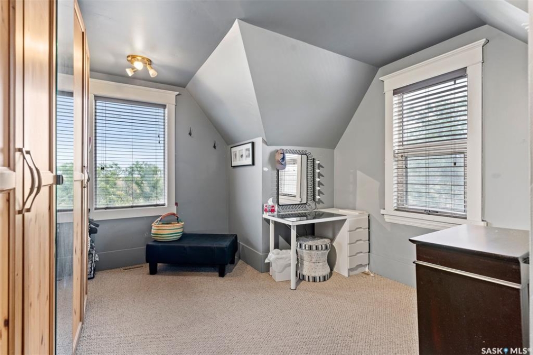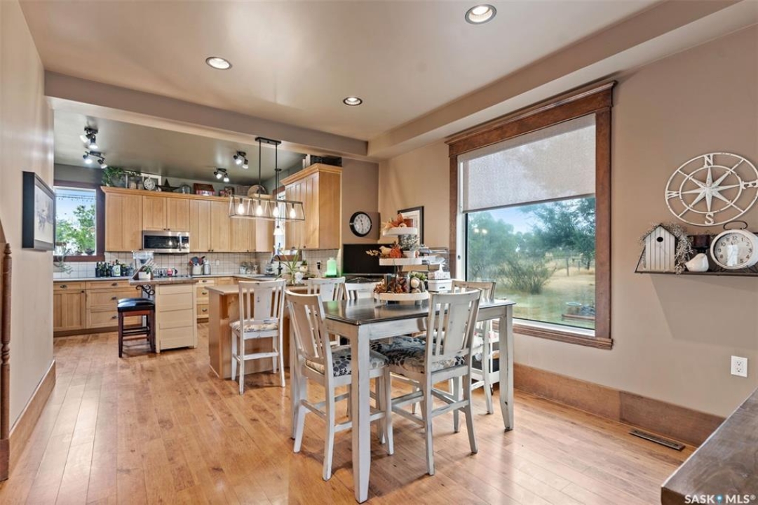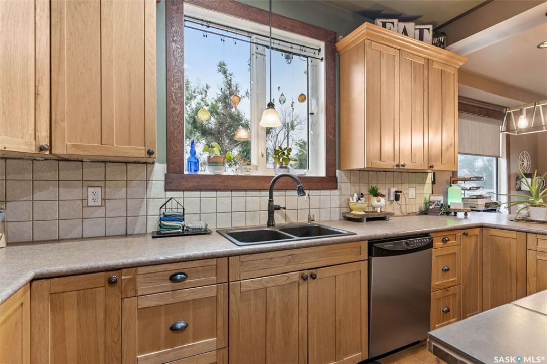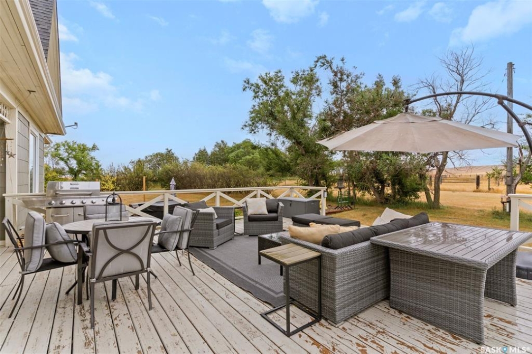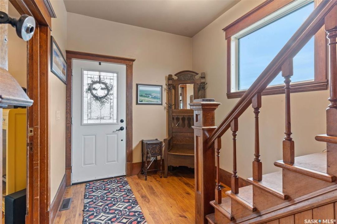 Welcome to this one-of-a-kind Eaton's character home, where classic charm meets modern living on a picturesque 13-acre estate near Lucky Lake. This meticulously restored property invites you into a world of timeless elegance, from the inviting wrap-around deck to the expansive, tree-lined yard that offers complete privacy and tranquillity. Originally relocated to its current location with a brand-new basement in 2007, this home has undergone extensive updates, including newer plumbing, wiring, and windows, ensuring that the historic beauty remains while offering today's modern conveniences. The spacious kitchen, remodelled with maple cabinetry in 2008, is a cook's dream, perfectly designed for creating memorable meals. The main living area, with large windows and 10-foot ceilings, floods with natural light, offering breathtaking views of the countryside. Upstairs, the primary suite is a peaceful retreat, complete with a cozy loft space, ideal for quiet moments or creative pursuits. The fully renovated basement, with 9-foot ceilings, provides ample space for a home gym, family room, or guest quarters. The updates continue with a high-efficiency furnace (2015) and a 2022 on-demand hot water tank for added comfort. Step outside to experience the full beauty of this property. The covered and uncovered portions of the deck are perfect for savouring the peaceful sounds of nature or watching the sunset over the rolling hills. For those dreaming of country living with modern amenities, this acreage is fully fenced for livestock and features both a pond and a dugout. An old barn and woodworking shed add even more character, while the meticulously tended gardens offer endless potential for the green thumb. With natural gas heating, municipal water, and paved access right to the property, convenience is at your fingertips. Schedule your viewing today and experience firsthand the charm, history, and peace that await you at this extraordinary acreage home!
