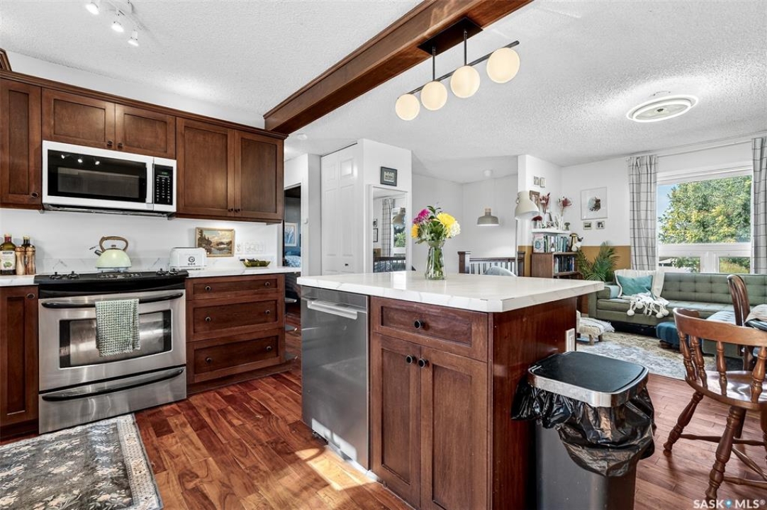 Warm & Welcoming Bi-Level on South Hill — Steps from the New School! This lovely bi-level is perfectly nestled in a quiet South Hill neighborhood — just a short walk from the brand-new joint-use elementary school, making it an ideal spot for families with young kids or anyone who values a great community feel. This home features 3 comfortable bedrooms and 2 bathrooms, with a layout that's both functional and cozy. The main floor features a bright, open living area, a kitchen that offers plenty of cabinet space and a handy island — perfect for meal prep, casual breakfasts, or helping with homework while cooking dinner. Down the hall you will find two bedrooms, and a full 4-piece bath! Downstairs, there's even more room to spread out with a large family room, a great sized bedroom, a convenient half-bath, and tons of space for movie nights, playtime, or guests. Through the garden door in the kitchen, enjoy easy access to your backyard oasis — complete with a deck, patio area, and an awesome kids' play structure! Whether you're entertaining friends or enjoying a quiet evening outside, this space is ready for it all. Finally, the oversized double garage is a real bonus —perfect for hobbies, storage, and keeping the snow off the car come winter!! Don't miss your chance to make this South Hill gem yours!