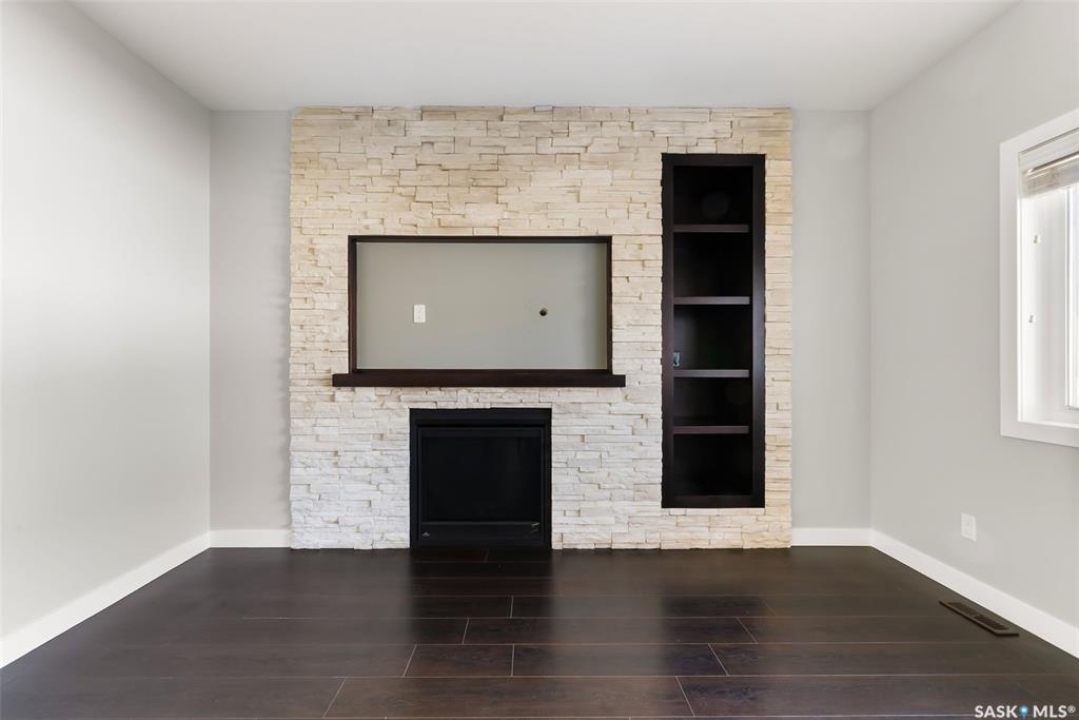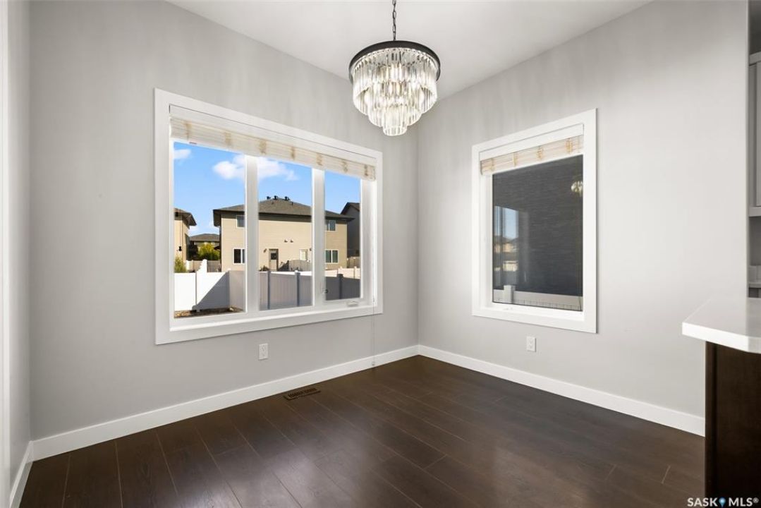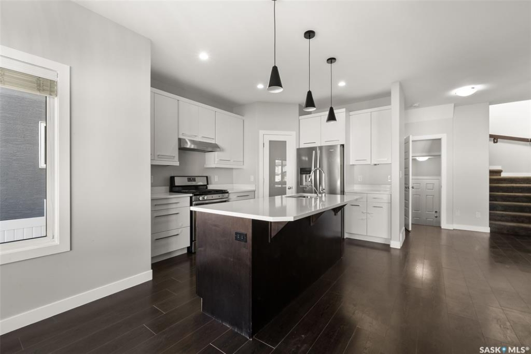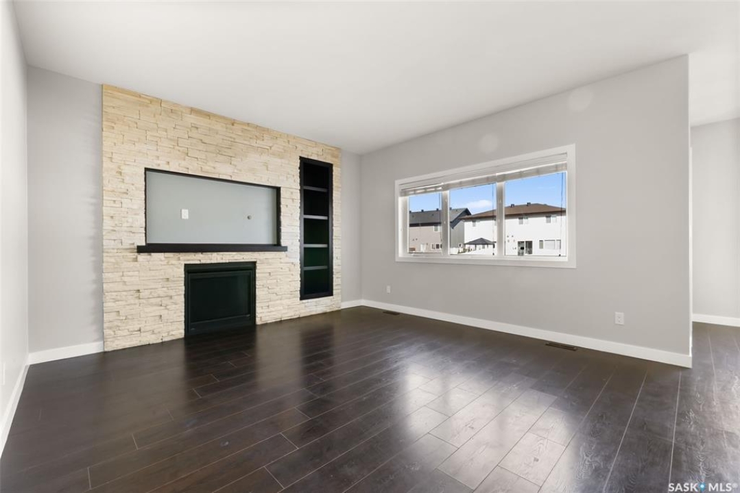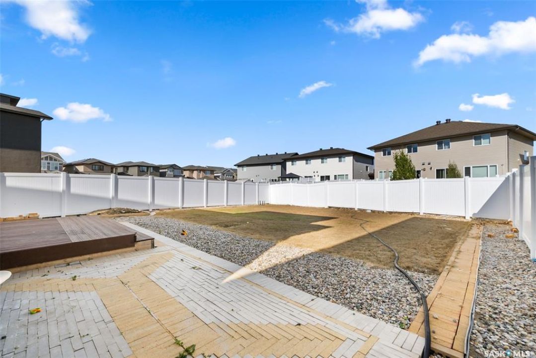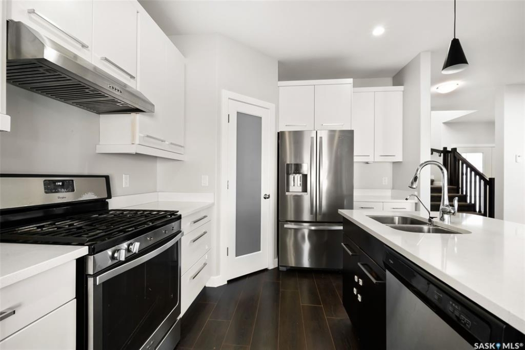 Welcome to 5308 Green Alder Way E, a beautiful 2-storey home located in the highly sought-after neighbourhood of Greens on Gardiner. Built in 2016, this 1,656 sq. ft. property offers modern finishes, a functional layout, and plenty of space for the whole family. The main floor is bright and open, featuring a spacious living room with a striking feature wall and fireplace, perfect for cozy evenings. The sleek kitchen showcases white cabinetry, quartz countertops, stainless steel appliances, a large island with bar seating, and is complimented by a stylish dining area with a modern chandelier and large windows overlooking the backyard. A convenient 2-piece bath and main floor laundry complete this level. Upstairs, you'll find three comfortable bedrooms, including a large primary suite with a walk-in closet and a 5-piece ensuite featuring double sinks, a soaker tub, and a separate shower. Two additional bedrooms and a full 4-piece bath provide plenty of room for family or guests. The fully finished basement offers even more living space with a spacious recreation room, an additional bedroom, office space, and a 4-piece bath—ideal for teenagers, extended family, or a home office setup. Outside, the backyard is fully fenced and landscaped with a patio, deck, and low-maintenance rock accents—ready for you to add your personal touch. The double attached garage provides secure parking and extra storage. Located within walking distance to schools, parks, shopping, and all East Regina amenities, this home combines style, comfort, and convenience. This property is move-in ready and waiting for its next owners. Don't miss your opportunity to live in one of Regina's most desirable communities!