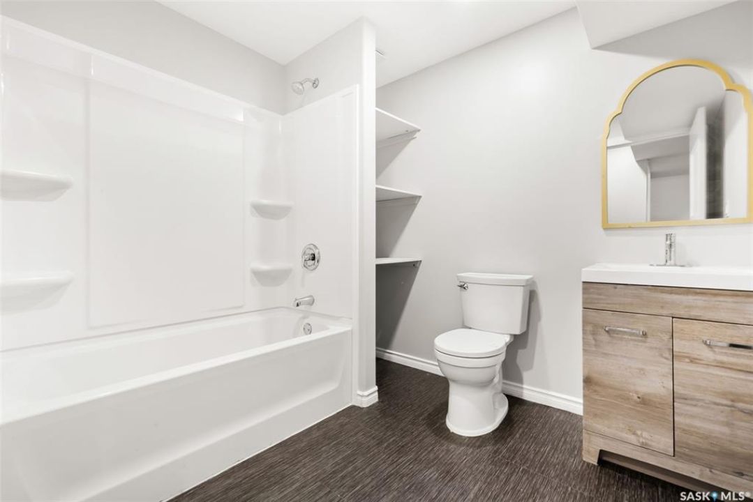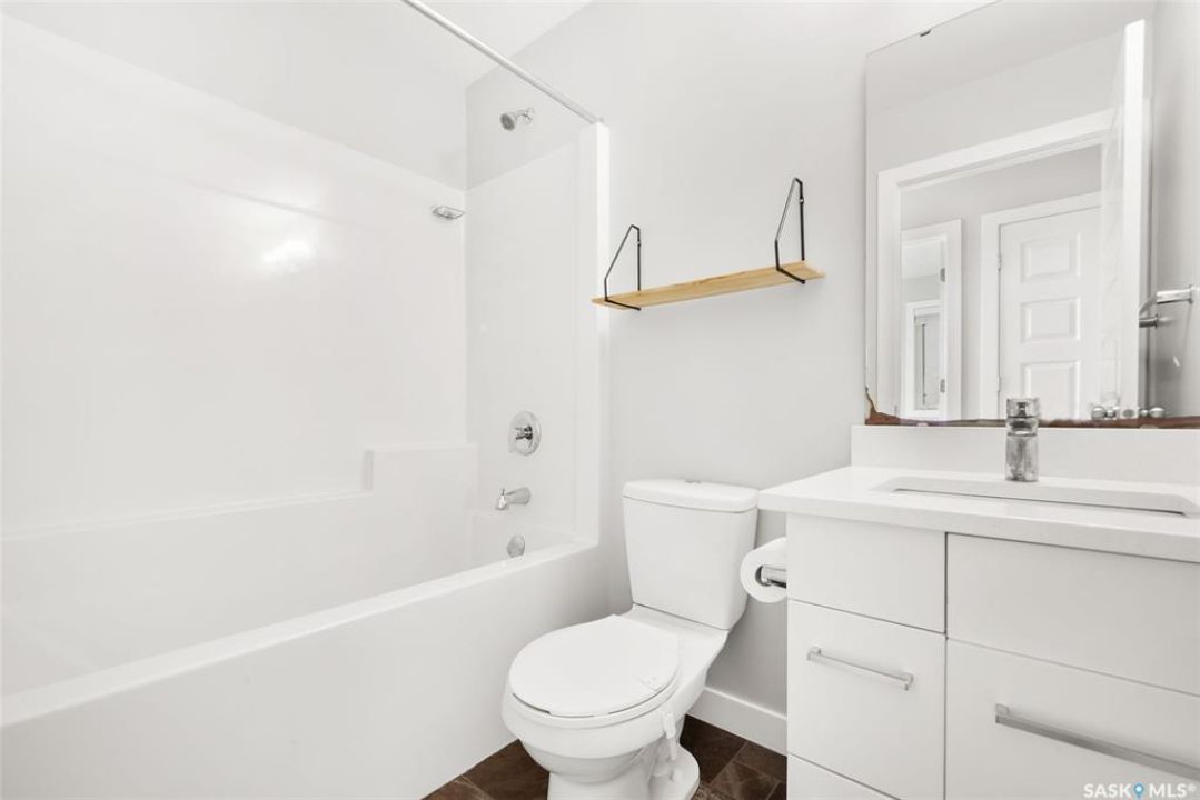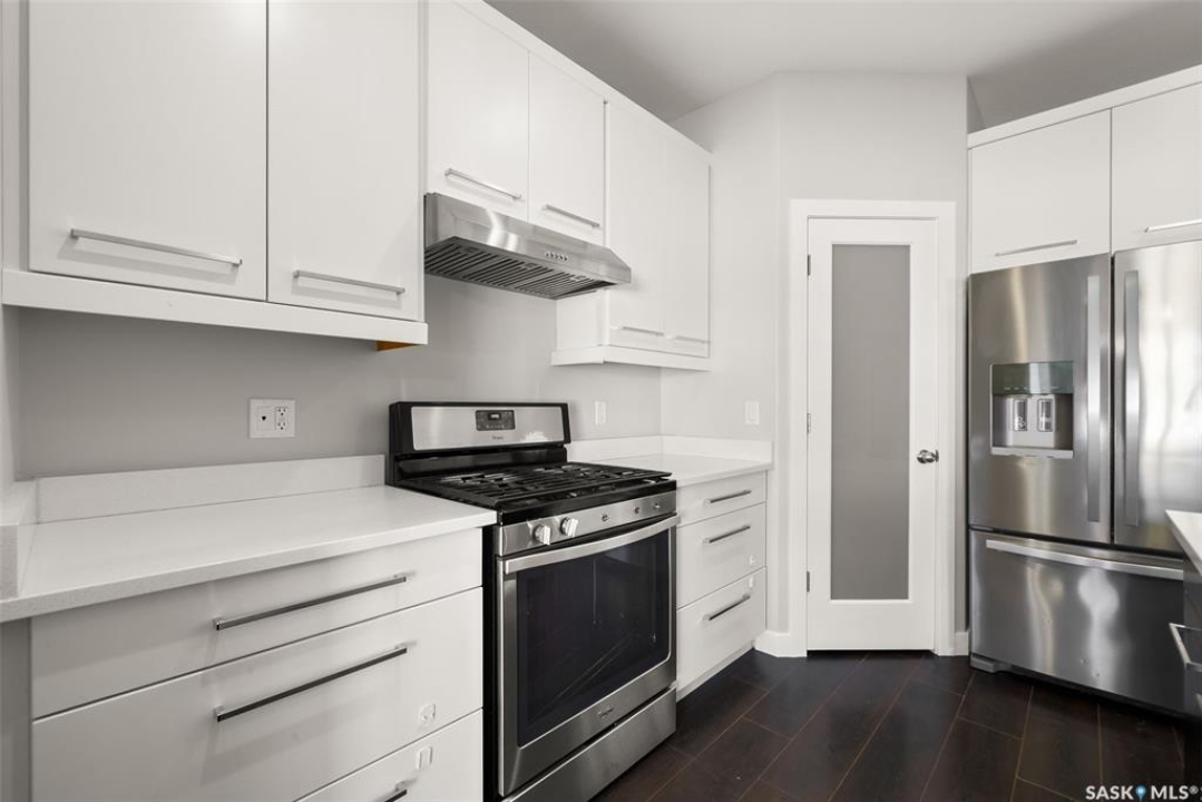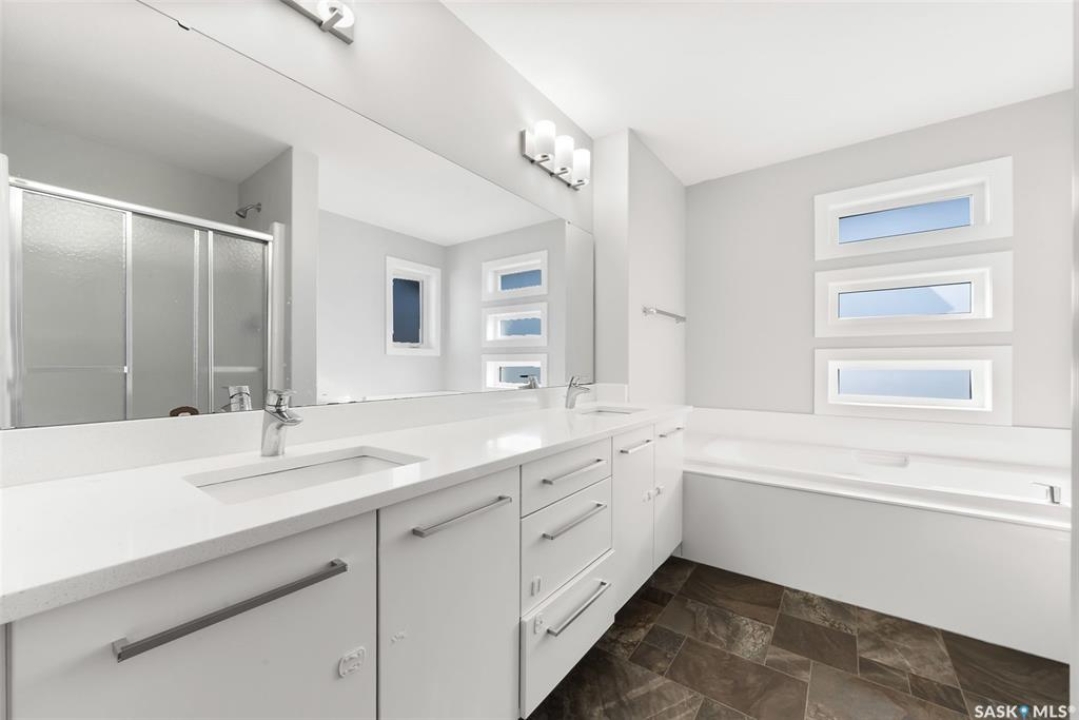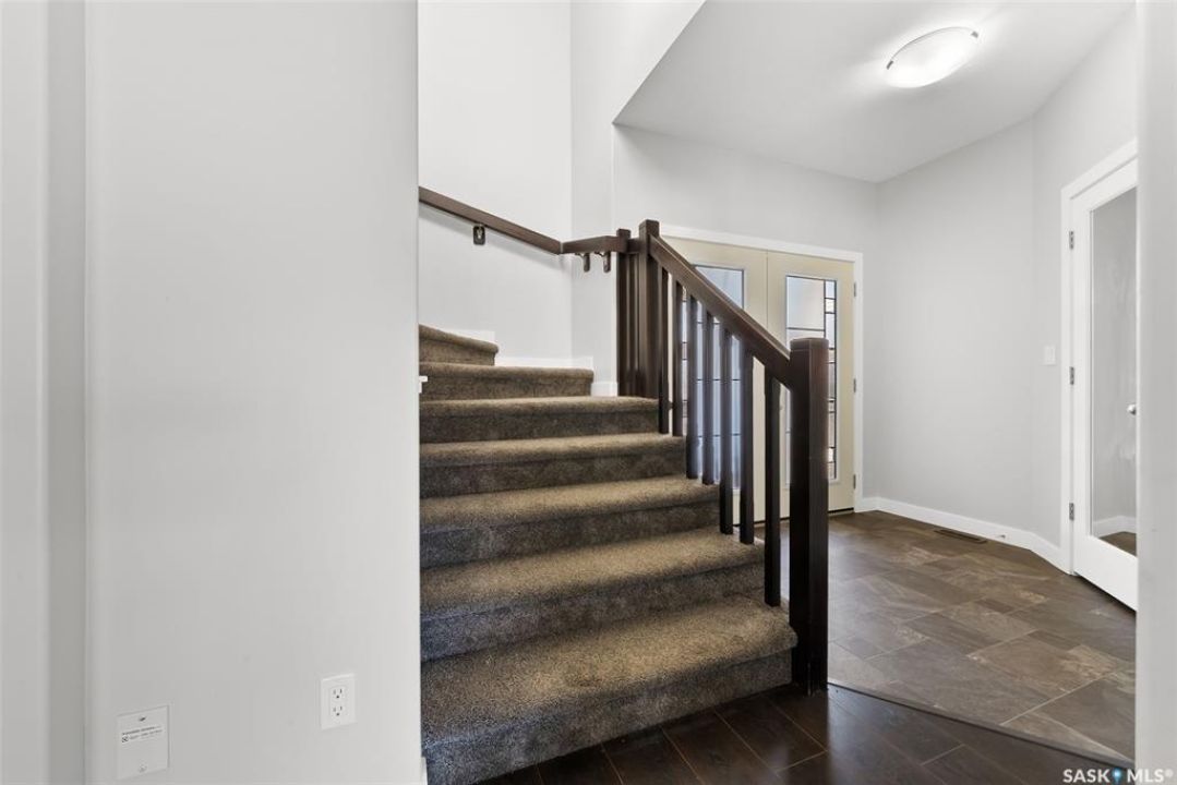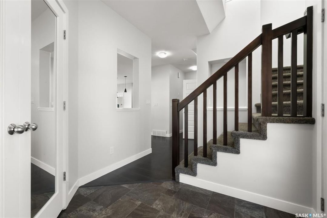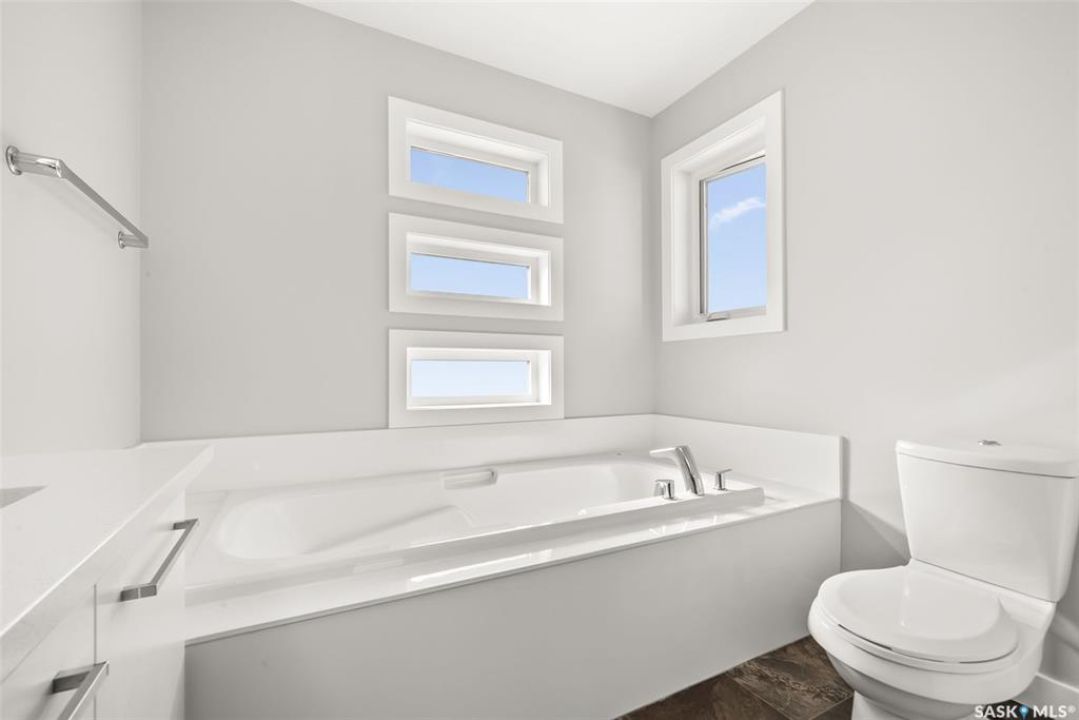 Welcome to 5308 Green Alder Way E, a beautiful 2-storey home located in the highly sought-after neighbourhood of Greens on Gardiner. Built in 2016, this 1,656 sq. ft. property offers modern finishes, a functional layout, and plenty of space for the whole family. The main floor is bright and open, featuring a spacious living room with a striking feature wall and fireplace, perfect for cozy evenings. The sleek kitchen showcases white cabinetry, quartz countertops, stainless steel appliances, a large island with bar seating, and is complimented by a stylish dining area with a modern chandelier and large windows overlooking the backyard. A convenient 2-piece bath and main floor laundry complete this level. Upstairs, you'll find three comfortable bedrooms, including a large primary suite with a walk-in closet and a 5-piece ensuite featuring double sinks, a soaker tub, and a separate shower. Two additional bedrooms and a full 4-piece bath provide plenty of room for family or guests. The fully finished basement offers even more living space with a spacious recreation room, an additional bedroom, office space, and a 4-piece bath—ideal for teenagers, extended family, or a home office setup. Outside, the backyard is fully fenced and landscaped with a patio, deck, and low-maintenance rock accents—ready for you to add your personal touch. The double attached garage provides secure parking and extra storage. Located within walking distance to schools, parks, shopping, and all East Regina amenities, this home combines style, comfort, and convenience. This property is move-in ready and waiting for its next owners. Don't miss your opportunity to live in one of Regina's most desirable communities!