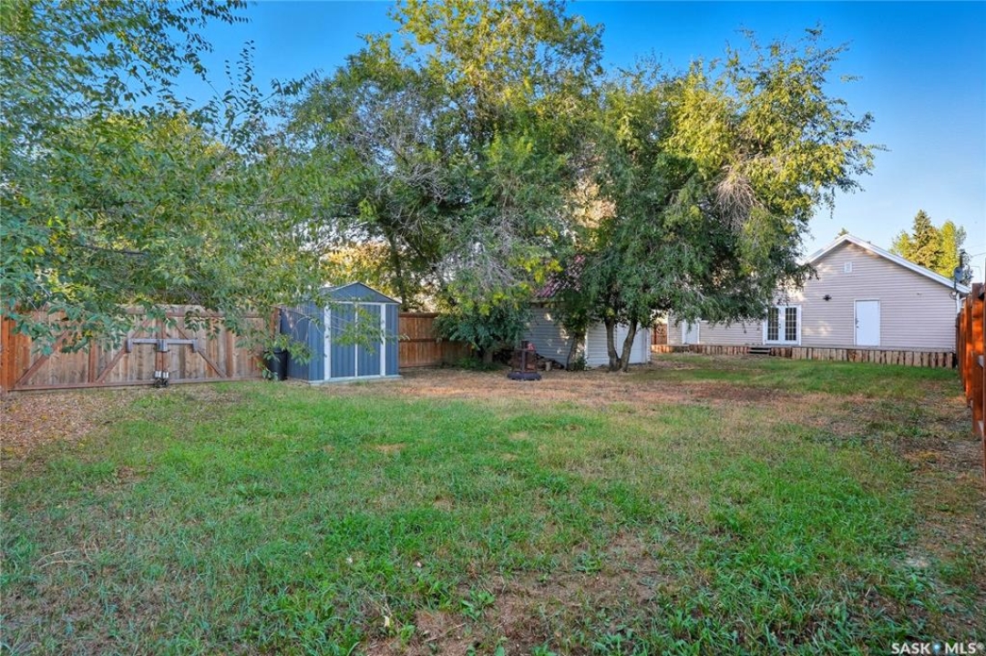 Small-Town Charm Meets Big Value in Harris! Welcome to 105 Main Street in Harris, SK — a friendly rural community just 45 minutes from Saskatoon and 20 minutes from Rosetown. This massive bungalow offers incredible value and plenty of room for the whole family. Inside, you'll find an open-concept living and dining area, perfect for entertaining, plus 4 oversized bedrooms, a den, and 3 full bathrooms. A designated laundry area makes daily living easy. Step outside to enjoy a beautiful covered front veranda and a huge fenced backyard with mature trees, a deck, storage shed, and a smaller detached garage/workshop — ideal for projects or extra storage. Major renovations were completed about 10 years ago, including laminate flooring, updated kitchen cupboards and countertops, bathrooms, plumbing, electrical, and windows. Plus, you'll enjoy peace of mind with a maintenance-free metal roof, new furnace (2024), water heater (2023), and fence (2021). Located right on Main Street, you're just steps from the grocery store, credit union, post office, and pub. This is an affordable family home with unmatched value — small-town living at its best! Contact your favourite REALTOR ® today to book a viewing. Buyer to verify all measurements.