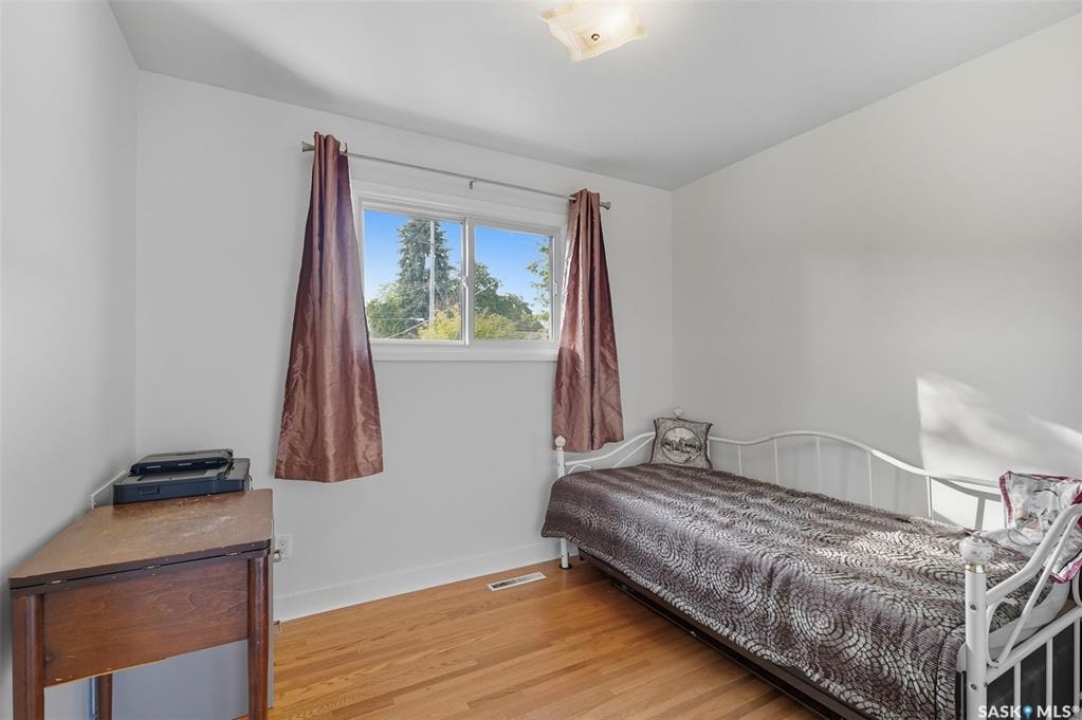 Looking for a home in the desirable Holliston neighbourhood? This 1,041 sq/ft bungalow is the perfect blend of character and updates, offering comfort, convenience, and excellent potential. The Main floor features 3 Bedrooms & 1 Bath, Original hardwood floors throughout much of the home with an Updated kitchen and bathroom for modern style and function Newer windows and shingles plus a fresh coat of paint, making this home move-in ready. The lower level is Fully developed basement with a 1 bed, 1 bath nanny suite, Potential to convert to a secured separate suite for added income or extended family. The outside exterior an Irregular rectangular lot shape with impressive dimensions: 78' frontage, 60' width at back, approx. 144' deep sides. Fully fenced with low-maintenance white vinyl fencing Fully landscaped and established with garden boxes and perennials ready to bloom each spring. A Single attached garage for added convenience Holliston is one of Saskatoon's most sought-after neighbourhoods—close to schools, shopping, Market Mall, parks, and easy access to Circle Drive and all city amenities. Size: 1,041 sq/ft bungalow Bedrooms: 3 up + 1 down Bathrooms: 2 total. October/November possession is possible Don't miss this opportunity to own in a fantastic neighbourhood with a property that checks all the boxes for family living, investment potential, and long-term value.