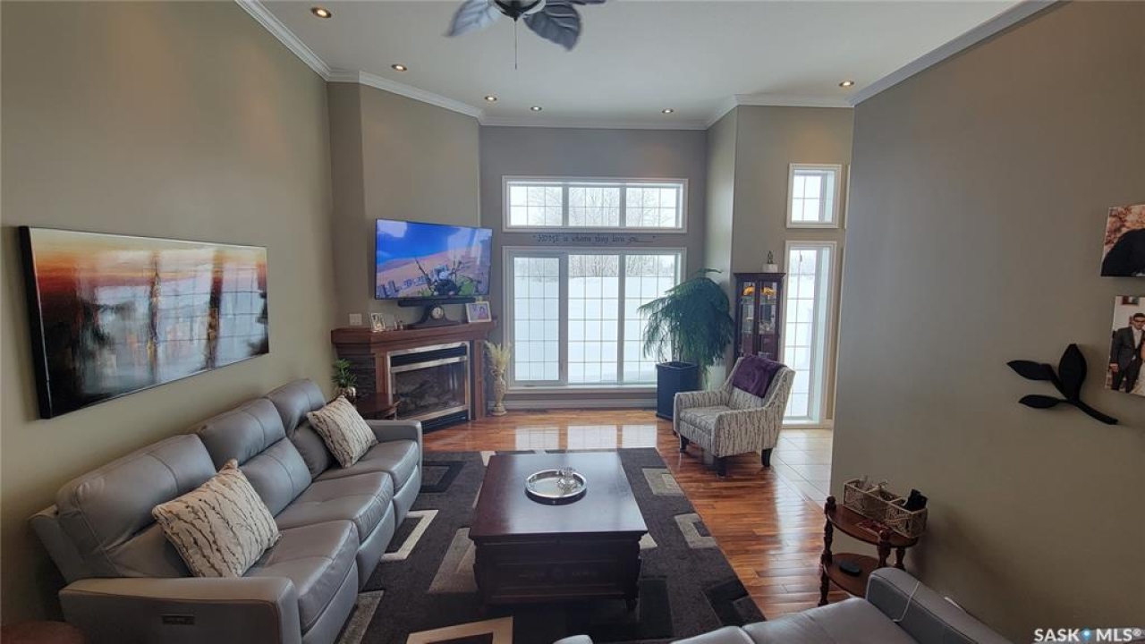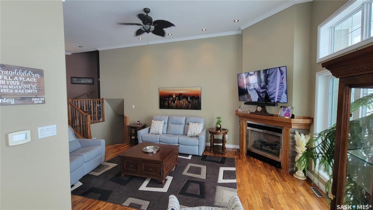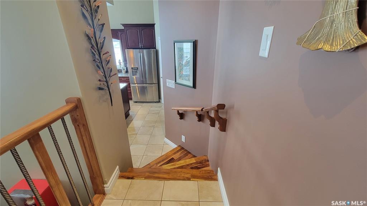 Executive style 1613 sq. ft. 4 level split home built in 2009; sellers are original owners and tons of pride showing in this one; 2 bedrooms and 2 baths on upper level, 1 bedroom on 1st lower level; spacious primary bedroom features a walk-in closet plus 3 pce ensuite with a beautiful tiled walk-in shower; main bath features a corner jetted soaker air tub; Kitchen and dining has 12' ceilings, tons of cherry finish maple cabinets, quartz counter tops, expansive island with built-in dishwasher, walk in pantry and limestone tile flooring, built in oven & microwave stainless steel combo, 36" ceramic stove top; reverse osmosis; main floor laundry/mudroom; living room features a vaulted ceiling, stunning acacia hardwood floors & natural gas fireplace; your first lower level hosts family room with a natural gas fireplace, 3rd bedroom & 3pc bath; very bottom or 4th level is unfinished but can be a future bedroom if so needed; 14' ceilings in finished double attached garage with in-floor heat, basement has plumbing installed for in floor heat too; 35 year asphalt shingles; hardy plank siding; ICF block basement; underground sprinklers; 12x18 garden shed; triple paned Argon windows; air to air ex-changer; water softener; sump pump; central air conditioning (2018); new humidifier installed in fall of 2023; so many more features; price out cost to build new and you will see the value in this one!