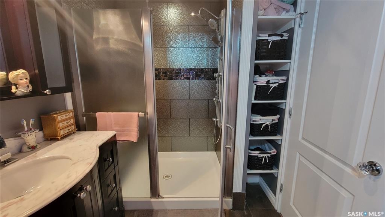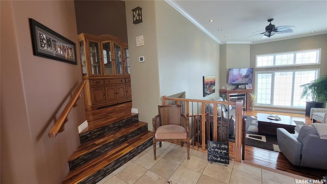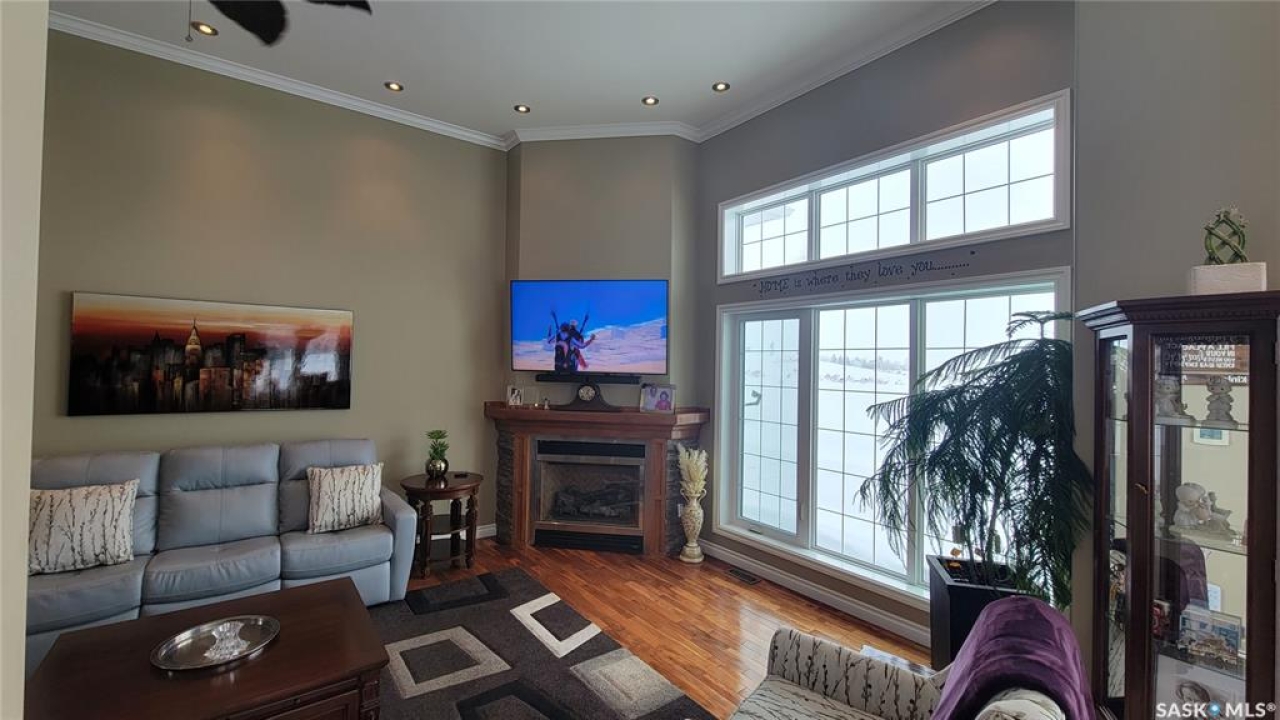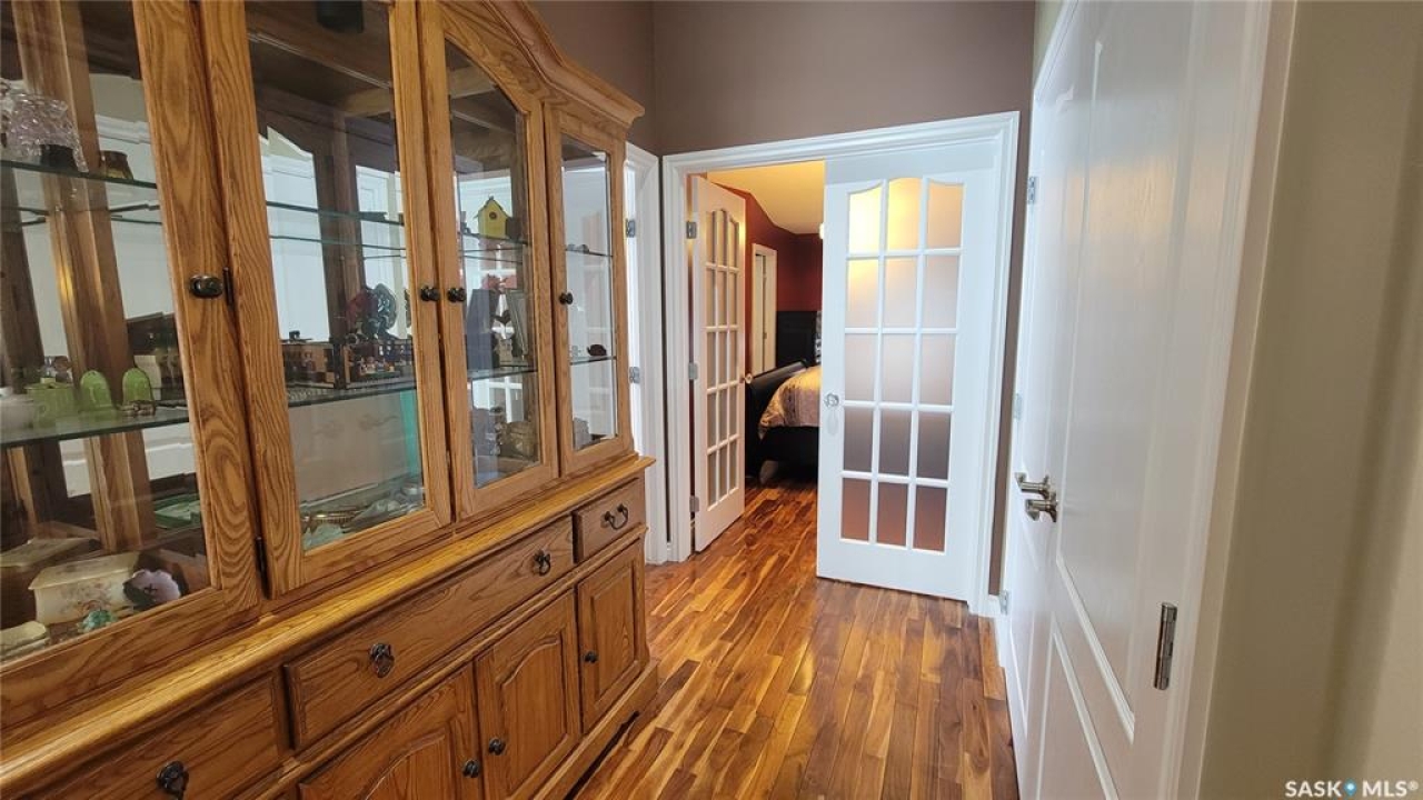 Executive style 1613 sq. ft. 4 level split home built in 2009; sellers are original owners and tons of pride showing in this one; 2 bedrooms and 2 baths on upper level, 1 bedroom on 1st lower level; spacious primary bedroom features a walk-in closet plus 3 pce ensuite with a beautiful tiled walk-in shower; main bath features a corner jetted soaker air tub; Kitchen and dining has 12' ceilings, tons of cherry finish maple cabinets, quartz counter tops, expansive island with built-in dishwasher, walk in pantry and limestone tile flooring, built in oven & microwave stainless steel combo, 36" ceramic stove top; reverse osmosis; main floor laundry/mudroom; living room features a vaulted ceiling, stunning acacia hardwood floors & natural gas fireplace; your first lower level hosts family room with a natural gas fireplace, 3rd bedroom & 3pc bath; very bottom or 4th level is unfinished but can be a future bedroom if so needed; 14' ceilings in finished double attached garage with in-floor heat, basement has plumbing installed for in floor heat too; 35 year asphalt shingles; hardy plank siding; ICF block basement; underground sprinklers; 12x18 garden shed; triple paned Argon windows; air to air ex-changer; water softener; sump pump; central air conditioning (2018); new humidifier installed in fall of 2023; so many more features; price out cost to build new and you will see the value in this one!