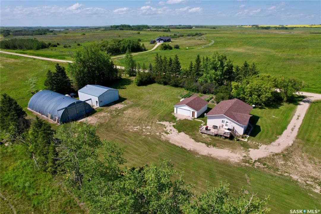 Turnkey Quarter section Farm with Home, Shop & Equipment. Escape to the peace of country living, ideally located between the communities of Vonda and St. Denis, just 30 minutes from Saskatoon. Whether you're a young family looking for space to grow, or a farm family returning to your roots, this property is ready to support your next chapter. The heart of the property is a 1,278 sq ft bungalow, offering 3 bedrooms, 2 full bathrooms, a fully finished basement, and key modern upgrades including city water, natural gas on-demand hot water heater, and a high-efficiency furnace. Roof recently upgraded with new Fiberglass shingles. The home is well insulated as the low energy bills attest too. Also low property taxes and lots of income potential, make this a very affordable property. The yard is beautifully treed, well-kept, and perfect for children, pets, and outdoor living with the large garden and firepit area. Plus a 26'x28' detached insulated garage and garden storage shed. Outbuildings include a 32' x 40' newer heated shop – perfect for equipment storage, projects, or small business use. 42' x 68' steel Miracle Span quonset. 8 Westeel grain bins, 4 are hopper bottom and 4 have steel in ground hoppers, one with aeration. All acreage equipment, attachments, and tools included. JD 2305 Compact Utility tractor and attachments, JD 4020 with FEL, JD Gator Cx, and JD Quad plus a large list of other tools and equipment is available. Move in and start your adventure right away. Fully fenced pasture with 3 dugouts and a well. With the natural pasture and ample infrastructure, this property is suited to a wide range of agricultural uses – from mixed farming to livestock and equestrian pursuits in the Saskatchewan countryside.