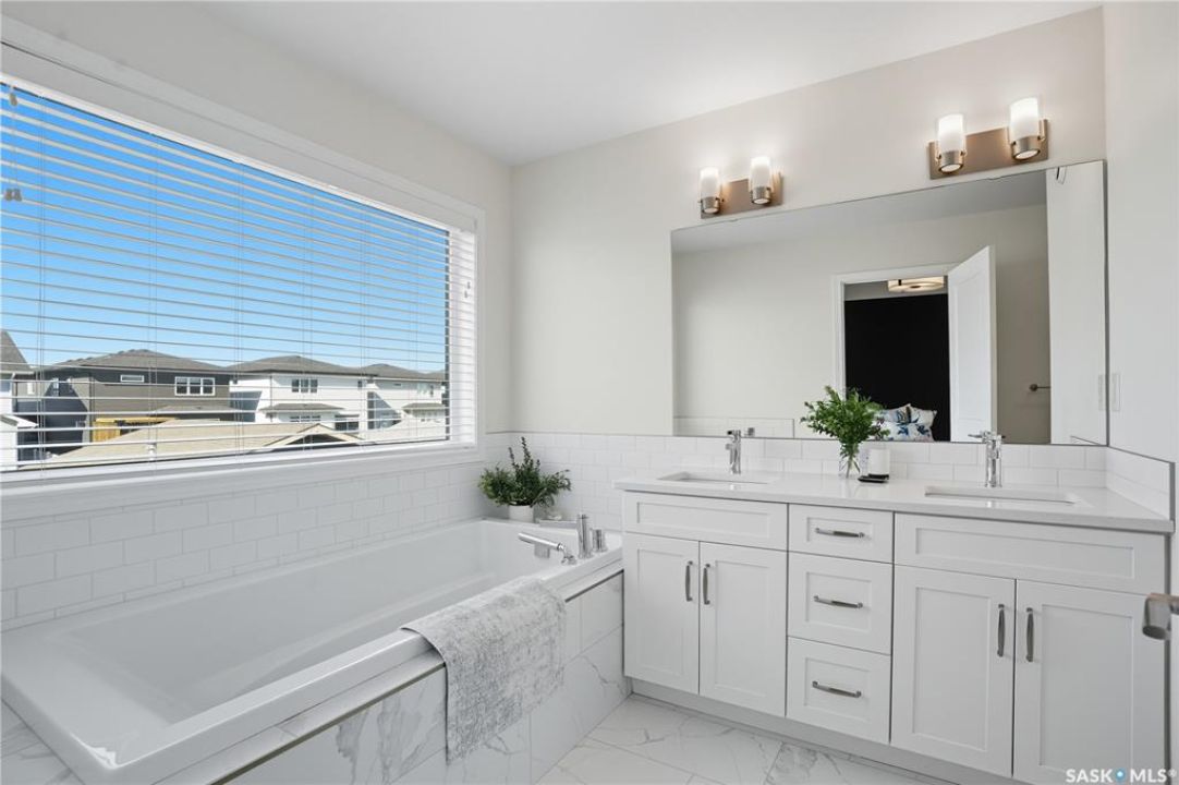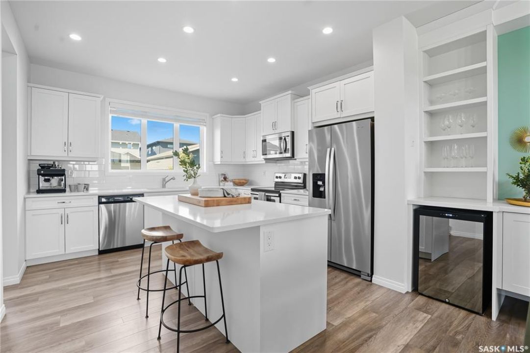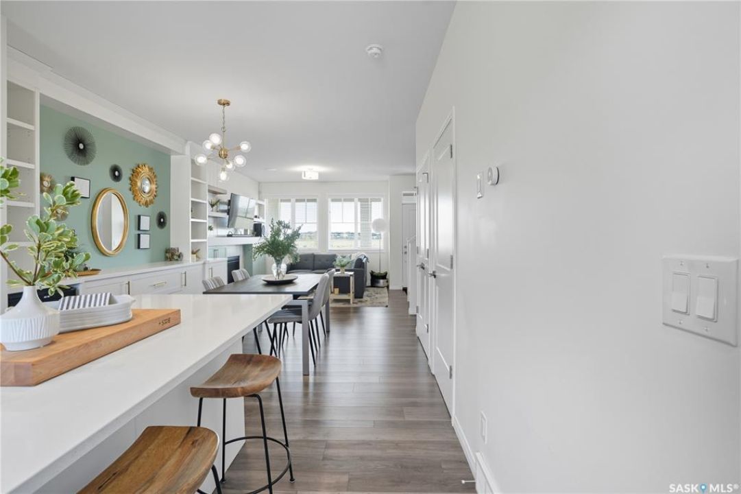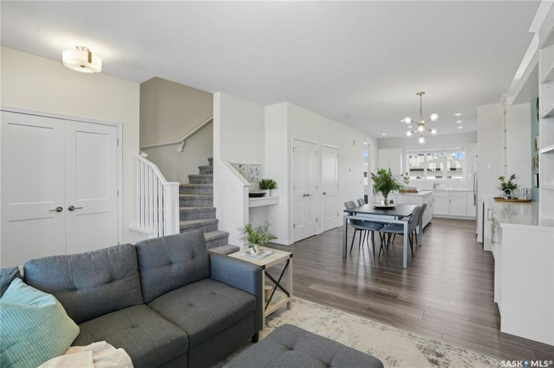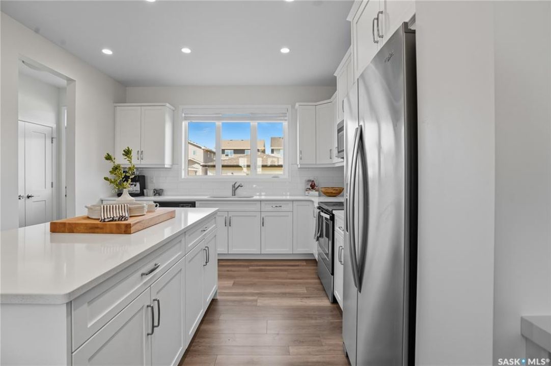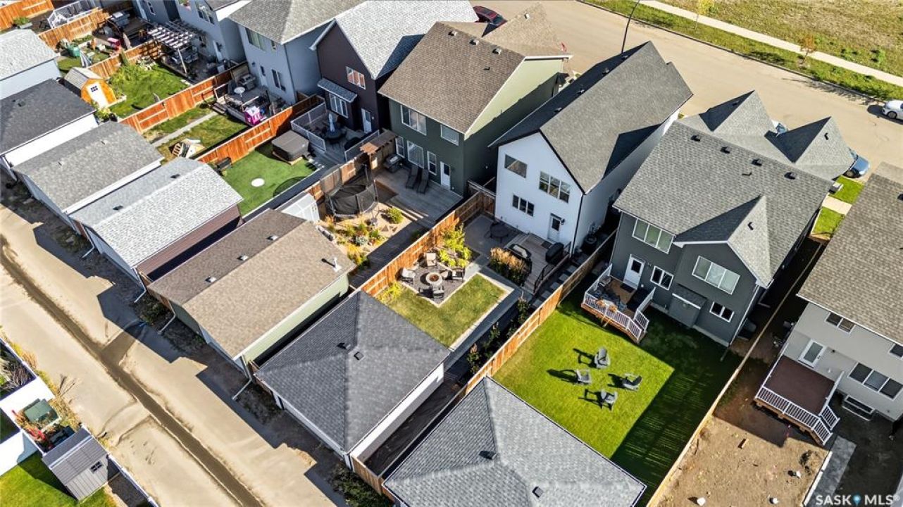 Why buy new when you can have everything in this whole beautiful package instead? This 1519 sq ft former Dream show home is in mint condition AND is already loaded with valuable upgrades you won't get in new construction, including custom cabinetry, a gas fireplace, oversized extra windows, deck, fence, patio, front and back landscaping, and window treatments. With a separate side entry, this home is a perfect way to take advantage of the Secondary Suite Incentive Grant and supplement your income! Plus, this home sits in one of the neighbourhood's most prime locations directly across from Brighton's Core Park and future elementary school (hello, resale value!) Step inside to soaring 9-foot ceilings that flood the main floor with natural light. The well-styled living room is spacious, anchored by the sleek gas fireplace and upscale wall that balances cozy warmth with clean modern character. The large kitchen with massive island is a beautiful gathering space, while custom cabinetry, quartz counters, mixed metal hardware, and stylish lighting set an elevated tone. Upstairs, the primary suite is a true sanctuary, showcasing vaulted ceilings and a spa-inspired ensuite with double sinks, soaker tub, and a glass-enclosed shower. Two more spacious bedrooms overlook the park, and a full-size laundry room and four-piece bathroom make the second floor all about easy, calm living. Out back, a fully landscaped yard with a built-in fire pit area, deck and patio, and underground sprinklers is designed for warm fall days and cool autumn nights. The double detached garage adds extra convenience and comfort. Brighton's shops, restaurants, and plaza are just minutes away—so grabbing dinner, catching a movie, meeting friends, or running errands couldn't be easier. With bus stops, schools, daycares, and quick access to the U of S and downtown, this is about community, comfort, and creating memories in a home that feels just right. Call to book your exclusive viewing now!