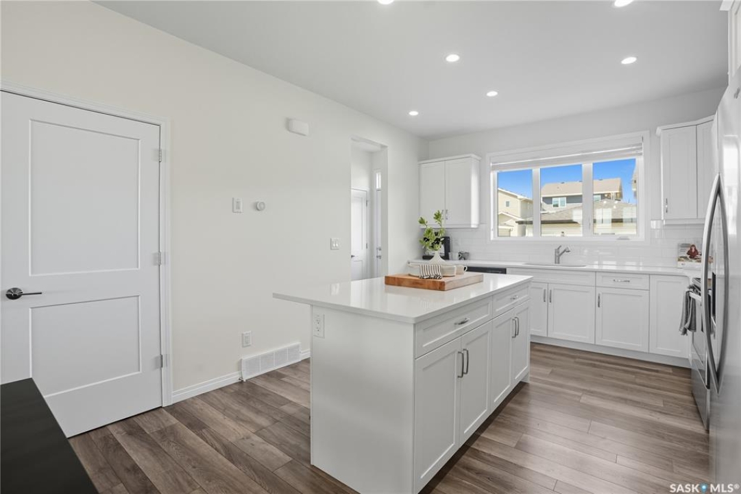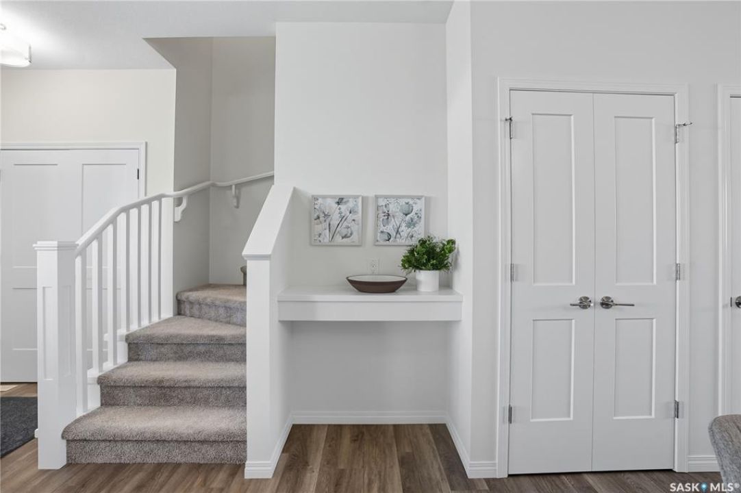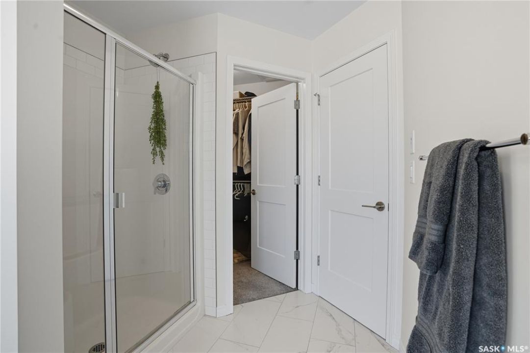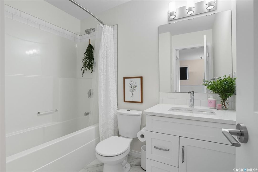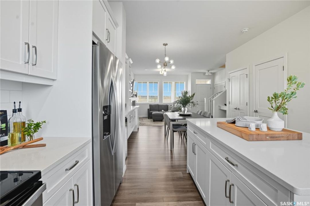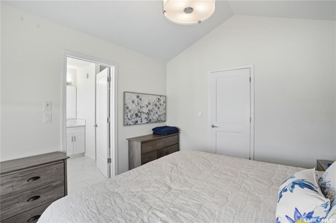 Why buy new when you can have everything in this whole beautiful package instead? This 1519 sq ft former Dream show home is in mint condition AND is already loaded with valuable upgrades you won't get in new construction, including custom cabinetry, a gas fireplace, oversized extra windows, deck, fence, patio, front and back landscaping, and window treatments. With a separate side entry, this home is a perfect way to take advantage of the Secondary Suite Incentive Grant and supplement your income! Plus, this home sits in one of the neighbourhood's most prime locations directly across from Brighton's Core Park and future elementary school (hello, resale value!) Step inside to soaring 9-foot ceilings that flood the main floor with natural light. The well-styled living room is spacious, anchored by the sleek gas fireplace and upscale wall that balances cozy warmth with clean modern character. The large kitchen with massive island is a beautiful gathering space, while custom cabinetry, quartz counters, mixed metal hardware, and stylish lighting set an elevated tone. Upstairs, the primary suite is a true sanctuary, showcasing vaulted ceilings and a spa-inspired ensuite with double sinks, soaker tub, and a glass-enclosed shower. Two more spacious bedrooms overlook the park, and a full-size laundry room and four-piece bathroom make the second floor all about easy, calm living. Out back, a fully landscaped yard with a built-in fire pit area, deck and patio, and underground sprinklers is designed for warm fall days and cool autumn nights. The double detached garage adds extra convenience and comfort. Brighton's shops, restaurants, and plaza are just minutes away—so grabbing dinner, catching a movie, meeting friends, or running errands couldn't be easier. With bus stops, schools, daycares, and quick access to the U of S and downtown, this is about community, comfort, and creating memories in a home that feels just right. Call to book your exclusive viewing now!
