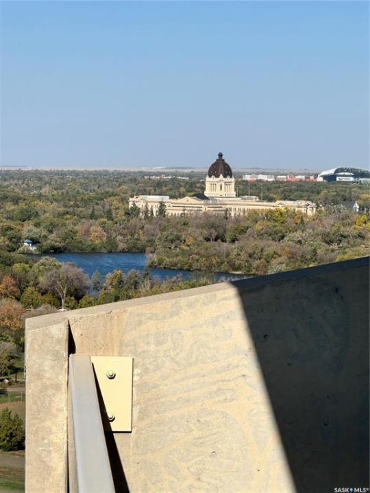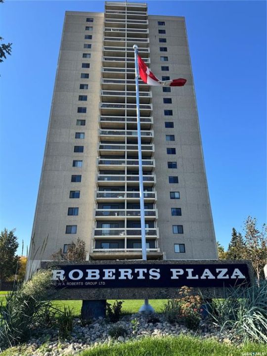 Beautiful 18th-Floor Condo with Panoramic Sunset Views Welcome to this rare opportunity to own a 969 sq. ft. two-bedroom, two-bath condo perched high on the 18th floor of the Iconic Roberts Plaza, with stunning Southwest views of the city skyline and unforgettable sunsets. This solid, full-concrete building offers exceptional soundproofing with concrete construction between floors—providing peace and quiet in the heart of the city. Inside, you'll appreciate the updated kitchen with an abundance of cabinetry, making meal prep and storage a breeze. The spacious floor plan includes in-unit storage and two generously sized bedrooms. The primary bedroom features a full bank of closets along one wall, ensuring ample space for all your wardrobe needs. The building offers top notch amenities, including: * Heated underground parking * Indoor pool and hot tub * Brand new sauna * Recently refurbished weight room *Indoor Racquetball and Squash Court * Short-term rental guest suite for visitors *Indoor bike storage. * 2 Newly installed Elevators. Adding to the appeal, the condo fees are all-inclusive, covering energy, power, water, and sewer—making this home not only comfortable but also a smart investment. If you're looking for convenience, incredible views, and unmatched value in a quiet, well-maintained concrete building, this condo is a must-see Fantastic location with a short walk to Connexus Art Center, the University, and directly across the street from Wascana Park.