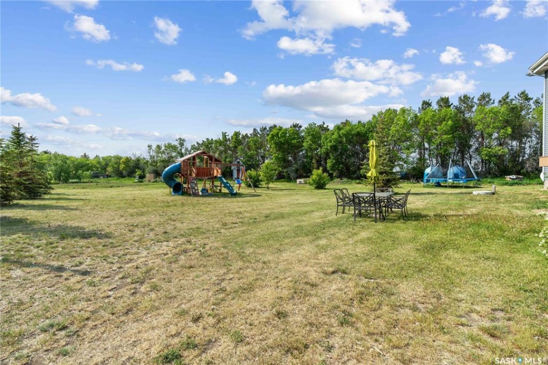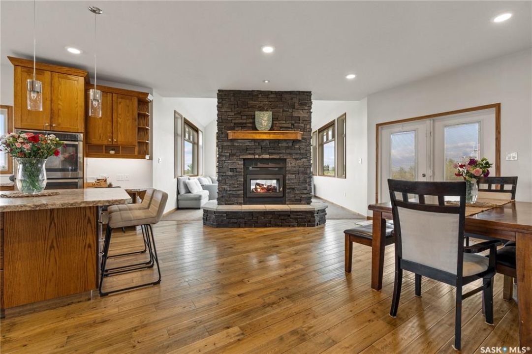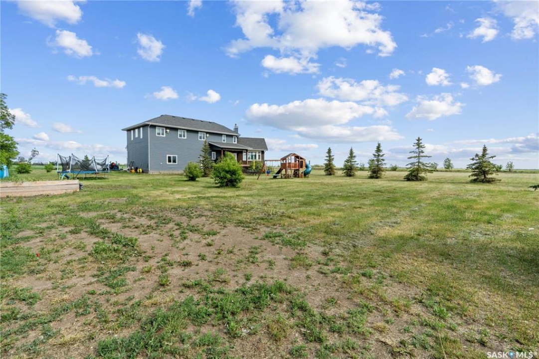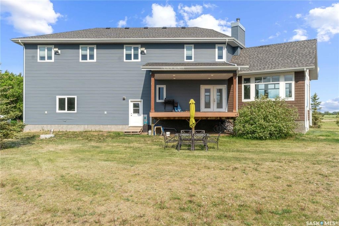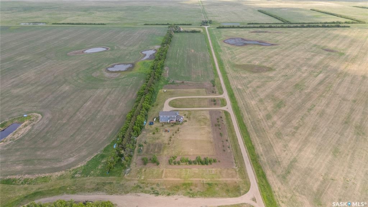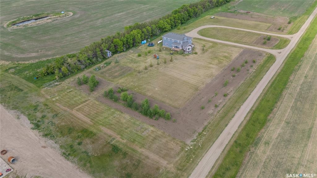Welcome to your dream acreage! This gorgeous property offers 19.94 acres of meticulously maintained land. Whether you're looking for space, privacy, or a blend of agricultural and residential potential, this has it all. Step into the large, tiled front entry and feel right at home. Main floor showcases a spacious living room with massive windows and a striking stone fireplace, a formal dining area with rich hardwood floors, and a truly impressive kitchen. Designed for entertaining and family living, the kitchen features a large island with a second sink, stainless steel appliances, wall oven, tile backsplash, and abundant cabinetry. A convenient 2-piece bathroom also on the main level. Upstairs, double doors lead into the primary bedroom with a 3-piece ensuite featuring a stand-up shower, lots of counter space, and ample storage. You'll also find 5 more bedrooms, a 4-piece bathroom, a bonus room, a dedicated office, and laundry—all thoughtfully placed on the upper floor for comfort and functionality. The finished basement offers even more living space with a cozy family room, a recreation room currently used as a home gym, an additional 3-piece bathroom, utility room, 9 ft ceilings throughout and luxurious in-floor heating. The heated, insulated double attached garage also features in-floor heat—ideal for year-round use. There are two furnaces for the upstairs and main floor separately. A reverse osmosis system is included for the house tap. Iron filter/water softener system is in use. Property is professionally landscaped and offers an abundance of space for outdoor storage, gardening, or future development. Majority of open acres are currently rented to a local farmer. Beautifully treed backyard with the property line that extends beyond the trees. Bus comes to the front door to the wonderful K-12 school in Imperial! Land is located across from crown land/national wildlife refuge! If thinking of moving the home, sellers have the costs for that so please inquire.
