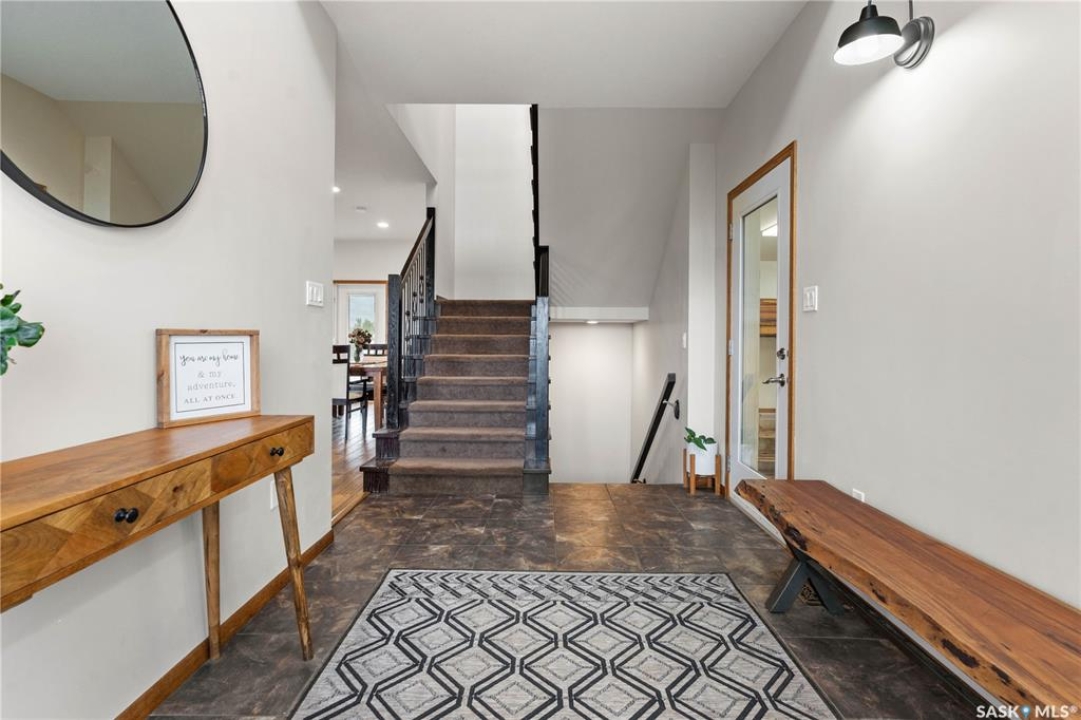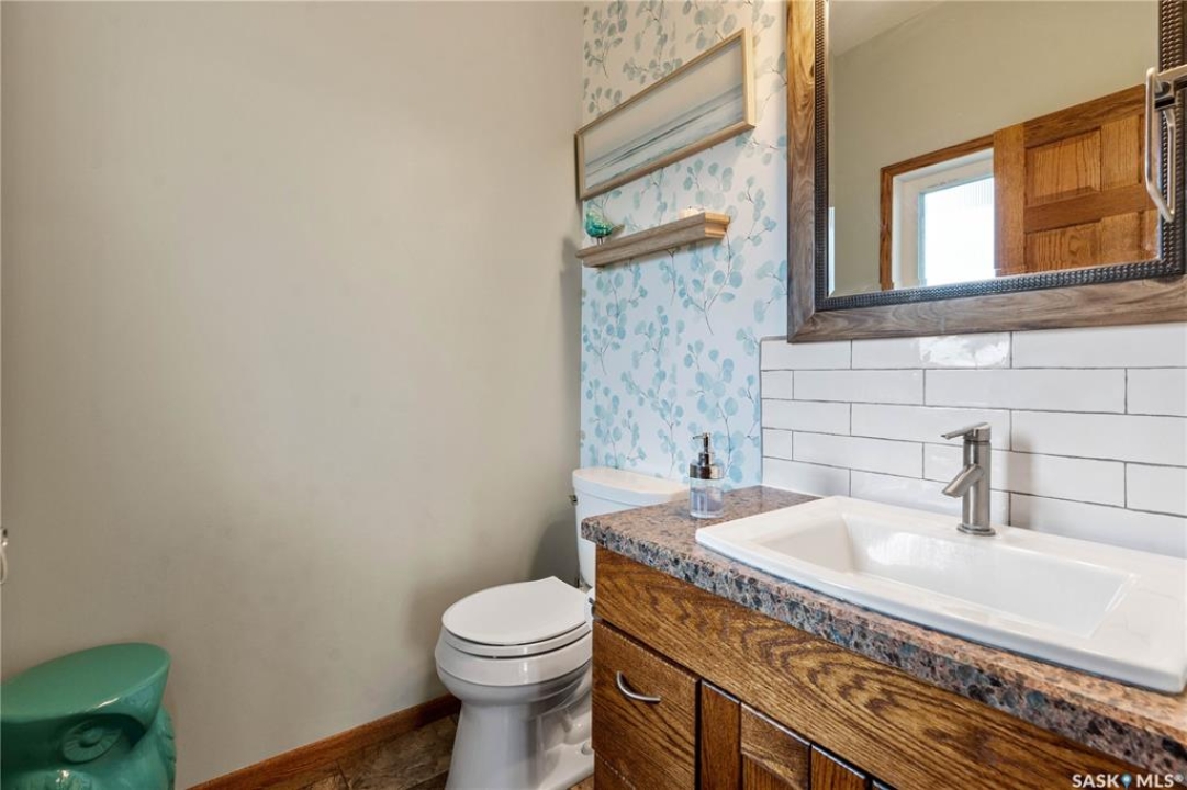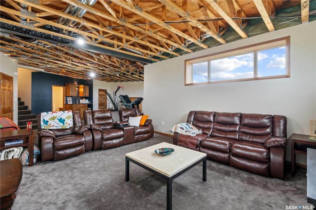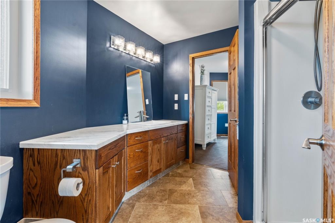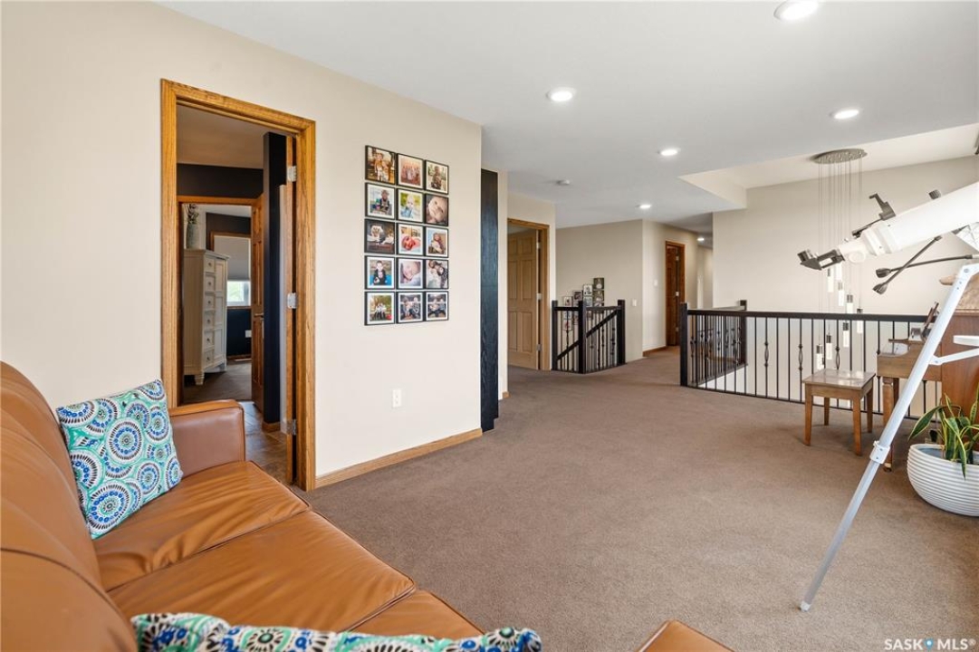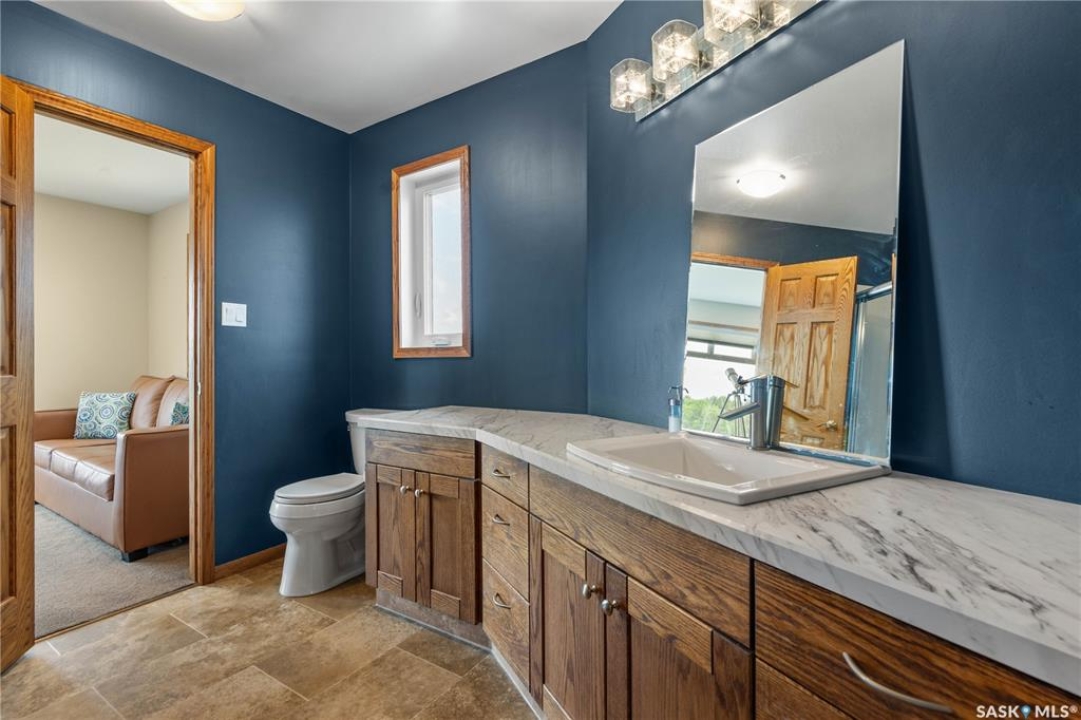 Welcome to your dream acreage! This gorgeous property offers 19.94 acres of meticulously maintained land. Whether you're looking for space, privacy, or a blend of agricultural and residential potential, this has it all. Step into the large, tiled front entry and feel right at home. Main floor showcases a spacious living room with massive windows and a striking stone fireplace, a formal dining area with rich hardwood floors, and a truly impressive kitchen. Designed for entertaining and family living, the kitchen features a large island with a second sink, stainless steel appliances, wall oven, tile backsplash, and abundant cabinetry. A convenient 2-piece bathroom also on the main level. Upstairs, double doors lead into the primary bedroom with a 3-piece ensuite featuring a stand-up shower, lots of counter space, and ample storage. You'll also find 5 more bedrooms, a 4-piece bathroom, a bonus room, a dedicated office, and laundry—all thoughtfully placed on the upper floor for comfort and functionality. The finished basement offers even more living space with a cozy family room, a recreation room currently used as a home gym, an additional 3-piece bathroom, utility room, 9 ft ceilings throughout and luxurious in-floor heating. The heated, insulated double attached garage also features in-floor heat—ideal for year-round use. There are two furnaces for the upstairs and main floor separately. A reverse osmosis system is included for the house tap. Iron filter/water softener system is in use. Property is professionally landscaped and offers an abundance of space for outdoor storage, gardening, or future development. Majority of open acres are currently rented to a local farmer. Beautifully treed backyard with the property line that extends beyond the trees. Bus comes to the front door to the wonderful K-12 school in Imperial! Land is located across from crown land/national wildlife refuge! If thinking of moving the home, sellers have the costs for that so please inquire.
