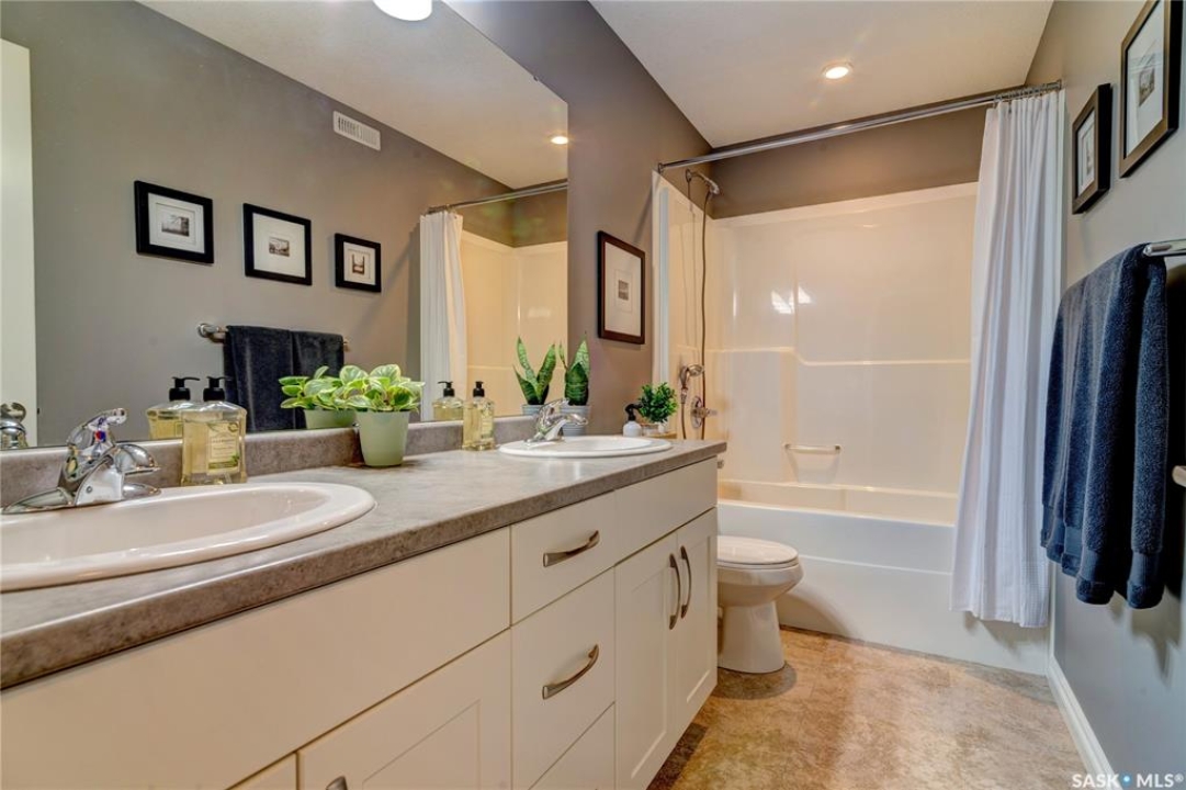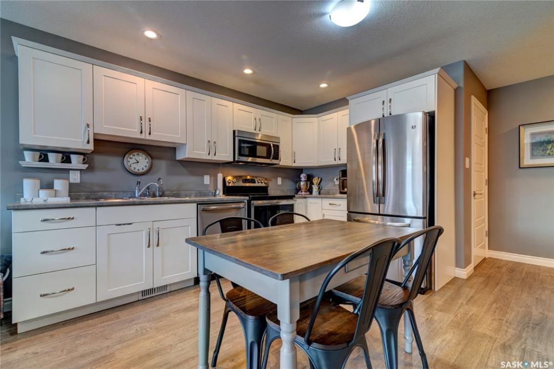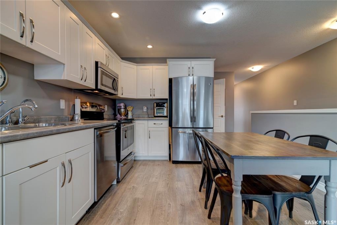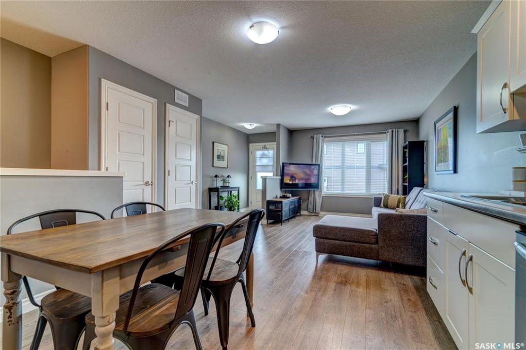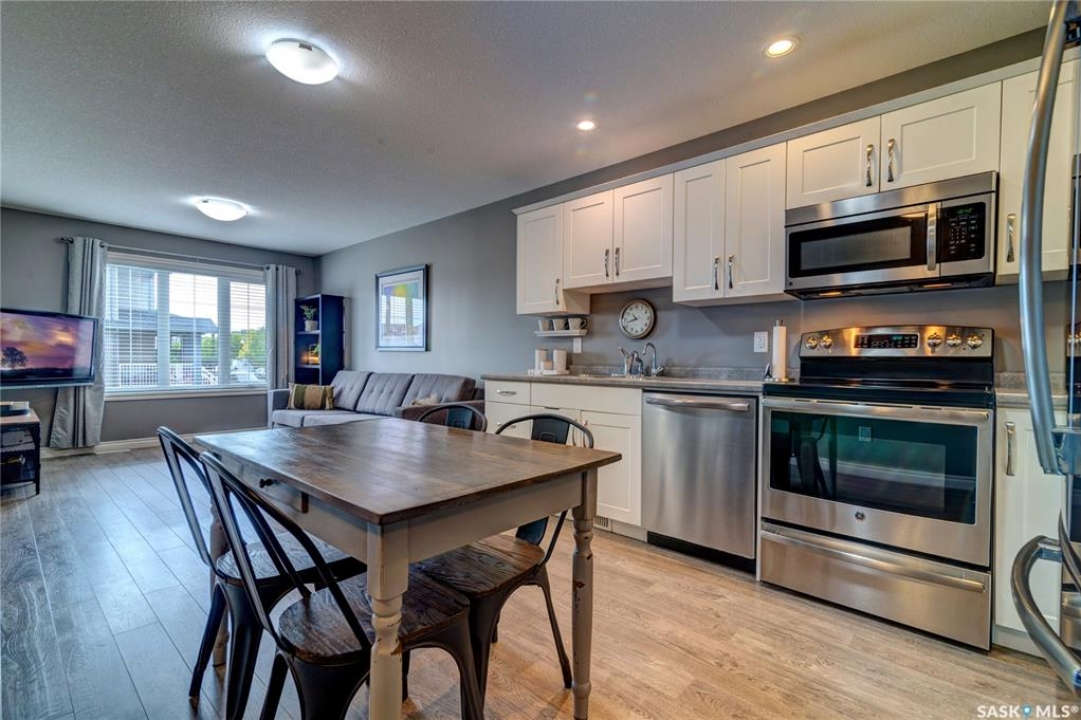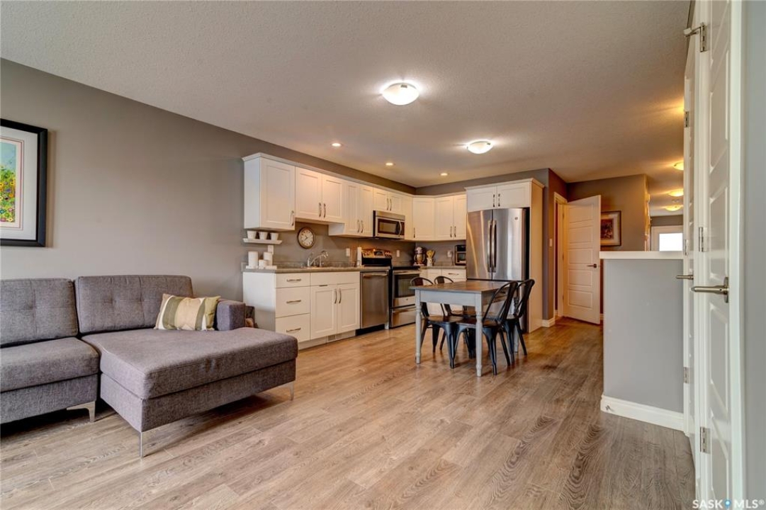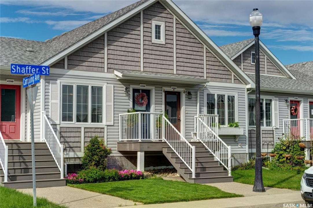 Welcome to 4396 Shaffer Street! This Reimer Built bungalow style townhouse is situated in the family friendly neighborhood of Harbour Landing, with an amazing location near south end amenities, restaurants, shopping, parks, trails & walking distance to the elementary school (École Harbour Landing Elementary/St Kateri Tekakwitha School). Featuring 1 bed up, 1 down as well as 2 baths, this 864 sq ft home is sure to impress! This unit welcomes you into a warm, clean & open concept floor plan with laminate flooring & large living room window allowing in nice natural light. The space incorporates modern, updated colors with a kitchen & dining space that feature lovely white cabinetry & plenty of space for your table & chairs. The stainless-steel appliances will remain with the home. A front coat closet is available for convenience as well as a pantry, perfect for tucking away those extra groceries. Down the hall you will find a large closet & your main floor laundry room. The full 4-pc bath comes with double sinks. Your spacious primary bedroom features a large walk-in closet! The back garden door leads you out into your yard where you can relax on your composite, maintenance free deck. From your yard is the added bonus of direct access to the single detached insulated 16 x 20 garage, with remote. The basement is fully developed with a large recreation area, storage space under the stairs, additional spacious bedroom & 2nd full bath. The utility room features extra storage as well. This well-maintained home truly is move in ready. It would be ideal for any first-time home buyer, young professionals or someone looking to downsize with its affordable & quality living with NO CONDO FEES! Additional value adds include: Central A/C, HE furnace, owned H2O heater, HRV System, 100 amp electrical panel , RI Central Vac, ICF Foundation & structured piles. This gorgeous move in ready home features a superb location & a perfect place to call home! Contact your local Realtor ® today!