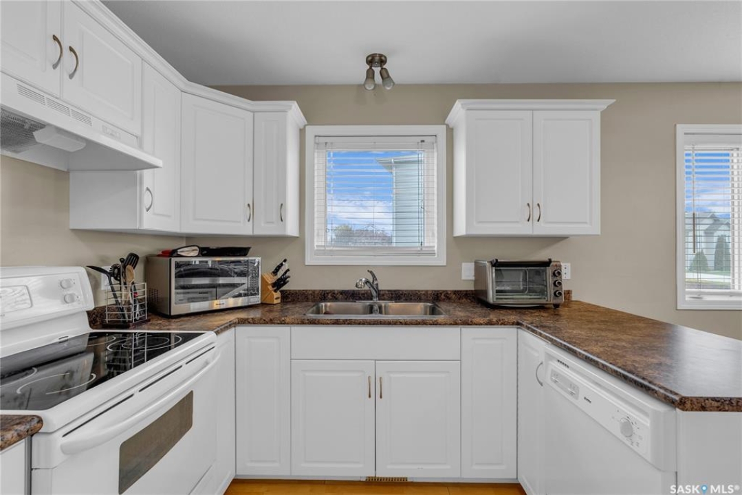 Welcome to 403 Rutherford Cres in Saskatoon's Sutherland community! This 1,278 sq ft 2 storey semi-detached home is fully developed and offers 4 bedrooms, 2 bathrooms, single detached garage and an open concept main floor. Other key features: all appliances, washer, dryer, central air conditioning, underground sprinklers, and is fully fenced. There is a walk way beside the lot and also no backing neighbours, so this yard is very private. Great location, close to University so would also make a great investment property or for the kids to go to school! Don't miss out!