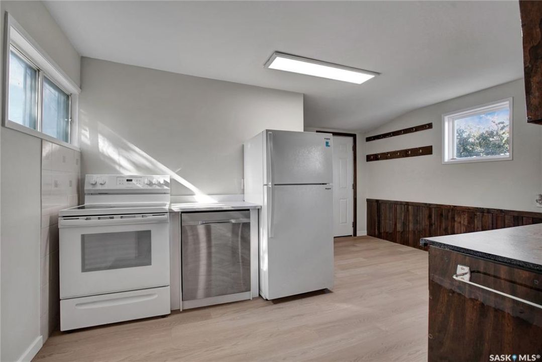 Welcome to Delisle! Just 25 minutes from Saskatoon, this charming town offers the best of small-town living with convenient city access. This well-kept 896 sq ft home sits on a generous 50' x 125' lot with plenty of parking. Inside you'll find 2 bedrooms and 1 bathroom, new vinyl plank flooring and many upgrades. Major updates include a new furnace, new water heater, and new shingles. The exterior has also been freshly updated with modern stone siding for great curb appeal. The plumbing and electrical were recently upgraded. Delisle is a vibrant community with so much to offer: an elementary and composite school, curling rink, library, sports arena, ball diamonds, senior's facility, café, gas station, pickleball and soccer facilities, golf course, and more. The nearby Agrium potash mine adds to the area's appeal for both work and lifestyle. Don't miss this opportunity—call today for more information!