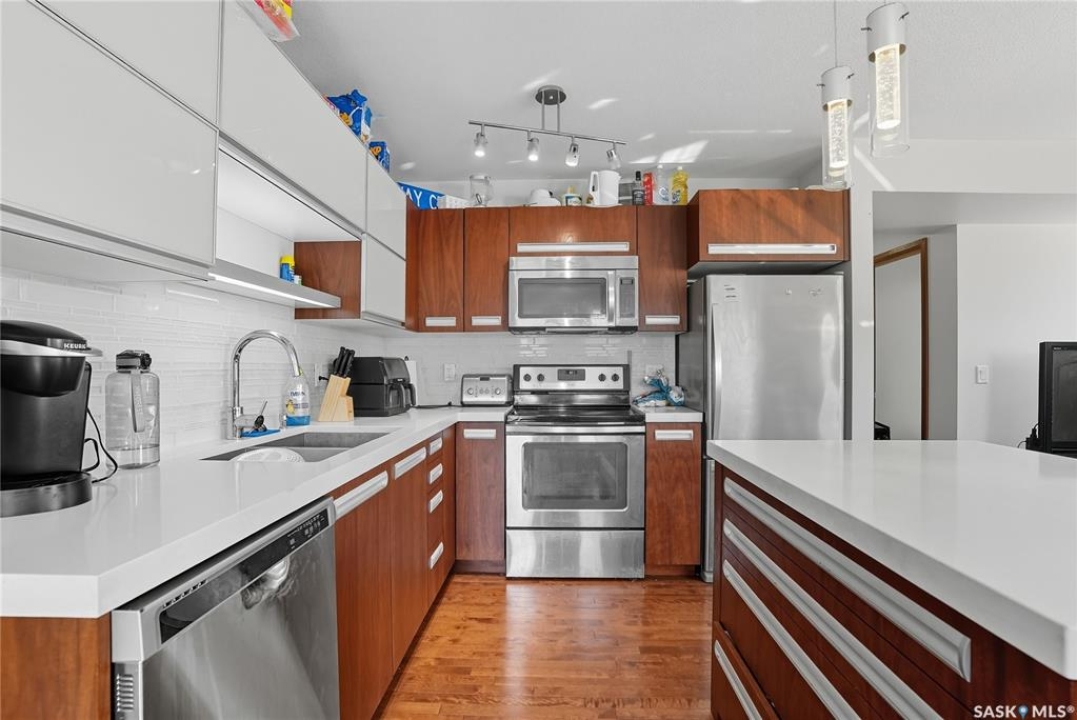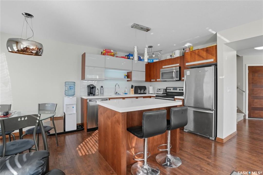 Bright days with additional windows and a little extra room thanks to being an end unit. The main floor features open-concept living with hardwood floors, a spacious living room and dining area, and a two-piece bath for guests. All three bathrooms have tiled floors, and the bedrooms and basement are carpeted. The kitchen includes stainless steel appliances, quartz counters, a white glass tiled backsplash, soft-close cabinetry, and plenty of storage. Upstairs has three bedrooms and a full bath, while the basement is finished with a large family room, a three-piece bathroom, and laundry. Extras include central air, central vac, a private patio, and a single attached garage with direct entry. Visitor parking is nearby, and the location puts you close to schools, shopping, amenities, and parks.
