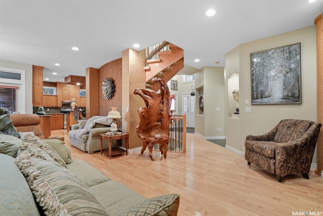Welcome to this immaculate two-story home in the distinguished community of Briarwood! This well maintained 2452 sq ft, corner l 2 Story greets you with beautiful, mature landscaping for stunning curb appeal! Stepping in through your foyer, you are met with warm hardwood flooring throughout the main level. Abundance of natural light. Formal dining comes first with a large front facing window, The kitchen is a showpiece, featuring carefully selected stainless steel appliances, quartz countertops, designer lighting, a corner walkthrough pantry to your dining room. Beautiful open staircase that is open to all three levels. Custom architectural glass throughout the home. Convenience of main floor laundry and 2pc bath that continues to the garage. Upstairs the primary bedroom offers a walk-in closet and a 5 piece ensuite to relax and rejuvenate, featuring oversized vanities with his and hers sinks and a jetted tub. Follow the modern spindle banister down to your fully finished basement, with 2 family rooms, one of them comes with a gas fireplace for those cozy evenings. A fourth bedroom, 3-pc bath and a large storage / utility room completes your basement! Private 3 seasoned sunroom opens to lush back yard. Additional features of this home include a double attached garage, A/C, underground sprinkler, central vac, and plenty of storage space throughout. Must see home, in desirable neighborhood located close to many amenities, parks, and quick access to Circle Drive.