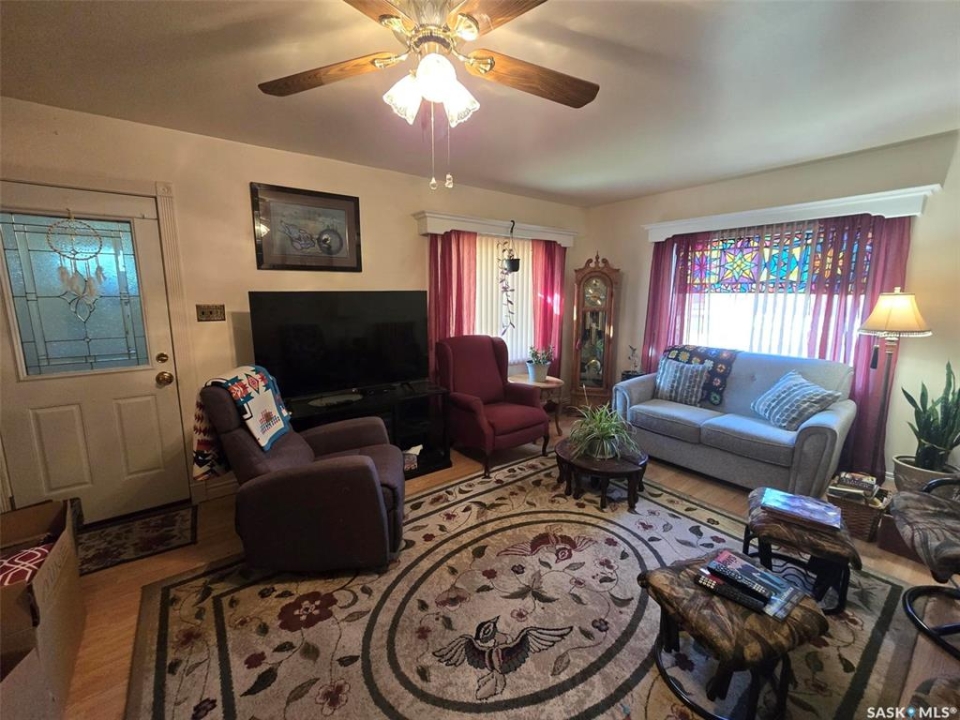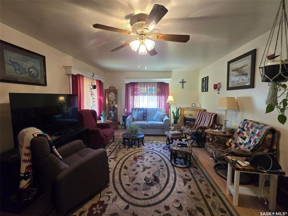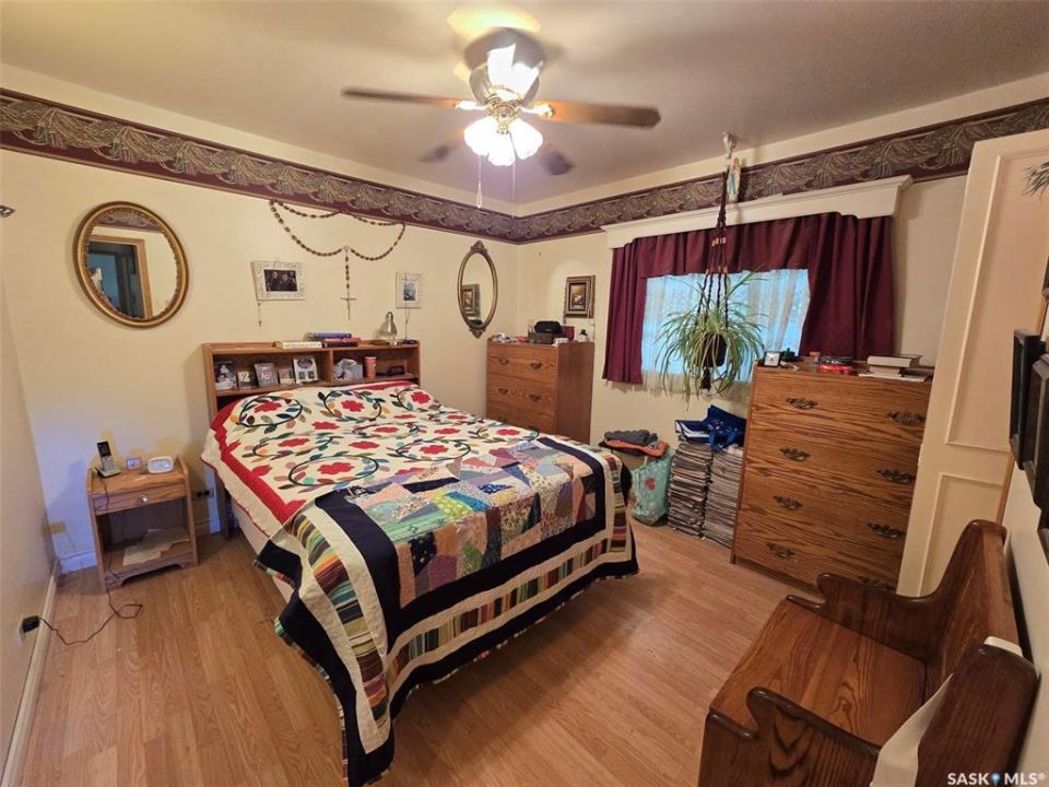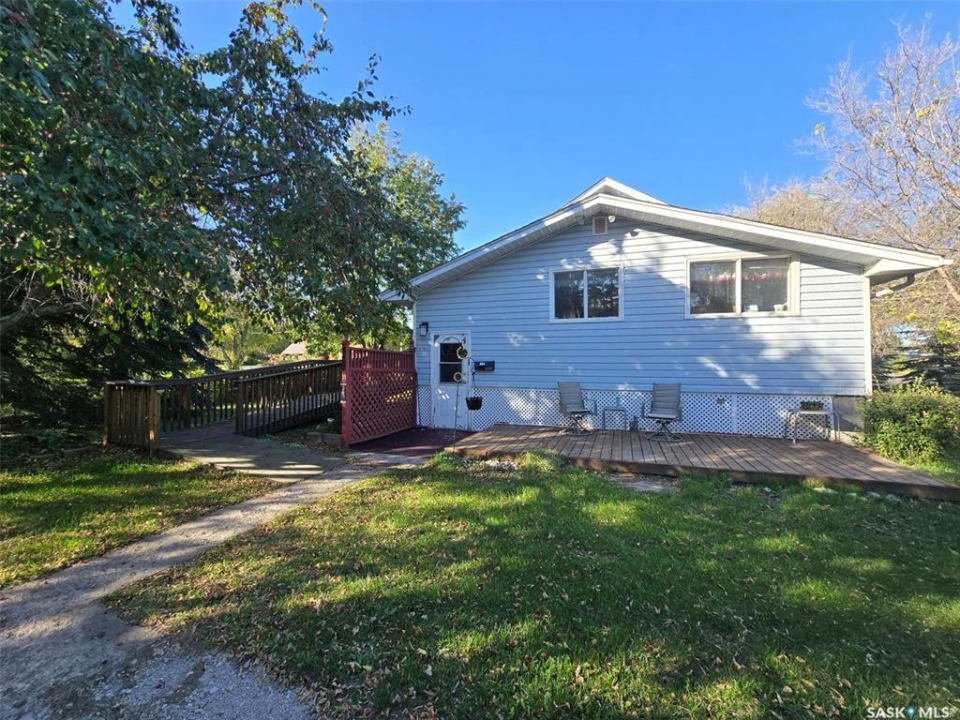 GRENFELL FAMILY HOME situated on a huge lot (132' x 132') completed with a double detached garage and heated work shop. This home has it all ...and at an affordable price. Lots of sq ft with a 1/2 storey and a finished basement. Enter the side door into a large landing, go down to what used to be a suite in the basement or step up to the unique main floor. Let's discover the main floor... find a laundry/ porch , a bright office space (could be a 4th bedroom by adding a door) then into the large farm style kitchen / dining area. Many counters and cabinets will provide you with storage and work space. Appliances included. The living room is next, a cozy space that comes with a corner electric fireplace. A front porch is located off this living area. Here there is a ramp from the outside , making it a wheel chair friendly home. The 2 bedrooms down the hall are spacious and separated by a 4 piece bath. Enter the second floor through a door in the hallway. The second level provides a place for 1 bedroom and a second room without a windwo , used as you desire. Basement will allow for extra living , storage with 1 office , a room ( could be the 5th bedroom with new window), a nook with kitchen sink (once used as a suite), a rec room, and a huge area (concrete floor) that would make the perfect games room. A sauna is a bonus space . The 40' x 22' detached garage has a 2 car bay and on the other side , a heated (wood stove) man cave, complete with shelving and work benches. You won't find a yard like this one, a complete square with lots of backyard and privacy. The home will be ready for a new family around the beginning of November. Book soon for a showing , this property will be a family favorite.