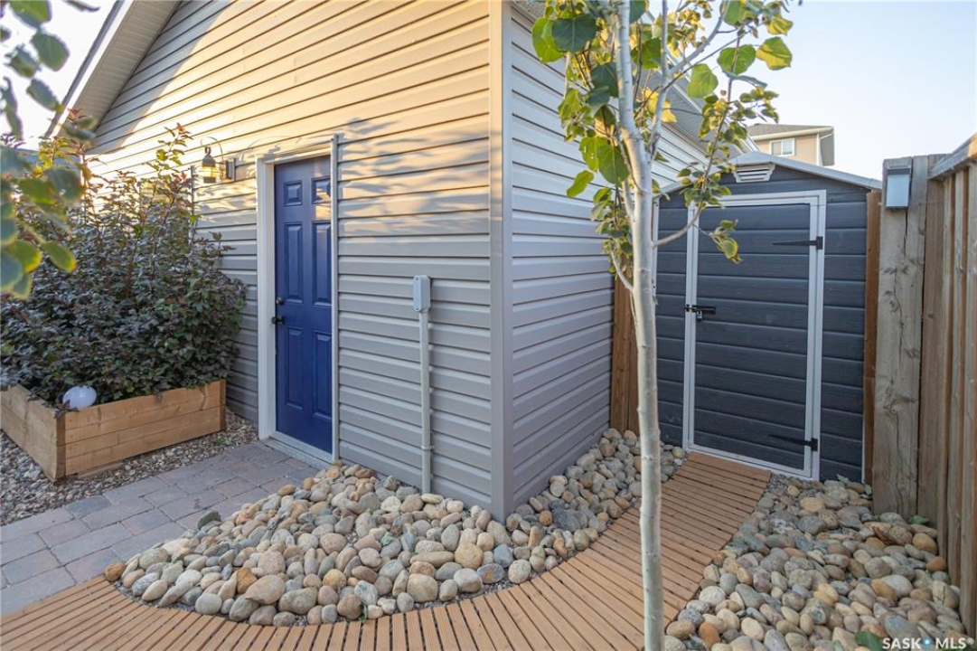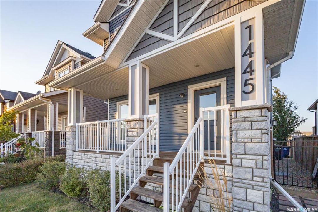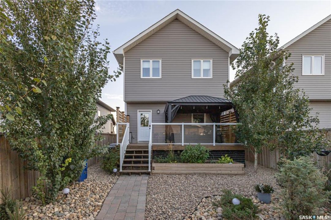Welcome to 1445 Besnard Drive built by Edison Homes in Martensville. This beautiful home an open concept main living area with laminate flooring, large kitchen with an abundance of counter space, pantry, large island and tile backsplash, complimented with quartz countertops throughout. The back entry has a mud room area and 2 piece bath. The dining room is an alcove style dining; and large walk in closet at the front door. The second level features a large primary bedroom with 4pc ensuite and a large walk in closet. Two additional bedrooms, a 4 piece bath and full laundry room completes the upper level. There is direct entry to the basement which has been developed as a "mother in law" suite with a kitchen, living room, laundry, bedroom and 4pc bathroom. This home has great street appeal featuring a craftsman style exterior with extensive stone accents and oversized front pillars, concrete front sidewalk with sod, a xeriscape back yard with large deck (gazebo & shed included), a double detached garage which is partially insulated and is wired and ready for heat & a 220 amp. This home is located within a short distance to the new elementary school. All appliances & window coverings included. Immediate possession preferred. Buyer/Buyer's agent to verify measurements. Call to book your viewing today.