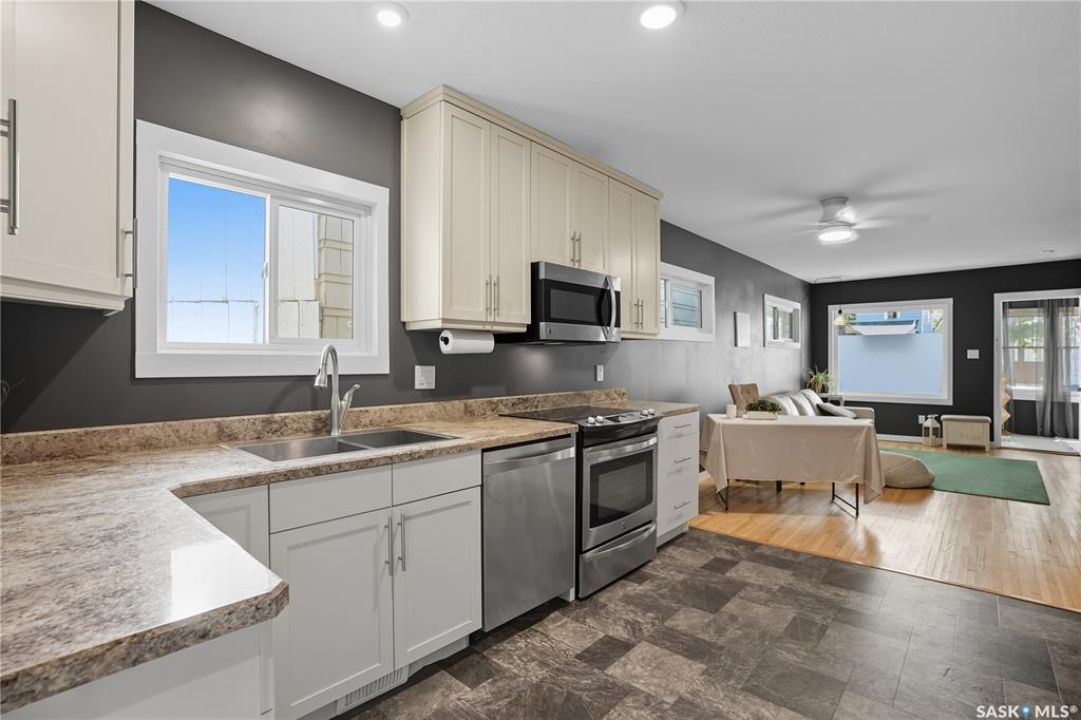 A Wonderful First-Time Buyer Opportunity! This inviting character home has been thoughtfully updated with many of the major improvements already taken care of. Recent upgrades include the sewer line replacement with a back-flow valve, a refreshed bathroom with stylish new flooring and even a laundry chute in the master bedroom — giving you peace of mind as you move in. Step through the bright and airy front porch, a cozy spot to enjoy sunny days with your morning coffee or an evening wind-down. Inside, you'll find a practical layout with modern appliances and plenty of potential to make the space your own. Out back, a heated and insulated double detached garage provides excellent year-round parking and storage, adding extra value and convenience. With its blend of charm, upgrades, and opportunity to personalize, this home is move-in ready and waiting for new owners to add their own finishing touches.