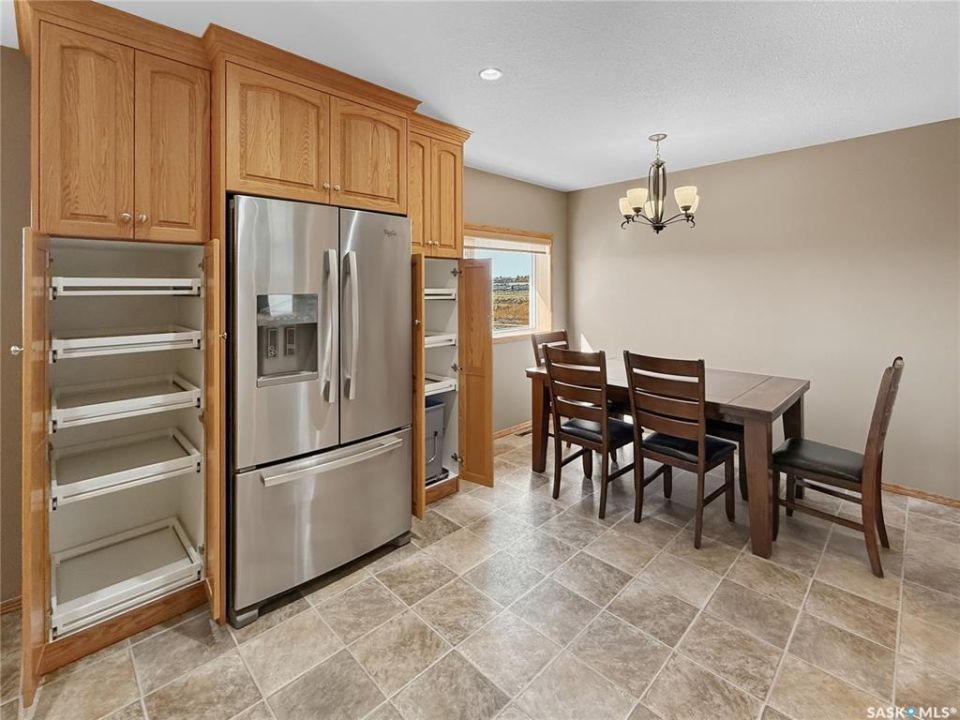 Discover the perfect blend of city convenience & country charm in this 1,342 sq. ft. bungalow on a sprawling 100' x 130' double lot in Swift Current's desirable southwest area. Backing onto open pasture, it offers the feel of acreage living—right on the edge of the city! Originally built in 1982 & moved into the city on a new foundation in 2006, this home saw extensive updates then & continues to shine today. Extremely well built W super-thick exterior walls for insulation & sound barrier, it's been upgraded w Hardie Board siding accented by stone, PVC windows, brand-new shingles (2024), & a spacious dble concrete drive. Step inside to a sunken living room w a gas fireplace, open to the kitchen/dining area showcasing abundant cabinetry, pull-out shelving, stainless steel appliances (incl. new stove 2023), & prairie views. The main floor offers 3 bedrooms, including a large primary w double closets, 4-pc bath, & 2-pc laundry w a sink. A large mudroom leads to the backyard oasis: fully fenced w a composite deck, natural gas BBQ hookups on both sides, manicured lawn front & back w UG sprinklers on timers, natural gas firepit, xeriscaping, shed, & a 2023 hot tub (negotiable). The lower level features an oversized family/rec room w an electric fireplace, a spacious bedroom, & a luxurious 4-pc bath w air-jetted soaker tub & dble shower. A huge storage room boasts an expansive bank of cabinets (incl. large gun cabinet), plus a mechanical room loaded w upgrades: air exchanger, water softener, carbon filter, RO system, central vac & sump pump. The oversized dble heated garage/mancave (gas heat, added within 5 yrs) includes a workbench nook. Tons of off-street parking including RV parking. Quick possession available—this move-in-ready gem is packed w value!