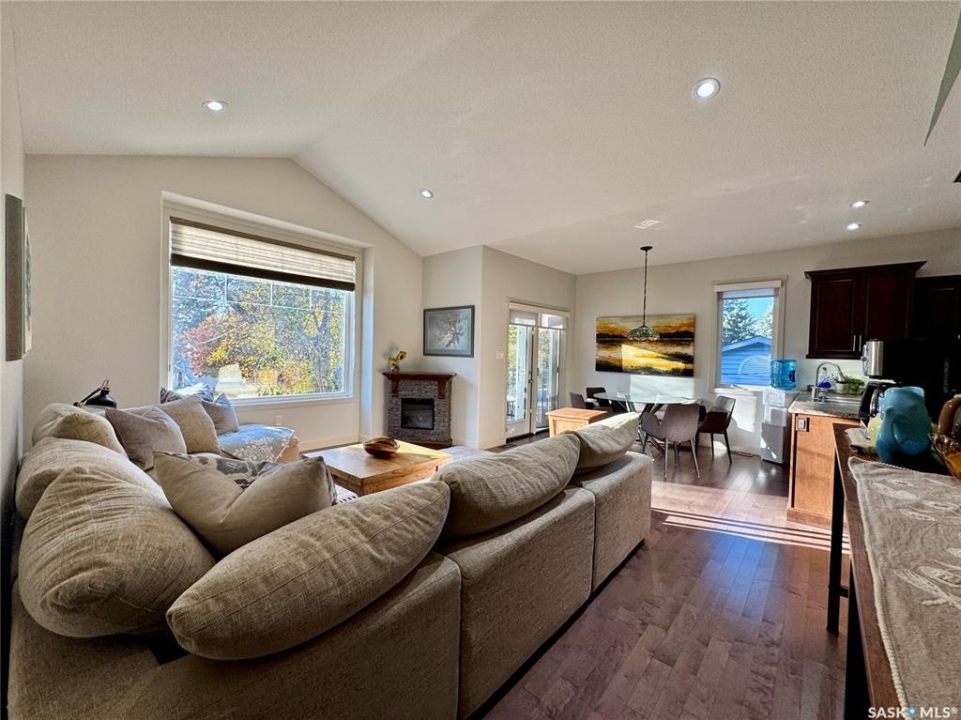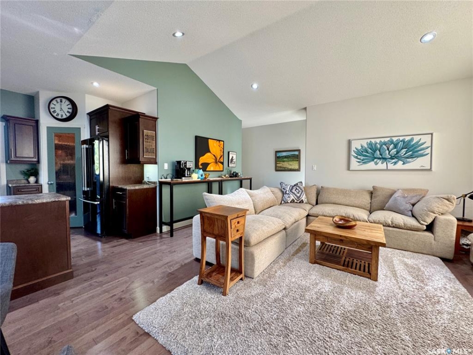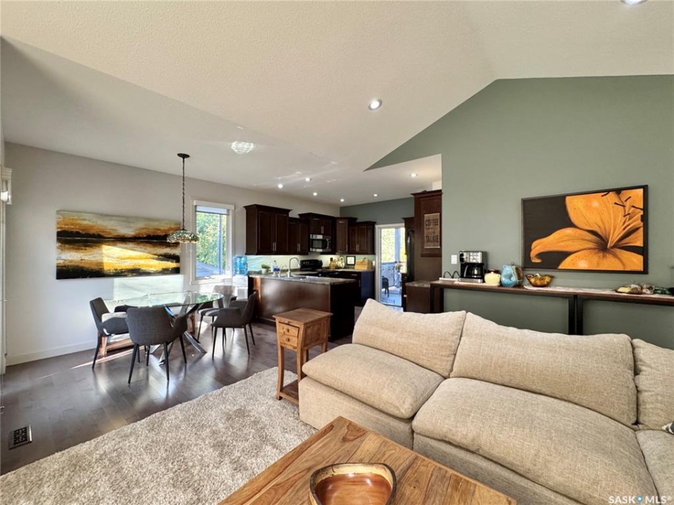 Built in 2013, this home stands as a testament to craftsmanship and vision. From the street, its presence has turned heads for years—not because it fits the expected mold, but because it surpasses it in all the right ways. Every choice in its construction was intentional, blending comfort, efficiency, and elegance into one seamless package. Step inside at grade level, greeted by the warmth of in-floor heating throughout the main floor—including the garage, porches, and bathrooms. Gone are the concerns of dark or damp basements; this slab-on-grade design offers a bright, open environment where every square foot feels usable and inviting. Spanning 2,155 sq ft, the home offers three bedrooms and three bathrooms, thoughtfully arranged to balance family life with opportunities for entertaining. The main living space is crowned by soaring vaulted ceilings and cascades of natural light through expansive windows. Hardwood floors add warmth as the kitchen, dining, and living areas flow together, making it easy to host everything from casual coffee to full family gatherings. Three decks extend your living space outdoors—two balconies capture both sunrises in the east and sunsets in the west. The primary suite is a retreat with a walk-in closet and five-piece ensuite featuring a jet tub, separate shower, and double sinks—designed with equal parts function and indulgence. The lower den offers a cozy spot for family movie nights, while the private backyard completes the experience. A maintenance-free PVC fence encloses a firepit area, storage sheds, and a double swing gate for camper or boat storage. This is a home not just built, but curated—every feature chosen with intention, every detail adding up to something greater than the sum of its parts. If you've been waiting for a property that blends luxury, practicality, and timeless design, 203 Fifth Avenue N delivers.
