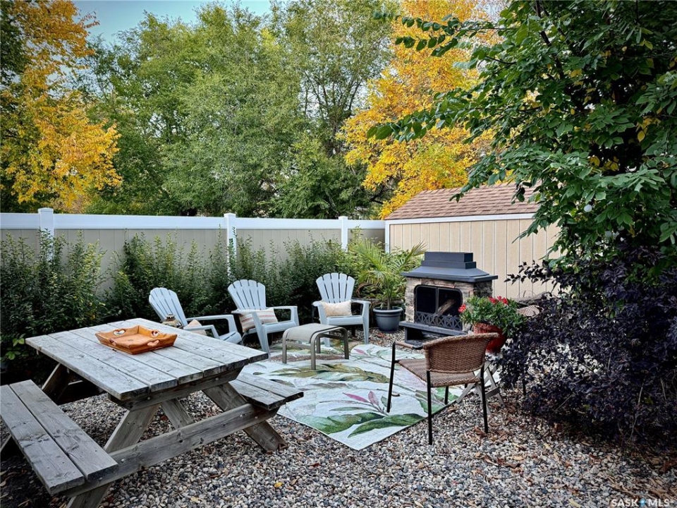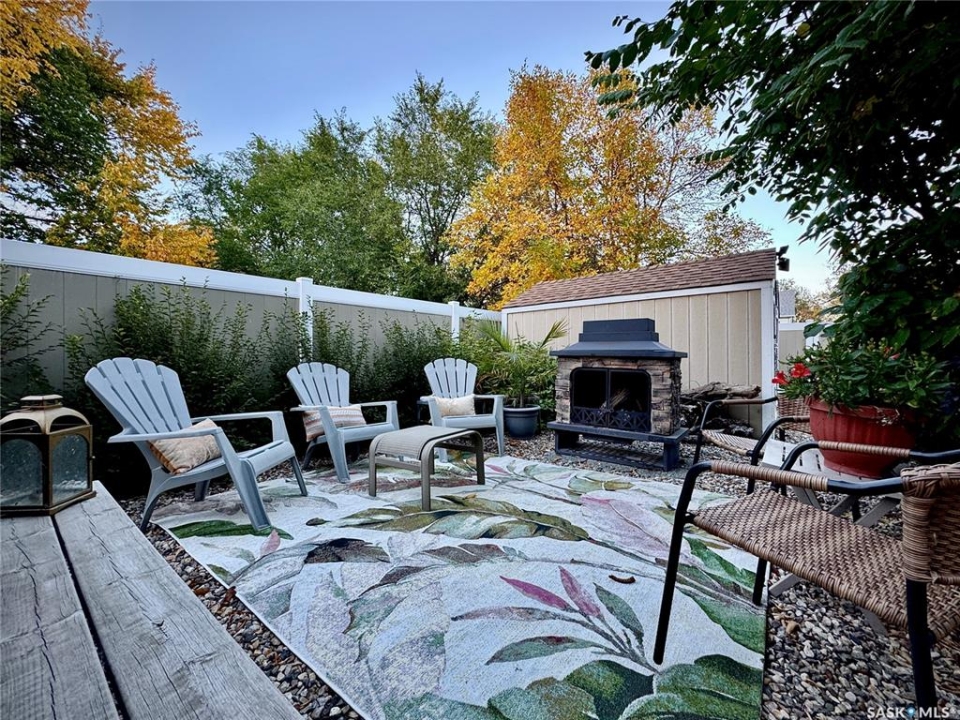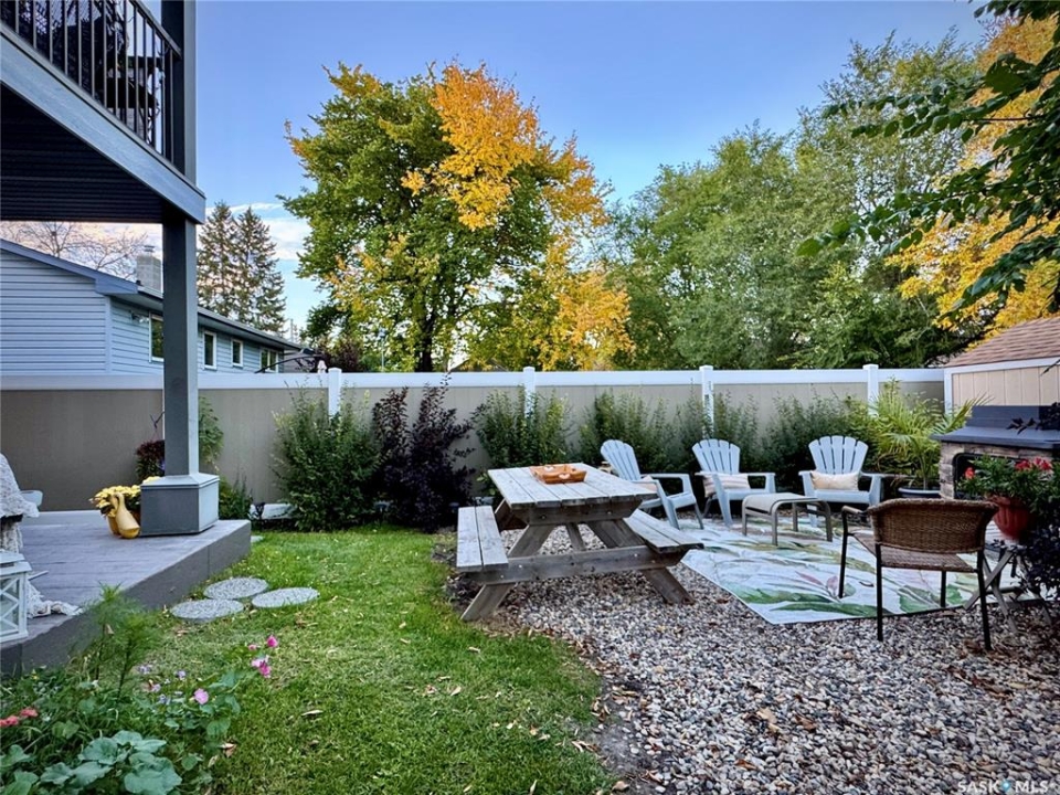 Outdoor: Balcony, Deck, Fenced, Firepit, Lawn Front, Trees/shrubs