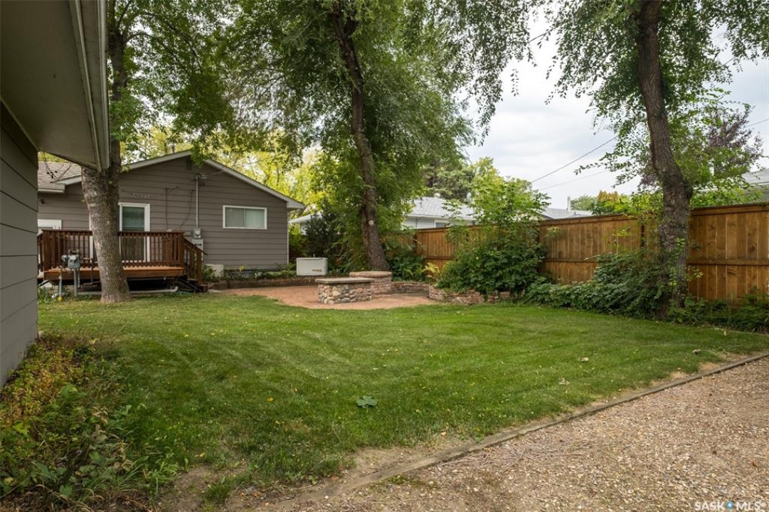 Outdoor: Deck, Fenced, Firepit, Lawn Back, Lawn Front, Patio, Trees/shrubs