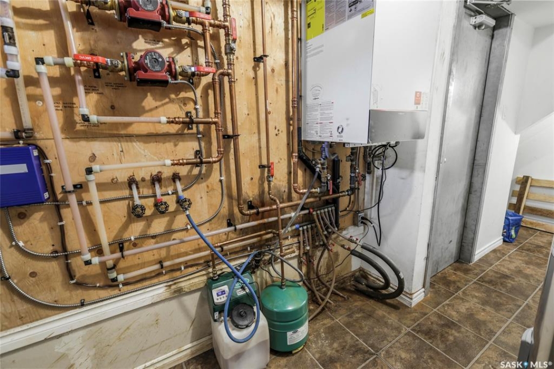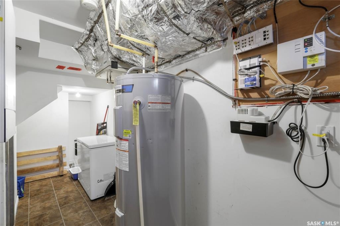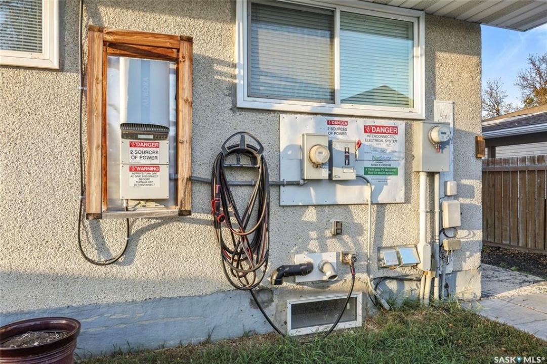 Step into fantastic investment opportunity in Regina's highly desirable Glencairn community with self contained regulation basement suite, in-floor heat in both units and solar panels to save on that electric bill. The well-appointed upper unit features an open concept living area with generous sized living room connected to the kitchen and dining area. Two good sized bedrooms, 1.5 bathrooms up and a spacious laundry/storage room complete the main floor. The self-contained basement suite boasts a separate entrance and large windows, featuring one bedroom with walk-in closet, one bathroom, laundry/mechanical room and a substantial open concept living space,. The back yard features a gazebo and two large electrified storage sheds. One of the standout features of this property is its low utility costs, attributed to the installed solar PV modules and a thoughtfully designed mechanical system. This not only enhances the appeal for potential tenants but also positions the property as a sustainable and economically attractive feature as a personal residence and/or rental property. Shingles updated in 2020 and new boiler system in 2022. Don't miss this rare opportunity to invest in a property that combines modern amenities with energy efficiency in a sought-after neighborhood.