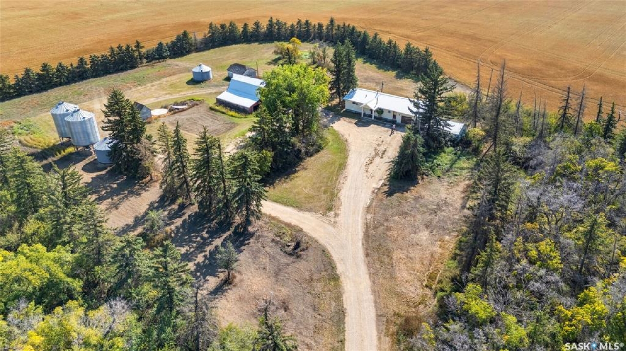 Are you looking for an acreage to call your own? This beautifully treed 10 acres is just an 1/8th of a mile off pavement but feels very private due to all the trees. The bungalow style home boasts just under 1,300 sq.ft. plus an oversized single attached garage! From your attached garage you head inside to your large mudroom complete with a wash sink! From there you head into your open concept kitchen / dining room. The spacious U-shaped kitchen boasts lots of cabinets and counter space with beautiful views of your yard. Next we find a huge living room with large windows giving lots of natural light - the perfect space for the whole family or for entertaining. Down the hall we find a beautifully updated 4 piece bathroom and a large primary bedroom boasting both "his and hers" closets. Heading downstairs we find a large family room - great for the kids. A good sized bedroom with a walk-in closet and 4 piece ensuite. Finally there is a large storage, laundry and utility space! Heading outside we find so many mature trees providing great shelter. There are 2 more oversized single car garages (one is 18 x 20) - one is not in great shape. There is also a beautiful old barn that is 26' x 60' plus lean-too. Whether you are just looking for a quieter lifestyle, to have a hobby farm or to raise your kids outside of town this could be a great option. Located just minutes from Assiniboia! Reach out today to book your showing!