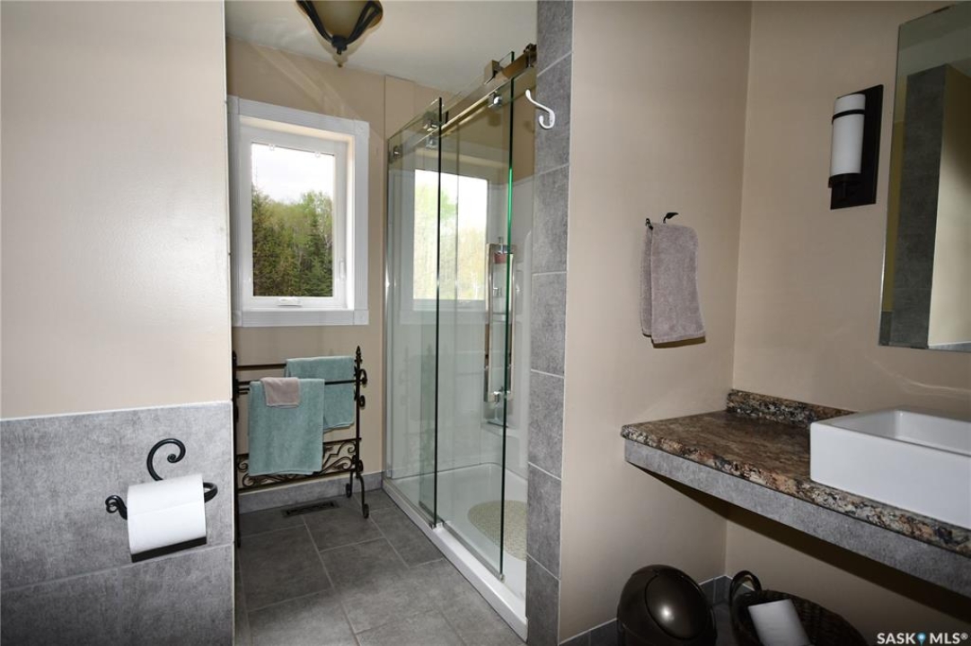 Expansive ranch-style home boasting over 4,500 sq. ft. on the main level, featuring 5 bedrooms—each with its own ensuite bathroom—plus 2 additional bathrooms. This charming home includes a luxurious chef's kitchen and an 800 sq. ft. suite of equal elegance. The original home was built in 1989, with seamless additions of 2,000 sq. ft. in 2010 and another 1,100 sq. ft. in 2022. Nestled amidst serene forest surroundings, this retreat sits just 1.8 km from pavement on 154 acres, close to lakes, numerous recreational attractions, and the vibrant resort town of Big River. A stone fireplace warms up to 2,000 sq. ft., complemented by wood and propane furnaces, with Generac power backup in place. Whether for a large family, a business opportunity—which the current owners have established as an income producing Bed and Breakfast—or a personal sanctuary, this home fulfills every need. The open basement awaits minimal finishing. The 800 sq. ft. suite offers an aging-in-place design with double vanity sinks, an age-friendly shower and toilet, laundry facilities, a kitchenette, and a scenic backyard view. Covered decks at the front and back enhance entertaining possibilities, while a water filtration system ensures pristine drinking water. The chef's dream kitchen boasts double ovens, ample fridge and freezer space, expansive countertops, and abundant storage, complemented by outdoor perennials, fruit trees, perennial berries and vegetable garden. Details regarding the sturdy construction and excellent insulation—as well as outbuildings (24'X32', 20'X20', 8'X8', 12'X26') —are available upon request for serious, pre-qualified buyers. Viewings require reasonable advance notice and promise to impress!