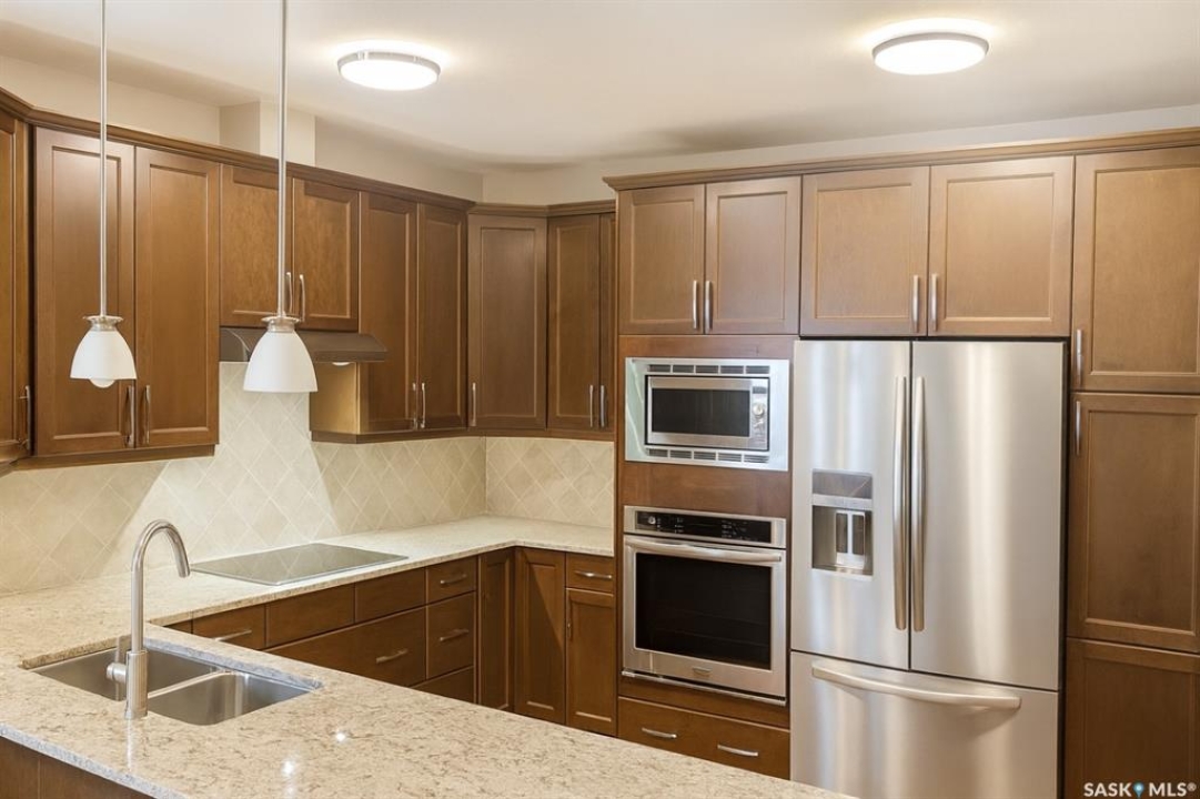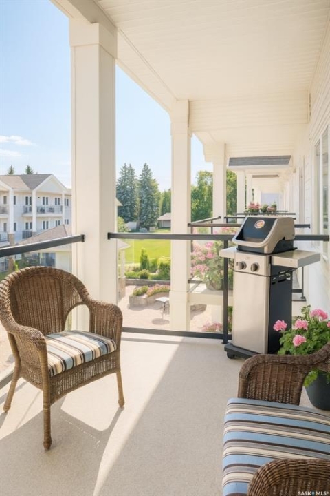Welcome to 313 Churchill Gardens — the most desirable unit in Saskatoon's most sought-after condominium community. This bright and beautifully maintained home offers the perfect retirement lifestyle, combining comfort, convenience, and community. Located on the third floor with prime access to the elevator and just steps from the multi-purpose room, this spacious one-bedroom plus large den, two-bathroom condo features a thoughtful layout that feels both functional and inviting. The open kitchen and dining area are ideal for everyday living and entertaining, while the living room extends onto a private deck that opens directly onto the peaceful interior garden courtyard — a rare and highly valued feature. The primary bedroom includes a walk-thru closet and ensuite bath, complemented by a second full bathroom for guests. A heated underground parking stall is also included for year-round comfort. Churchill Gardens is known as one of Saskatoon's best-managed and most welcoming condominium communities. Residents enjoy a games room, fitness and wellness spaces, beautifully landscaped gardens, and inviting social areas designed for connection and relaxation. The building is quiet, secure, and truly maintenance-free, offering peace of mind and a sense of belonging. Perfectly situated, the location offers easy access to 8th Street, Circle Drive, shopping, dining, and medical services, making everyday errands simple and stress-free. Whether you're moving in off the farm or downsizing from a house in Saskatoon, this home is designed for those ready to enjoy a vibrant, maintenance-free lifestyle. Churchill Gardens is Saskatoon's hidden gem — and this is your rare opportunity to own its best unit.