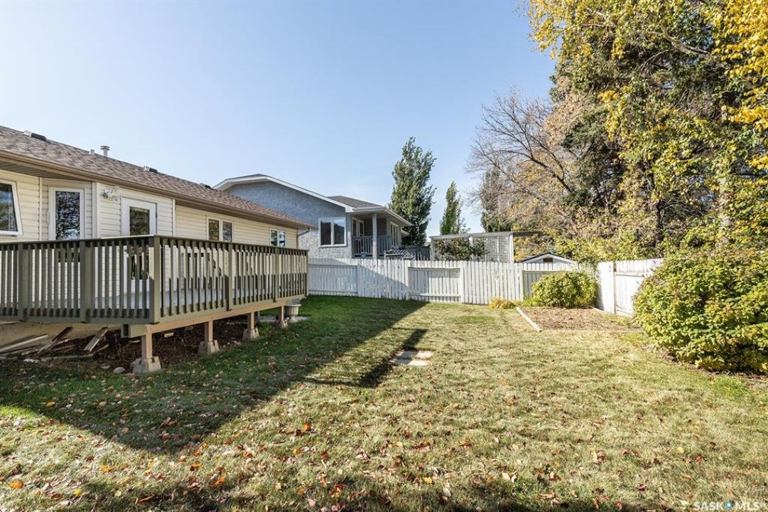 Outdoor: Deck, Fenced, Garden Area, Lawn Back, Lawn Front, Trees/shrubs