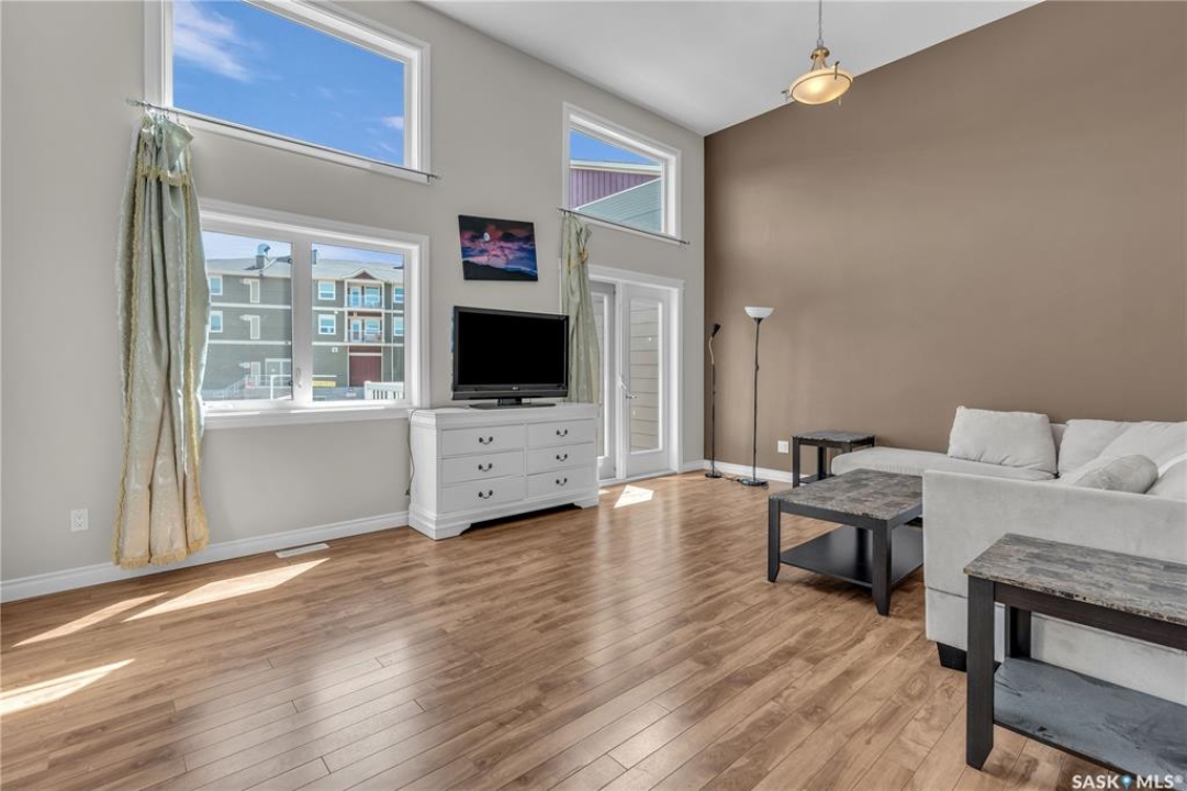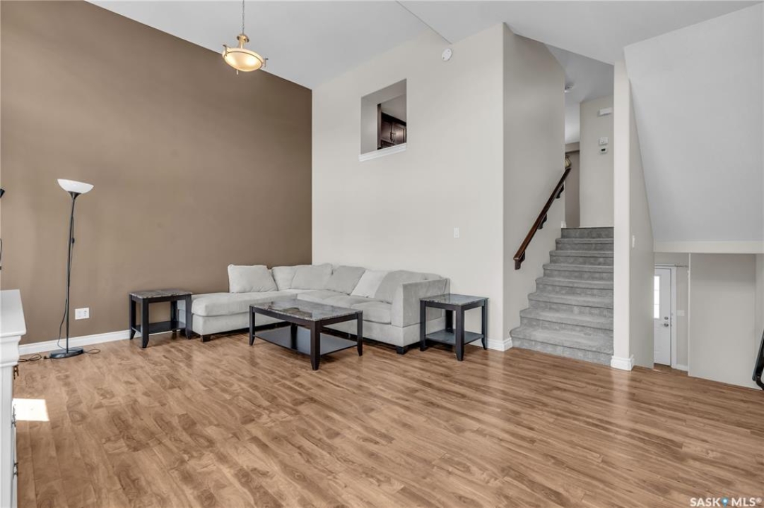 A Beautiful high-end townhouse for sale in sought-after Stonebridge! This stunning property offers 3 bedrooms, 4 bathrooms, and 1,467 sqft of fully developed living space, this well-maintained home is move-in ready and perfect for families or professionals. From the moment you enter the spacious front foyer, you'll be impressed by the thoughtful layout and natural light. The main level features a stunning, sunlit living room with soaring 12'6" ceilings, large windows, and patio doors that open to your private balcony—an ideal spot to entertain or enjoy your morning coffee while watching the sunrise. The second level showcases a stylish kitchen and dining area, complete with rich espresso cabinetry, stainless steel appliances, a tile backsplash, and a convenient 2-piece powder room for guests. Upstairs on the third level, you'll find all three bedrooms, including a generous primary suite with a walk-in closet and a 4-piece en-suite. An additional 4-piece bathroom completes this level. In the basement level, you will a family room with another 4-piece bathroom for your additional living space. The utility room and a storage room also locate on this level. Don't miss the video tour on YouTube, and contact your local Saskatoon REALTOR ® today to schedule a private showing!