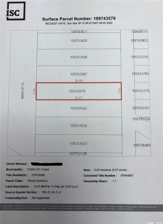 Fantastic opportunity to build your business in Ituna. High profile location on main street. 5 lots consisting of 16,250 sqft with great exposure and access. Lots 5-9 are being sold as one package deal.