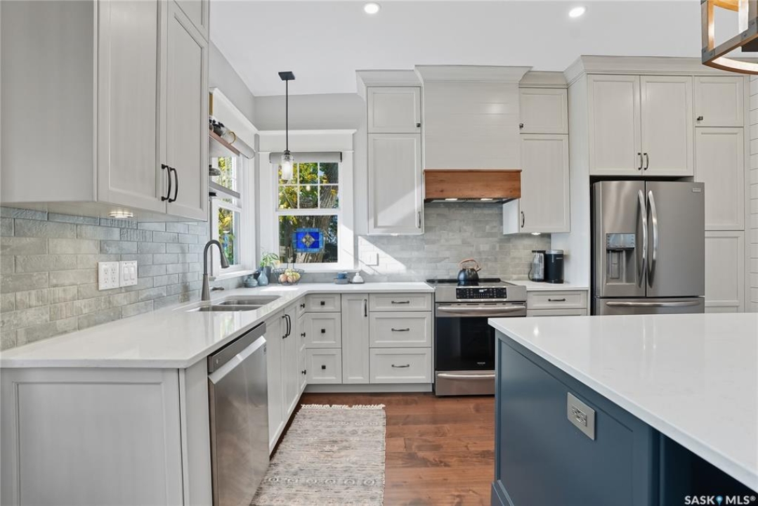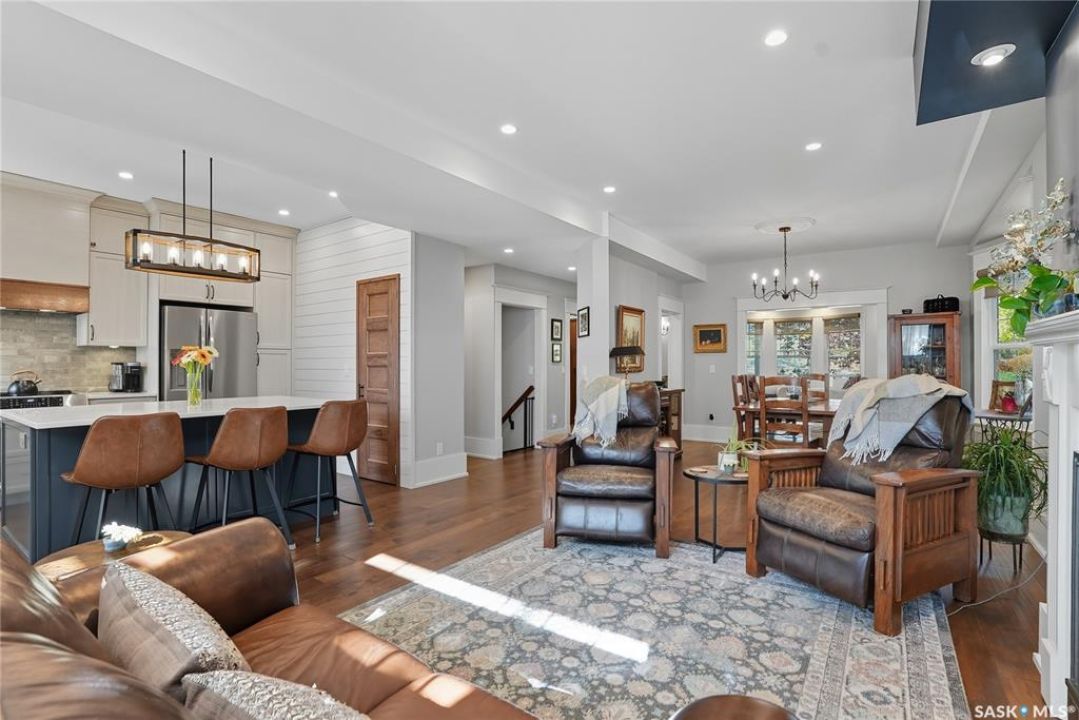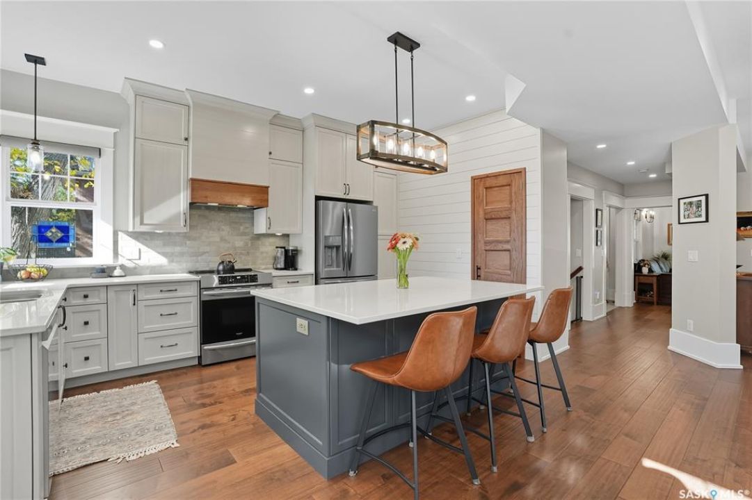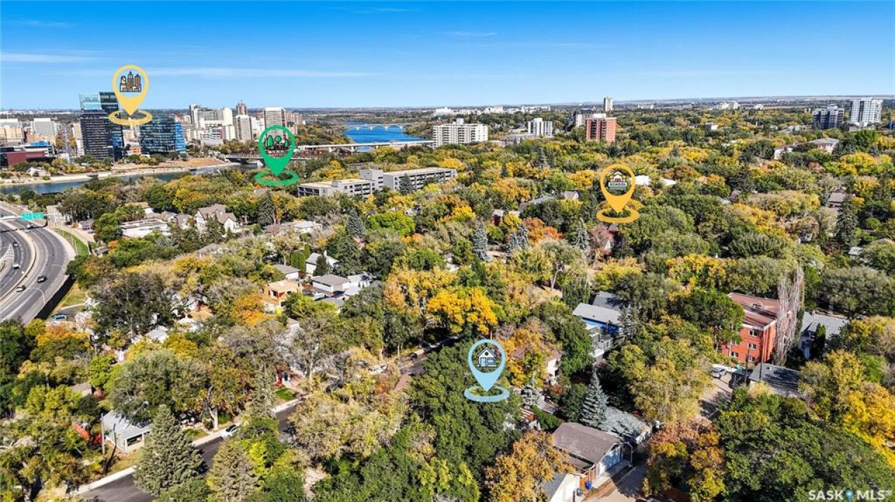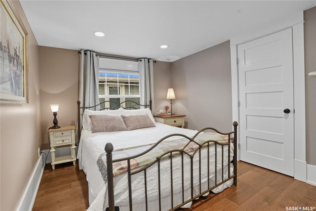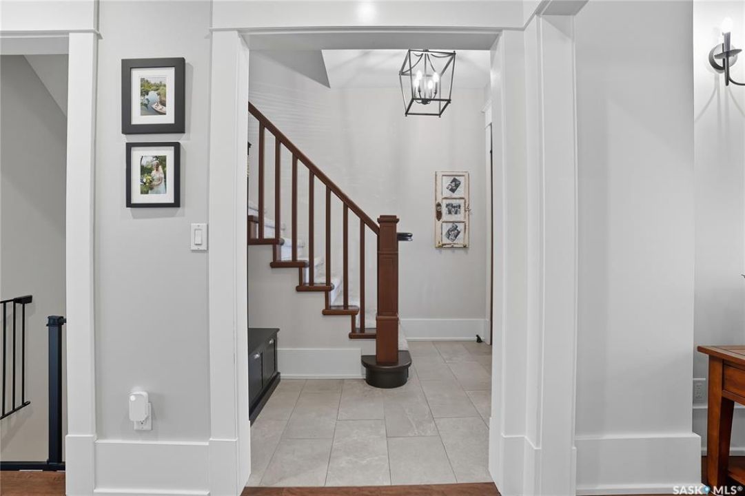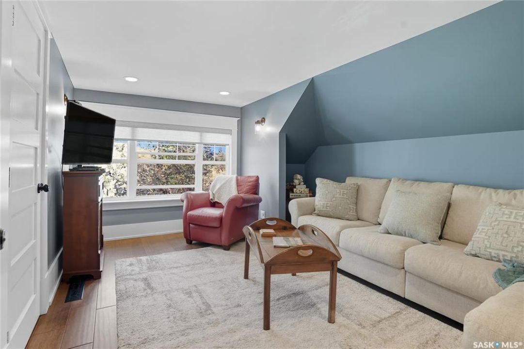THANKSGIVING OPEN HOUSE! SATURDAY 1:00PM-2:30PM. This stunning 2-storey, 2,273 sq. ft. home is located in the highly desirable Nutana neighborhood and has been thoughtfully transformed with extensive renovations. The main floor features a completely updated custom kitchen with quartz countertops, a spacious island with double-sided storage, a custom pantry door, matching mudroom door, floating shelves, and brand-new appliances. Gorgeous hardwood floors flow throughout the main and upper levels. The living room, adjacent to the kitchen, boasts a cozy gas fireplace, while the family room, dining room, and a convenient 2-piece bathroom complete the main level. Upstairs, you'll find three bedrooms, including a remodeled primary ensuite with a luxurious walk in shower with bench, heated electric floors, updated vanity, all-new fixtures plus heated floors, an updated 4-piece bathroom, a convenient second-floor laundry room with new cabinets and countertops, and a charming sitting/reading nook. The lower level offers ample space for entertainment and hobbies with a theater room, rec room, bedroom, 4-piece bathroom, work/craft room with laundry, and a wine room. Outside, enjoy a serene retreat with a pergola on the deck, beautiful perennials, and meticulously landscaped grounds. The fully insulated and heated double detached garage adds the perfect finishing touch. Other notable features and renovations since 2022: New gas furnace (2022), all interior and exterior updated light fixtures, hardwoods and tile flooring on main and upper, window treatment on main and upper, new paint throughout, carpet on both stairs and lower level theater room, bedroom, hot tub hookup and cement pad. There are heated floors in the kitchen, mudroom and front entrance with boiler heat. With so many thoughtful updates and high-end finishes throughout, this home is truly move-in ready.