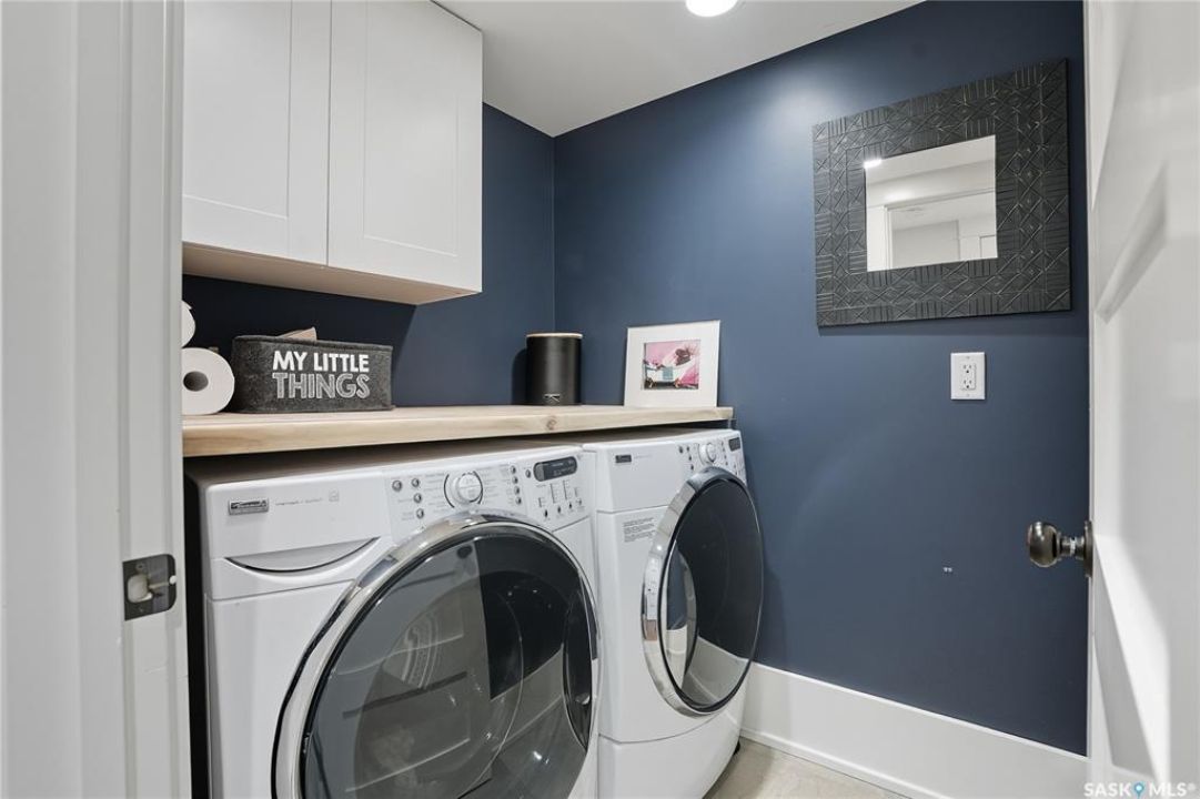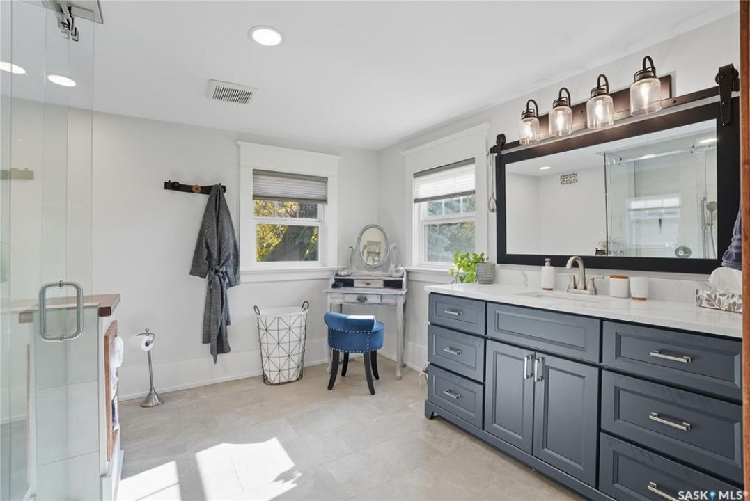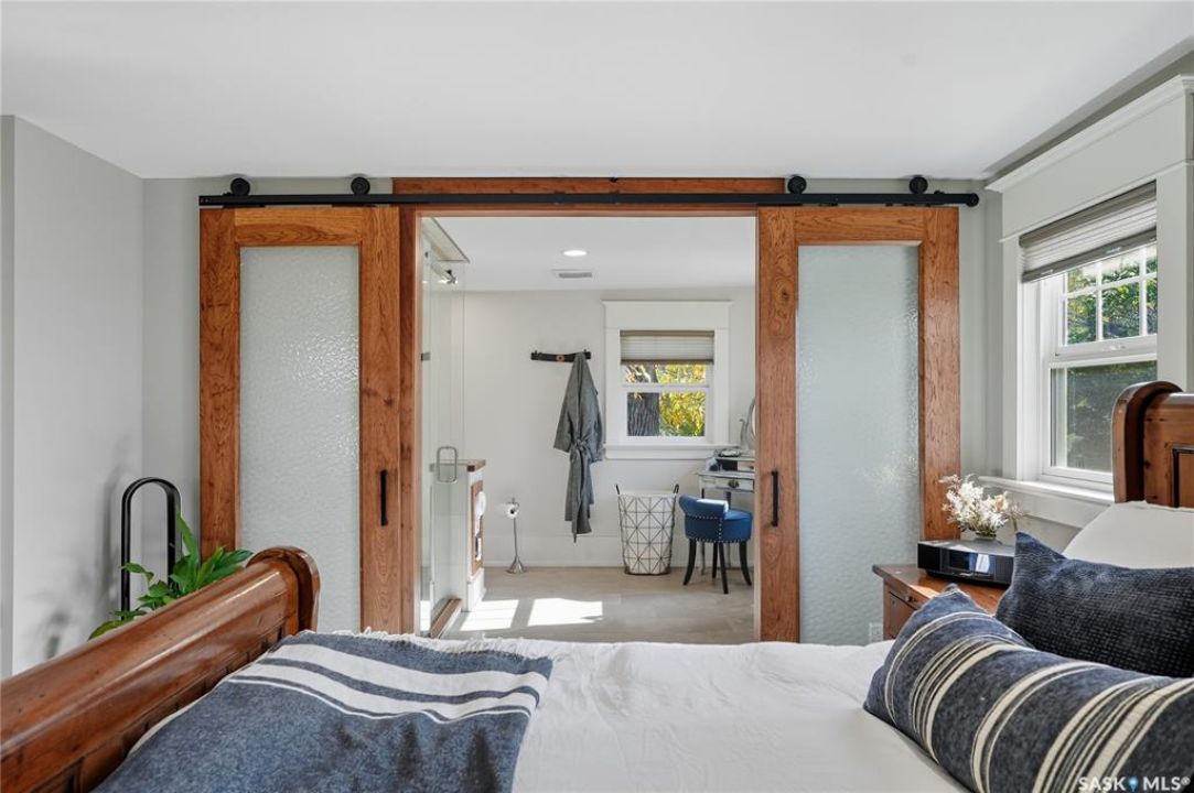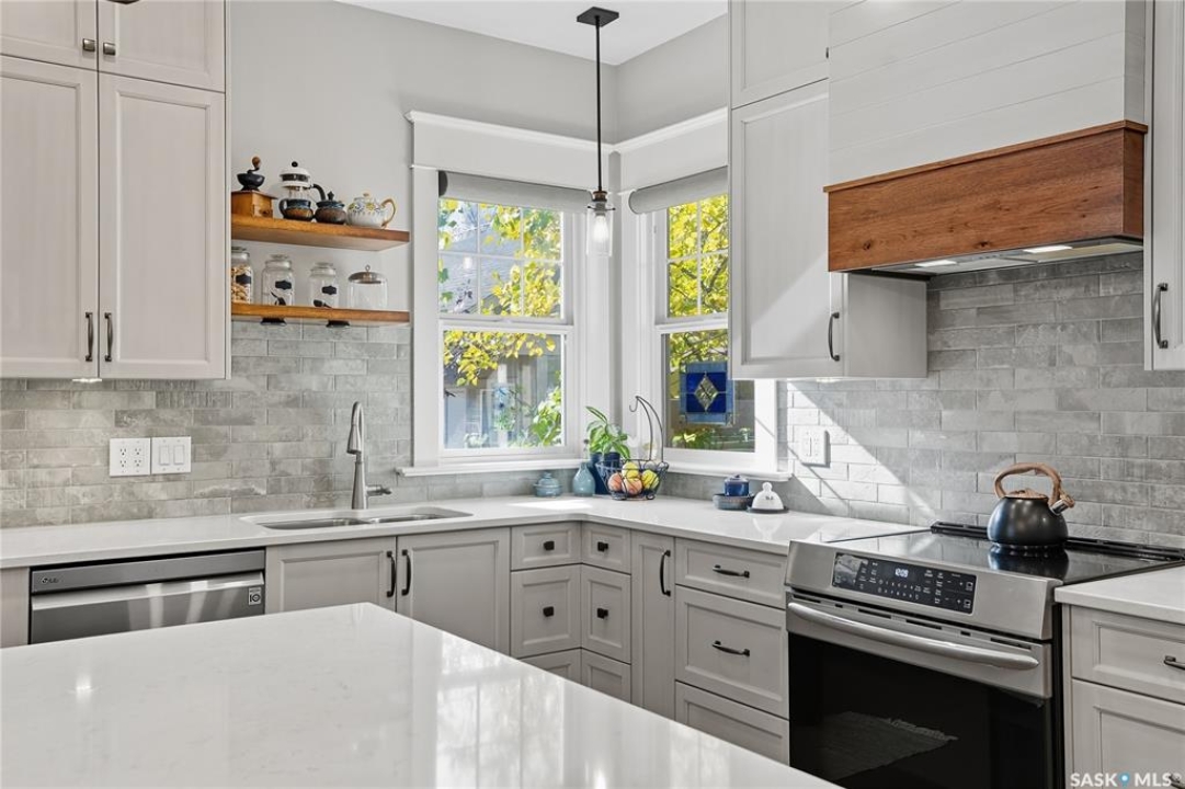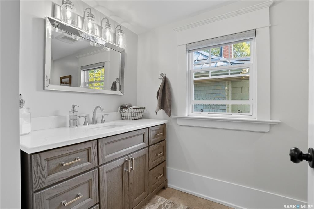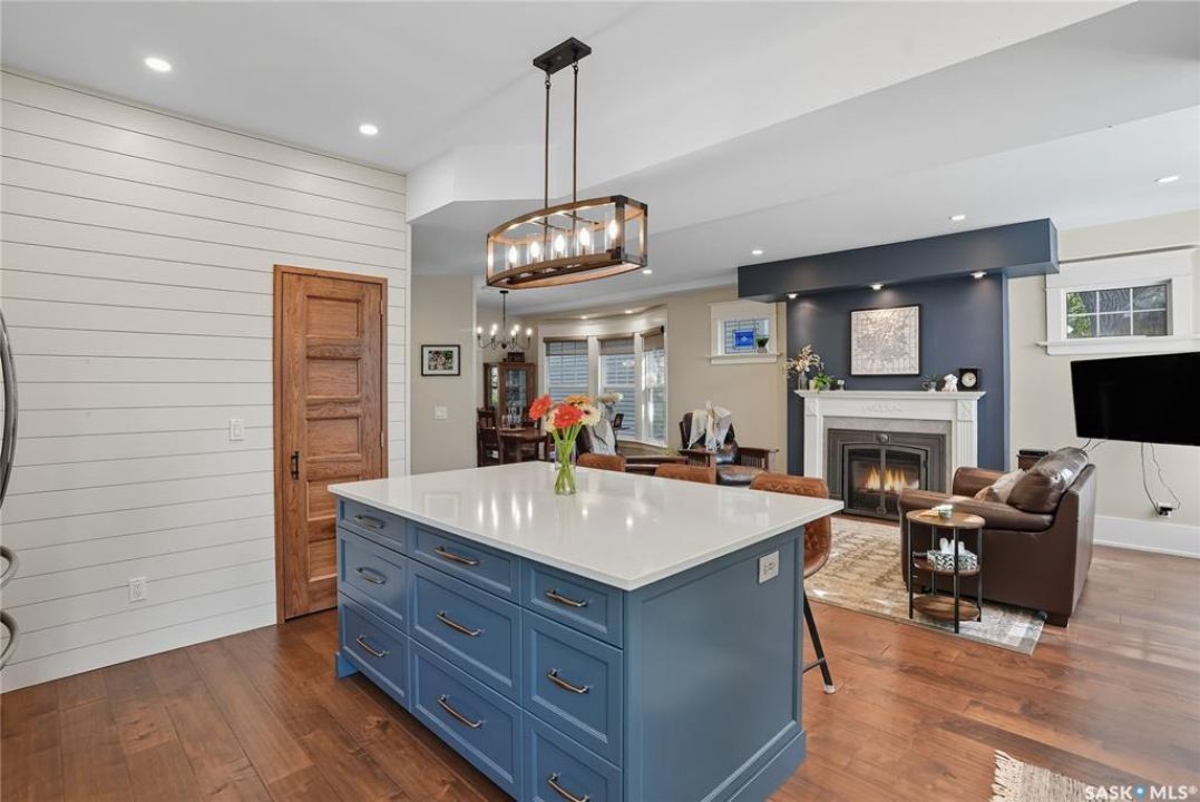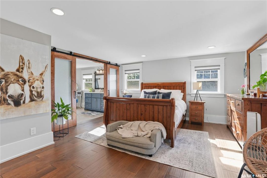 THANKSGIVING OPEN HOUSE! SATURDAY 1:00PM-2:30PM. This stunning 2-storey, 2,273 sq. ft. home is located in the highly desirable Nutana neighborhood and has been thoughtfully transformed with extensive renovations. The main floor features a completely updated custom kitchen with quartz countertops, a spacious island with double-sided storage, a custom pantry door, matching mudroom door, floating shelves, and brand-new appliances. Gorgeous hardwood floors flow throughout the main and upper levels. The living room, adjacent to the kitchen, boasts a cozy gas fireplace, while the family room, dining room, and a convenient 2-piece bathroom complete the main level. Upstairs, you'll find three bedrooms, including a remodeled primary ensuite with a luxurious walk in shower with bench, heated electric floors, updated vanity, all-new fixtures plus heated floors, an updated 4-piece bathroom, a convenient second-floor laundry room with new cabinets and countertops, and a charming sitting/reading nook. The lower level offers ample space for entertainment and hobbies with a theater room, rec room, bedroom, 4-piece bathroom, work/craft room with laundry, and a wine room. Outside, enjoy a serene retreat with a pergola on the deck, beautiful perennials, and meticulously landscaped grounds. The fully insulated and heated double detached garage adds the perfect finishing touch. Other notable features and renovations since 2022: New gas furnace (2022), all interior and exterior updated light fixtures, hardwoods and tile flooring on main and upper, window treatment on main and upper, new paint throughout, carpet on both stairs and lower level theater room, bedroom, hot tub hookup and cement pad. There are heated floors in the kitchen, mudroom and front entrance with boiler heat. With so many thoughtful updates and high-end finishes throughout, this home is truly move-in ready.