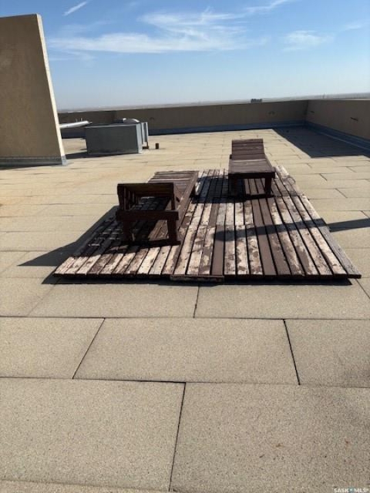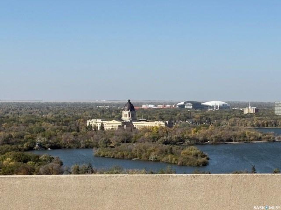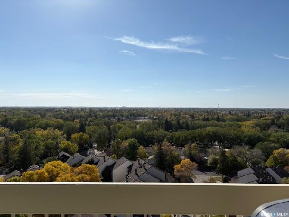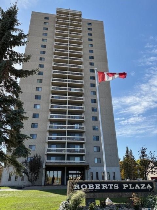 Welcome to Unit 1208 at Roberts Plaza – a highly desirable high-rise condo offering spectacular views, unbeatable amenities, and a prime south Regina location. This spacious 969 sq ft unit features 2 bedrooms and 1.5 bathrooms, including a convenient 2-piece ensuite off the primary bedroom, which also boasts a full-length closet for added storage. The smart, functional layout includes a generous living and dining area filled with natural light and direct access to your private balcony—perfect for relaxing or entertaining. The kitchen offers ample cabinet space and extended countertops, ideal for cooking and meal prep. Recent updates include newer windows, engineered hardwood flooring, cozy bedroom carpets, and a refreshed tub surround in the main bath. Enjoy the convenience of underground parking and on-site laundry, along with Roberts Plaza's impressive list of amenities: an indoor pool, hot tub, sauna, fitness centre, racquetball/squash court, bike storage, amenties room and guest suite. Condo fees include heat, power, and water—providing truly low-maintenance, worry-free living. Located directly across from scenic Wascana Park, and just minutes from the University of Regina and Conexus Arts Centre, this home is perfect for professionals, students, or anyone seeking a vibrant, connected lifestyle. Call your agent today to book a viewing!
