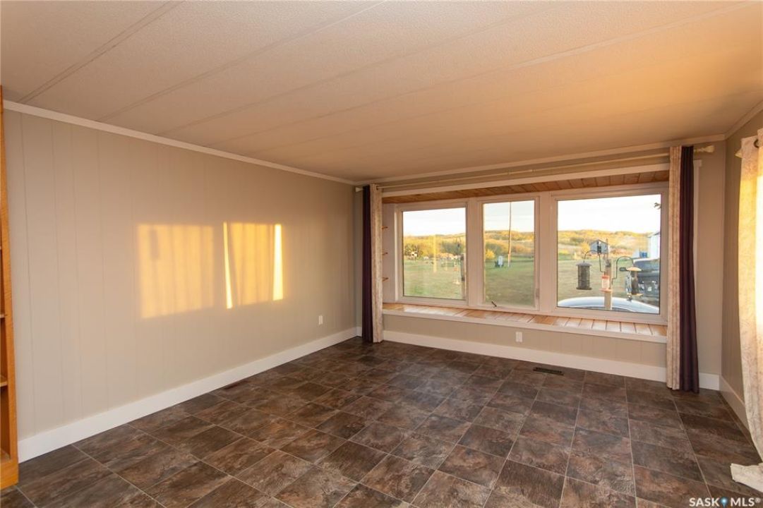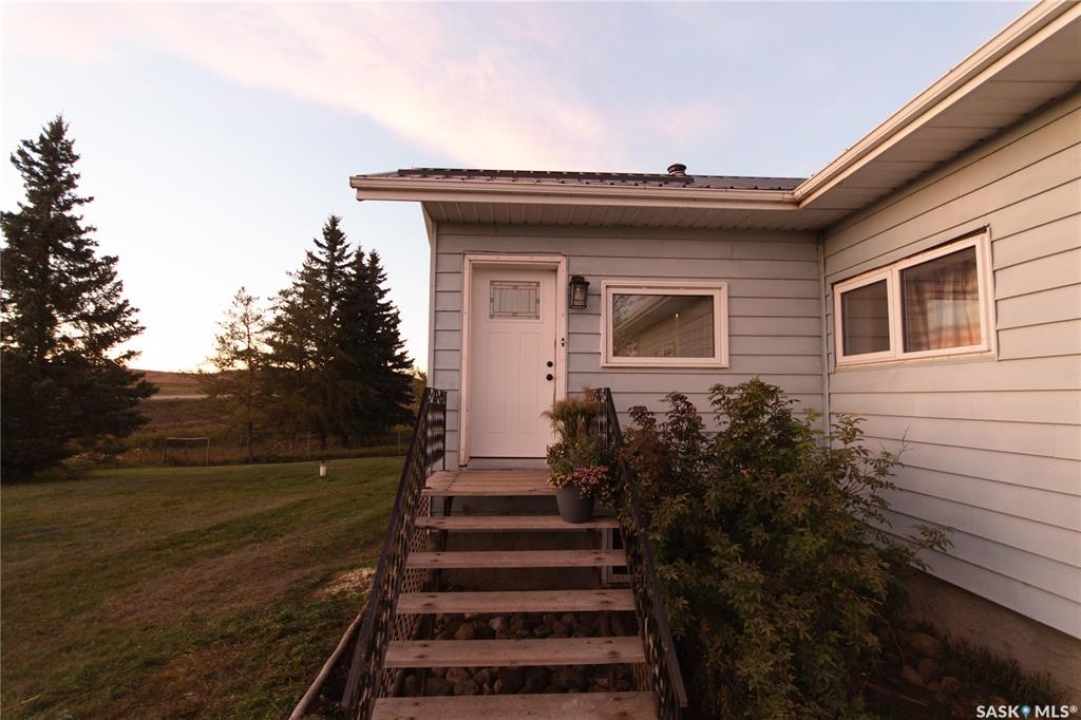Country living at its best, this 10.28 acre acreage is just what you're looking for! Take a drive through the beautiful rolling hills of Saskatchewan to this updated and move in ready 1380sqft house! Step up into an entrance where memories will be made, featuring a large mud room to store all your jackets and boots. To the right, an open kitchen with timeless oak cabinets and a spacious living room with large bay windows to enjoy every sunset and sunrise. Upstairs features two bedrooms with fresh flooring and an updated 4 piece bathroom. Upstairs laundry and storage area is just past the kitchen. Continuing downstairs, you'll find a landing and separate entrance, providing easy access to a fire pit/gathering area. Heading downstairs, you'll find a beautiful 3 piece bathroom and large rec room with a wood burning stove. On either side are two spacious bedrooms and a mechanical/workshop room in the middle. The land features a 20'x28' garage/shop (has its own electrical panel. Natural gas line is ran to this garage, natural gas heater is included but not connected), a 26'x48' quonset with a 100amp panel, a chicken coop, garden area, and many other storage sheds. For the hobby farmers, the perimeter is fenced and the land is planted for grazing. Many updates include:House metal roofing (approx 5yrs), all new windows upstairs and new basement bathroom in the house, garage roof (approx 5 years) & quonset roof and complete basement renovation, and a 200 amp panel.